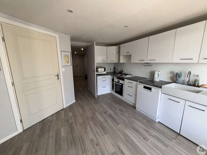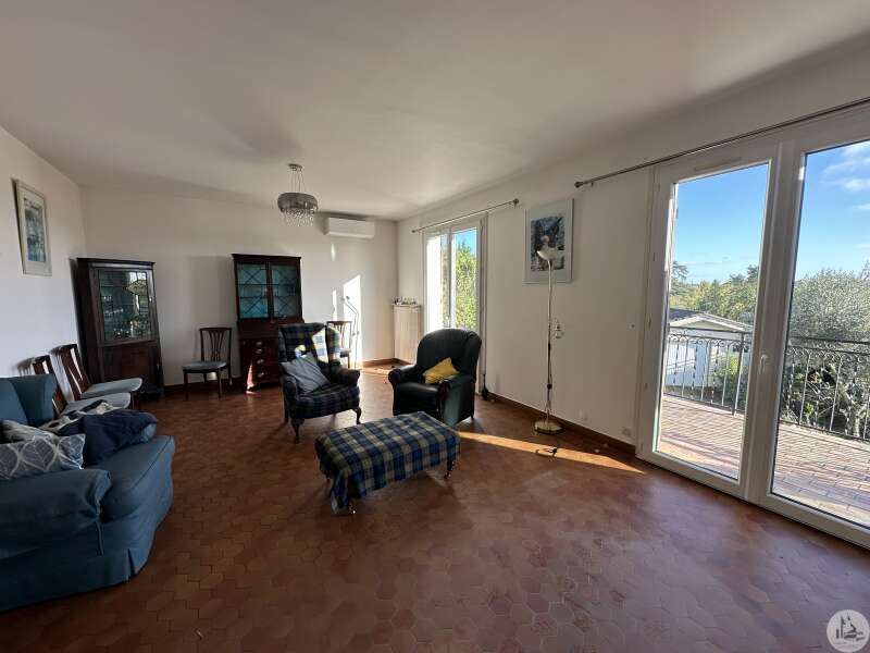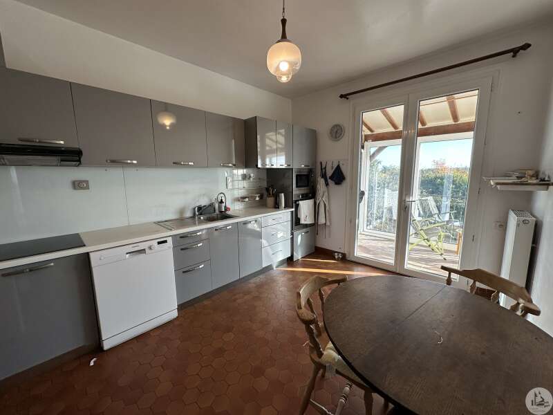 Une maison d'habitation construite en 1971 comprenant : - entrée (7m2), - cuisine toute équipée (13,2m2) -double four, réfrigérateur, lave-vaisselle, plaques- refaite en 2015, avec placards et porte-fenêtre donnant sur la terrasse carrelée, avec store électrique et véranda, - salon/salle à manger (30m2) avec cheminée ouverte, deux portes fenêtres donnant sur la terrasse également, - couloir avec placards, - salle de bains avec baignoire, double vasque, douche à l'italienne (8,3m2), - w.c indépendants avec lave-mains, - chambre 1 avec placards et parquet flottant (17,6m2) - chambre 2 à usage de bureau actuellement (12m2) avec parquet flottant - chambre 3 avec lavabo et placards, parquet flottant (12,6m2) A l'étage (aménagé en 78) : - pallier avec placards sous pente, - 2 chambres avec radiateurs électriques (10 et 11,9m2), - salle de douches avec w.c, - pièce mansardée à usage de salle de sport et rangement. Au rez- de jardin : - salle de douches avec w.c (3,7m2), - pièce (18m2), ancien bureau, avec une fenêtre et une porte fenêtre avec grands placards, - pièce à usage d'atelier (19m2 environ), - chaufferie/buanderie avec point d'eau (20,5m2), porte donnant sur la terrasse couverte, - garage avec sol béton (50m2), - cave (11m2 environ) Garage indépendant construit en 2006 (37m2) avec chenil. Terrain autour attenant et clos. Divers : - chauffage pompe à chaleur, climatisation réversible dans le salon (2020) - double vitrage PVC partout et survitrage à l'étage - raccordée au tout à l'égout - électricité refaite en 2014 - panneaux photovoltaïques