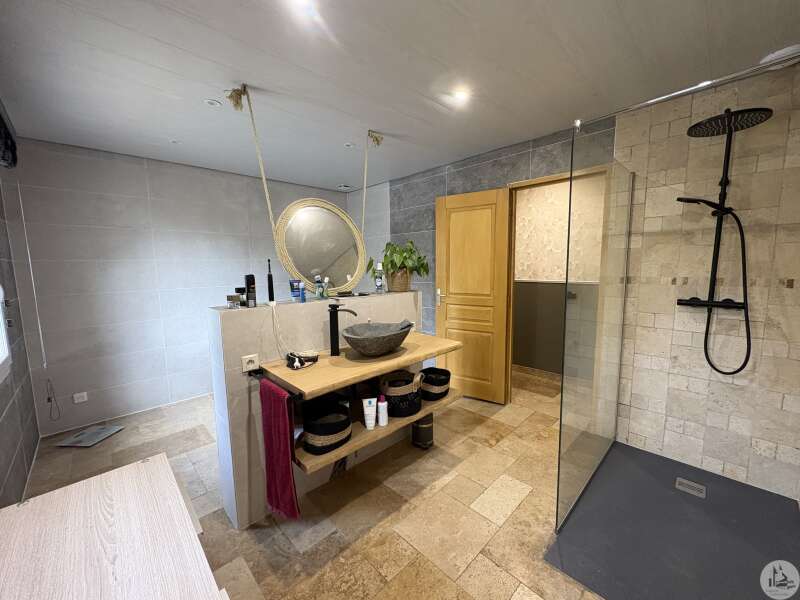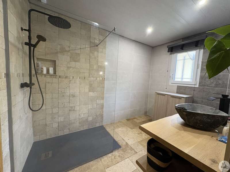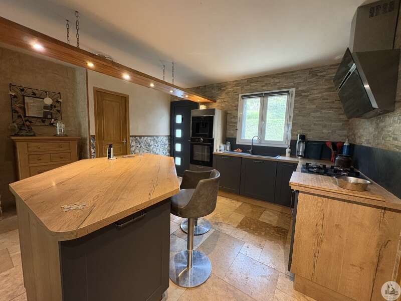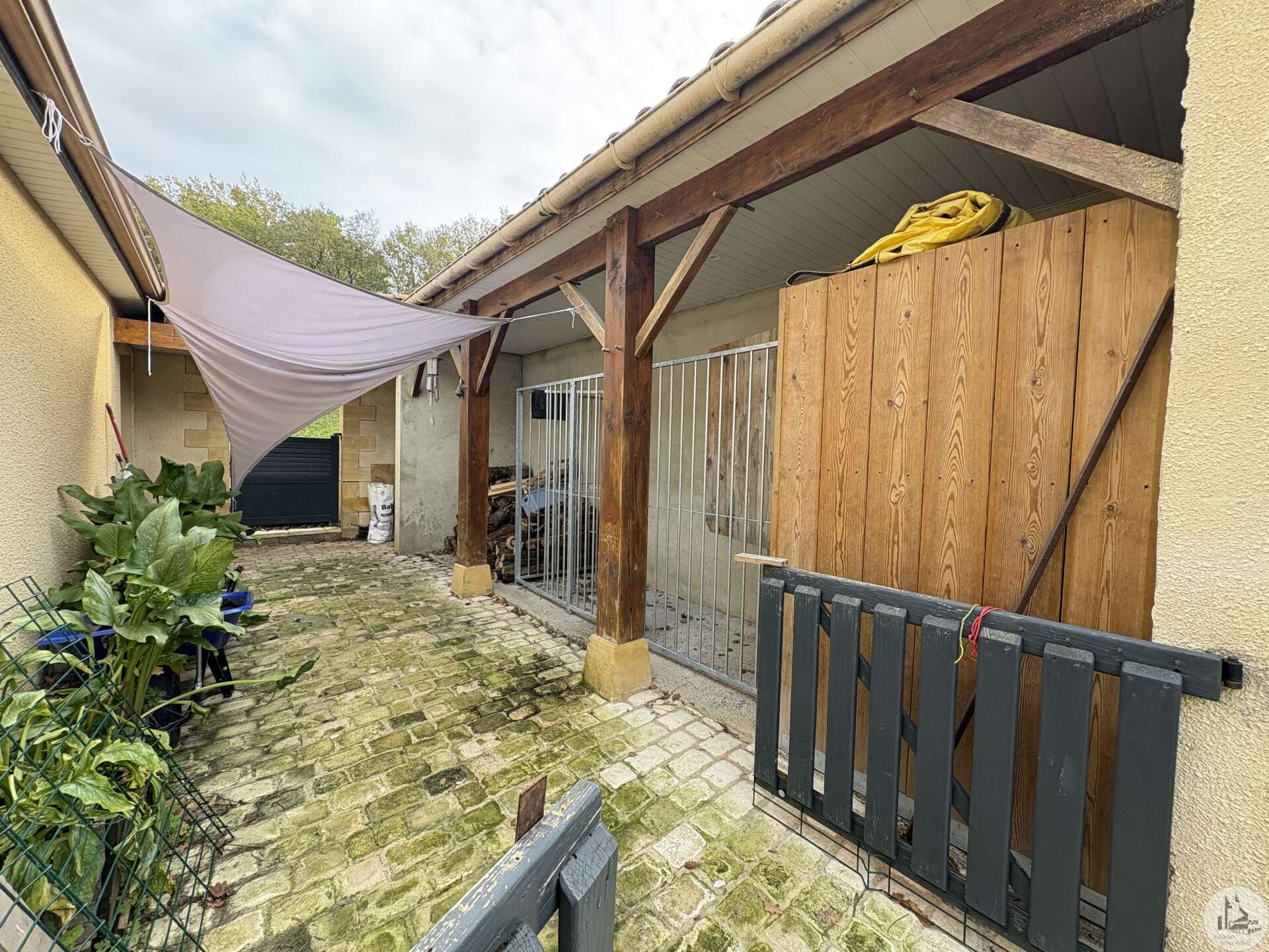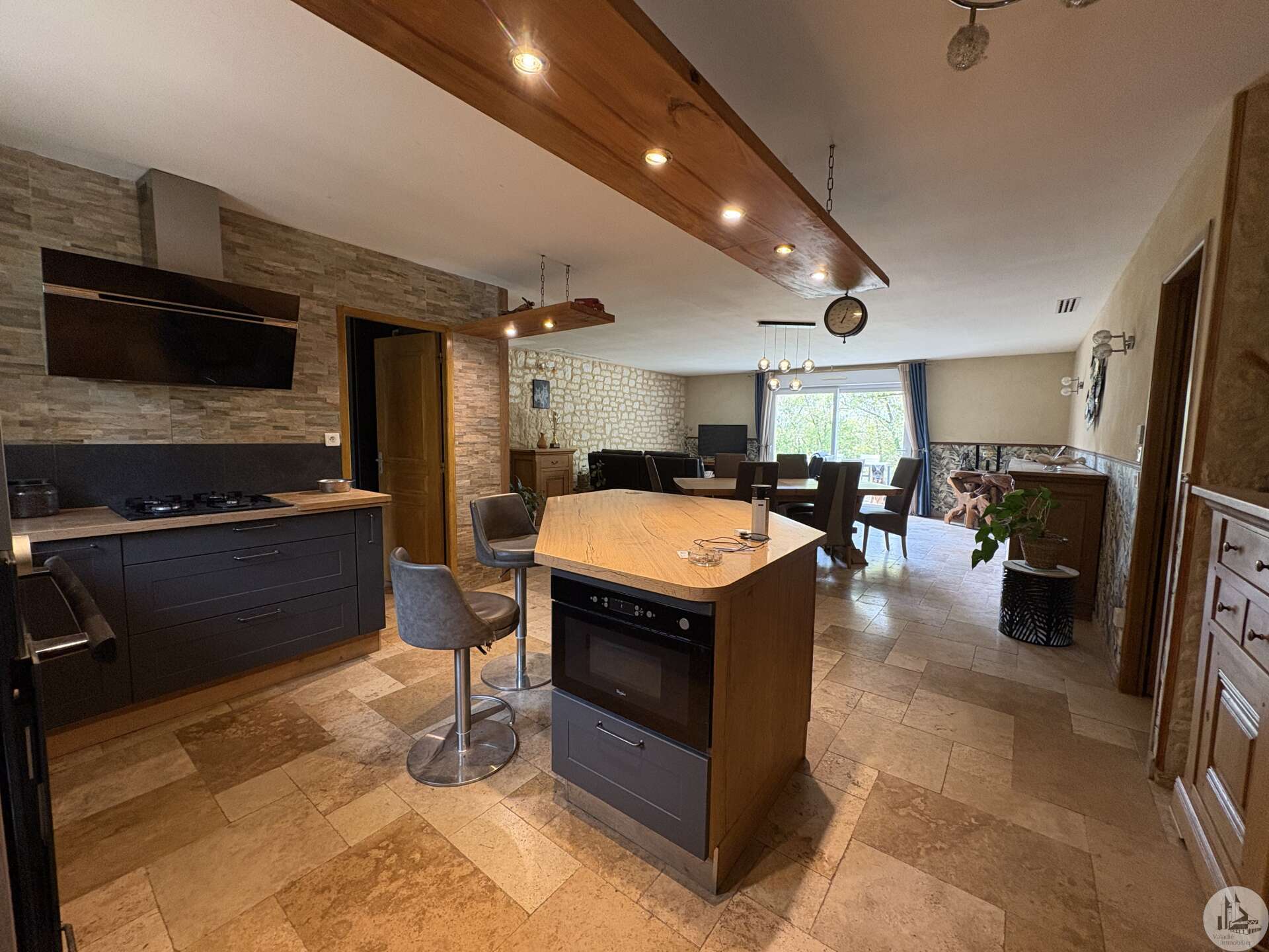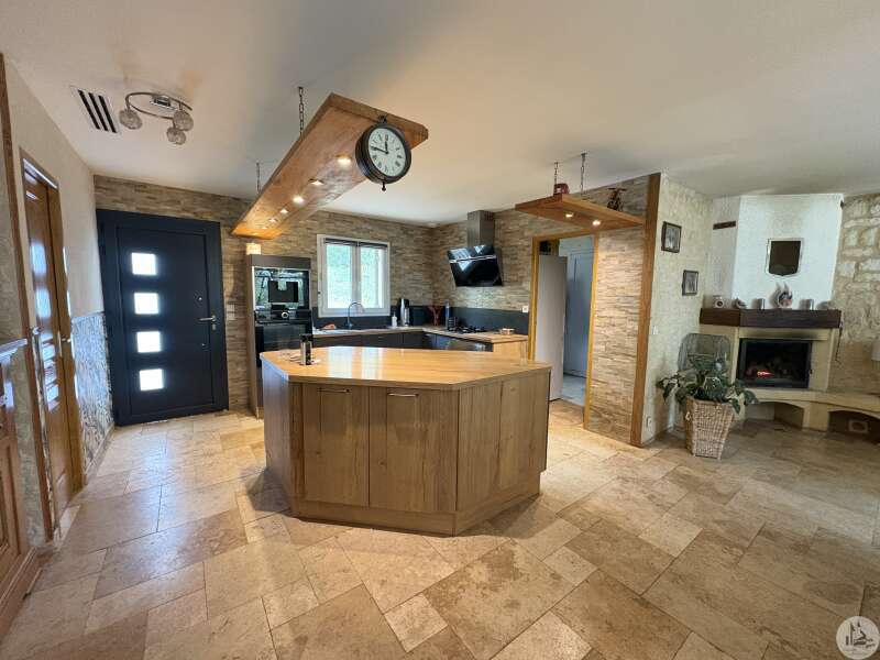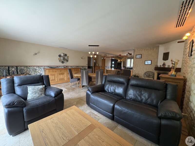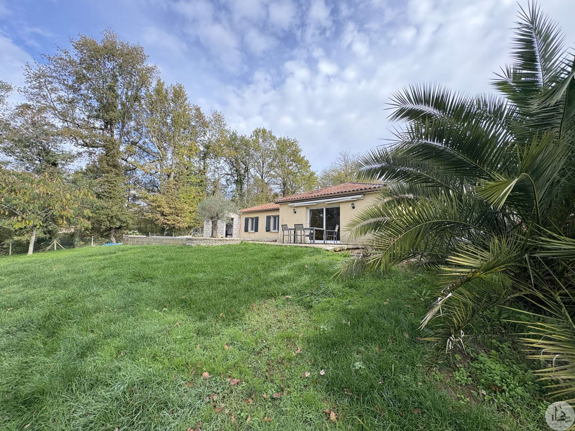 Maison de plain pied construite en 2002 d'environ 115 m2 avec dépendances sur un terrain de 2500 m2. L'habitation se compose; D'une pièce principale comprenant une cuisine avec îlot central ouverte sur salon/salle à manger avec insert, trois chambres, une salle de bains avec baignoire et douche, un cellier/buanderie et un toilette séparé. Les dépendances se composent; D'un garage séparé avec porte électrique et d'un abri de jardin. A l'extérieur, plusieurs terrasses mènent à une piscine de 4m*8m au sel construite en 2023 avec système de chauffage puis à un jardin d'agrément clôturé et fermé par un portail électrique. Les huisseries sont en double vitrage PVC. Système de chauffage électrique par climatisation reversible gainable. Système d'assainissement individuel.
