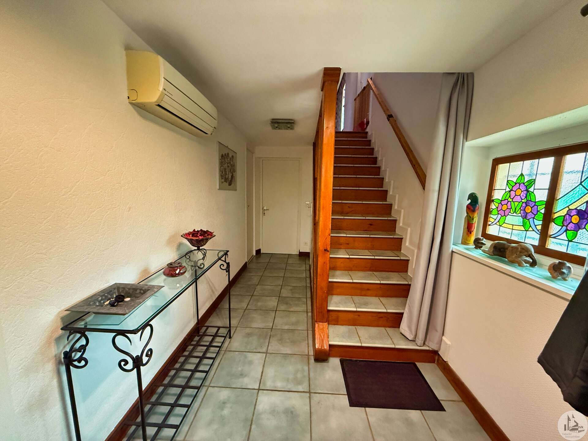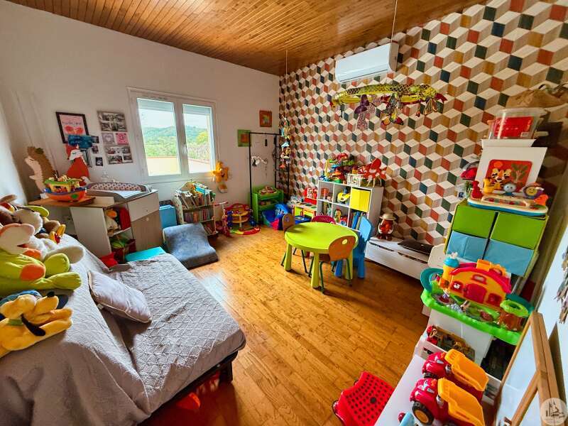 Un portail nous accueille pour accéder au jardin et une entrée en rez de rue nous offre l'accès à la maison, ou l'on trouve une suite parentale de 16m² (chambre et salle d'eau), avec toilettes séparés, puis un accès sur un garage de 32m² pour une voiture avec une porte électrique, une chaufferie de 18.32m² contenant la pompe à chaleur réversible avec le chauffe eau thermodynamique, et une cave à vin de 9.31m². Au 1er étage, une pièce de vie de 37m² avec son poêle à granulés nous reçoit et s'ouvre sur une cuisine de 13m² avec accès terrasse et vue sur la piscine. Au même niveau, on trouve deux chambres de 14.79m² et 11.76m² ainsi qu'une salle de bain de 8.26m² avec placards. Une mezzanine de 9.29m² au sol, actuellement en chambre, pourrait devenir un bureau. Double vitrage bois Pompe à chaleur réversible dans toutes les pièces. Volets roulants solaires Tout à l'égout Panneaux solaires avec revente EDF (1500€/an, jusqu'en 2030) onduleur de 2025 Piscine de 8x4m avec liner de 2012 et pompe de 2024 avec dôme manuel entièrement sécurisée par des barrières. Pergola bioclimatique avec stores de chaque coté