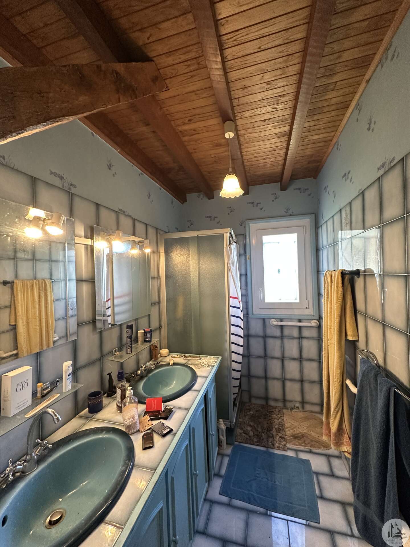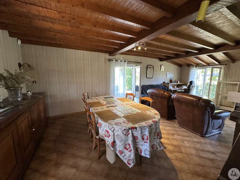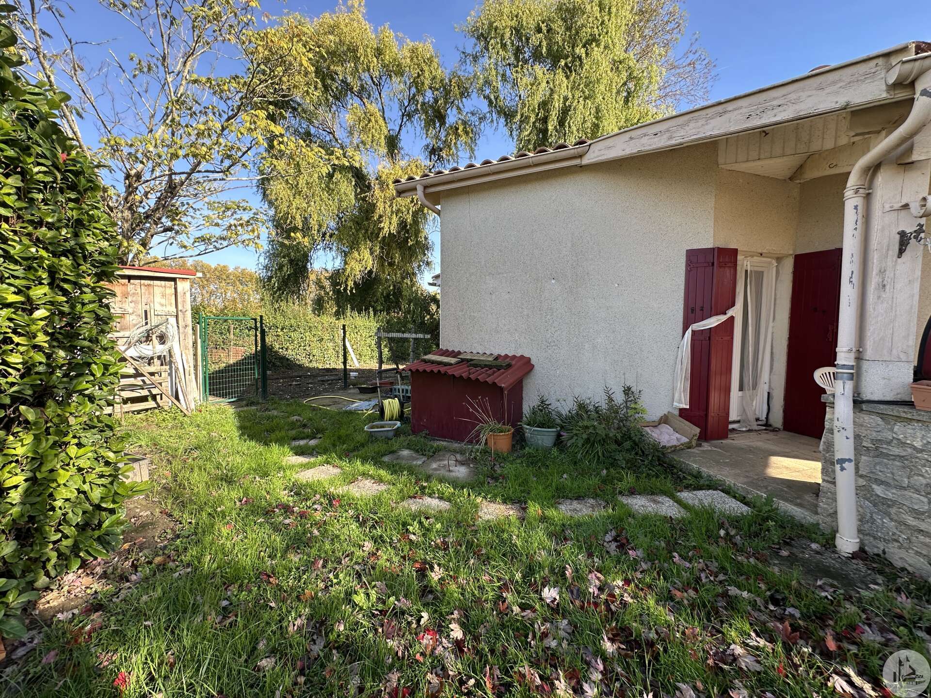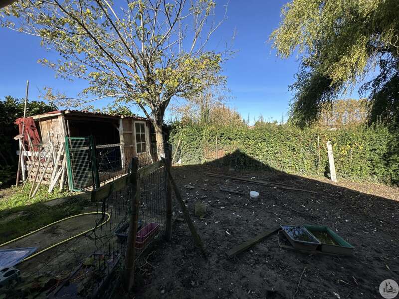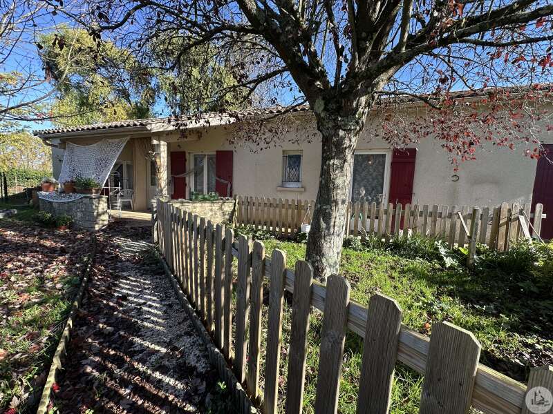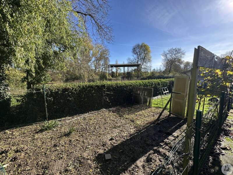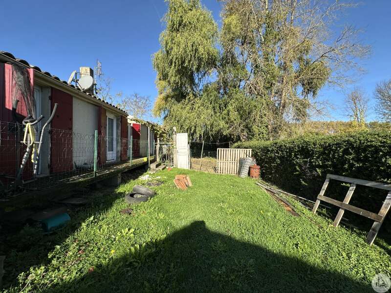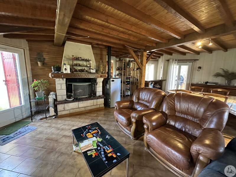 Une maison d'habitation de plain-pied avec terrain attenant comprenant : - entrée sur salon/salle à manger avec cheminée à foyer ouvert et poêle à granulés (2022), carrelage au sol, 4 ouvertures (40m2), - couloir (6,3m2), - w.c indépendant, - cuisine avec évier et placards, porte fenêtre donnant sur la terrasse (12m2 environ), - deux chambres (11m2 et 13,2m2), - salle de douche avec double vasque (4,5m2), - dégagement avec chauffe eau et arrivées d'eau pour machine à laver (8m2), - un garage de 43m2 attenant à la maison, possibilité d'extension donc, avec une porte donnant côté route et une autre côté jardin, et un second garage indépendant. POSSIBILITÉ D'ACHETER AVEC LA MAISON UNE PARCELLE DE TERRE NON ATTENANTE DE 9429M2 POUR UN MONTANT DE 6000 EUROS EN SUS DU PRIX. Divers : - menuiseries PVC double vitrage changées en 2015 et porte d'entrée neuve changée en 2023. - toiture et isolation de 2015, isolation des chambres refaite en 2023. - radiateurs électriques de 2015 dans le salon et la cuisine - Station de traitement de l'eau (fonction d'adoucisseur) - tout à l'égout