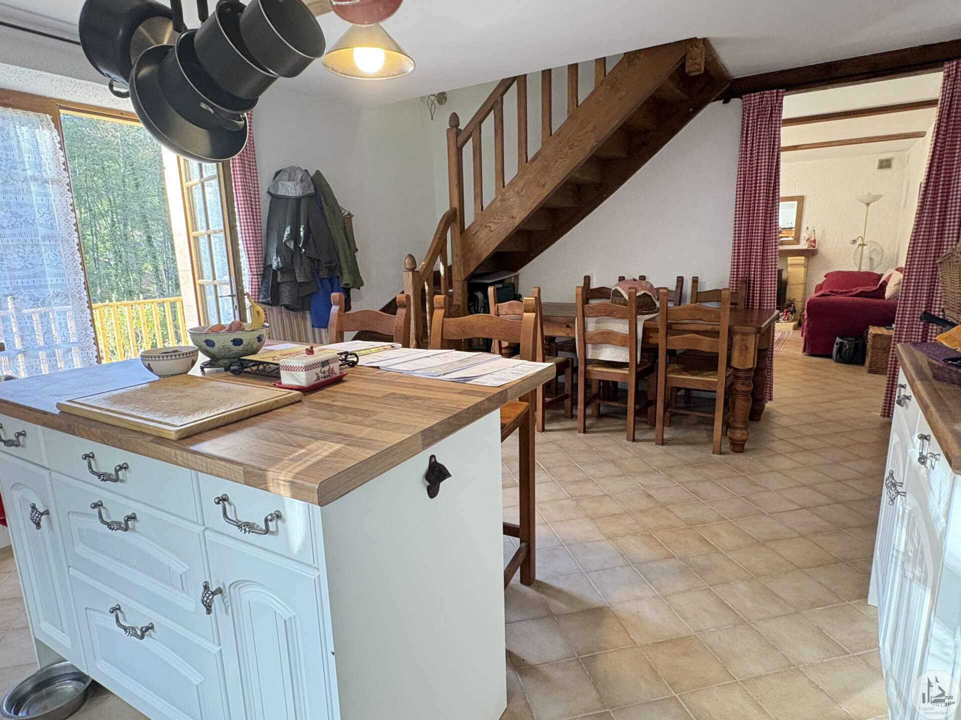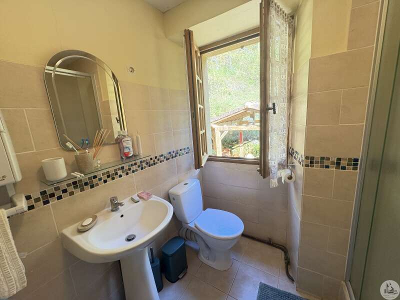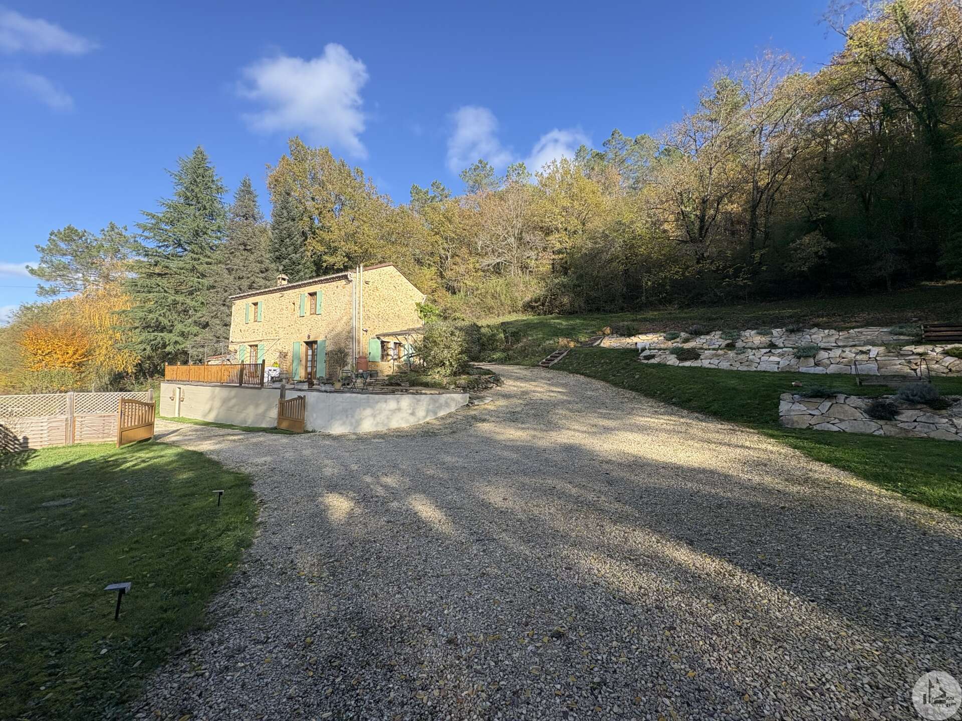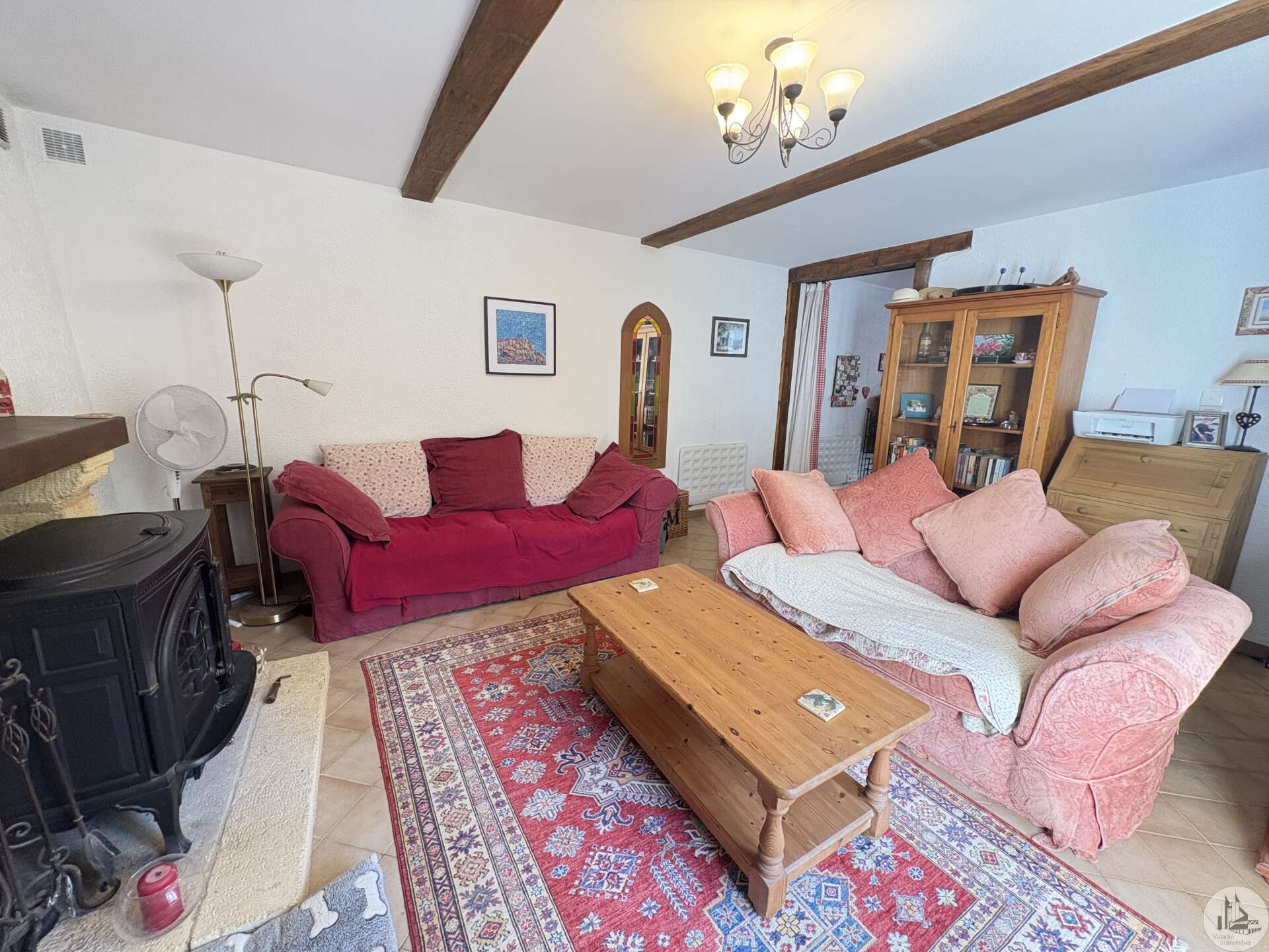 Maison en pierre de 86 m2 avec dépendances sur un terrain de 2429 m2. L'habitation se compose; Au rez de chaussée, d'une cuisine équipée/salle à manger et un salon avec poêle à bois. A l'étage, d'un palier avec deux chambres et deux salles d'eau chacune avec un toilette ainsi qu'un bureau. Les dépendances se composent, d'une cave en sous sol ainsi qu'un abri de jardin avec appentis et pièces de stockage. Le chauffage se fait par des radiateurs électriques. Les huisseries sont en double vitrage bois. A l'extérieur plusieurs terrasses donnent accès à un jardin arboré avec parking. Assainissement individuel conforme.