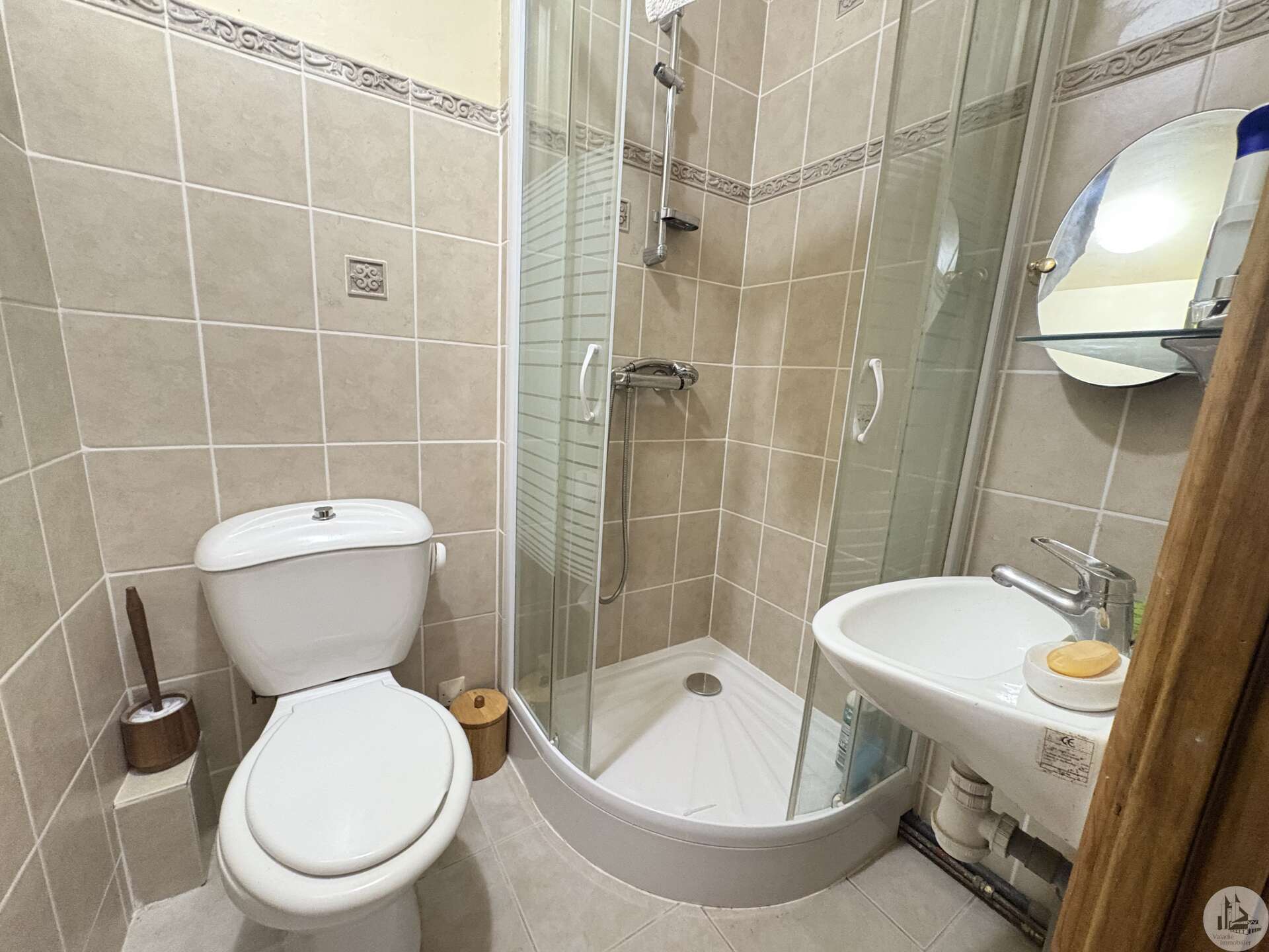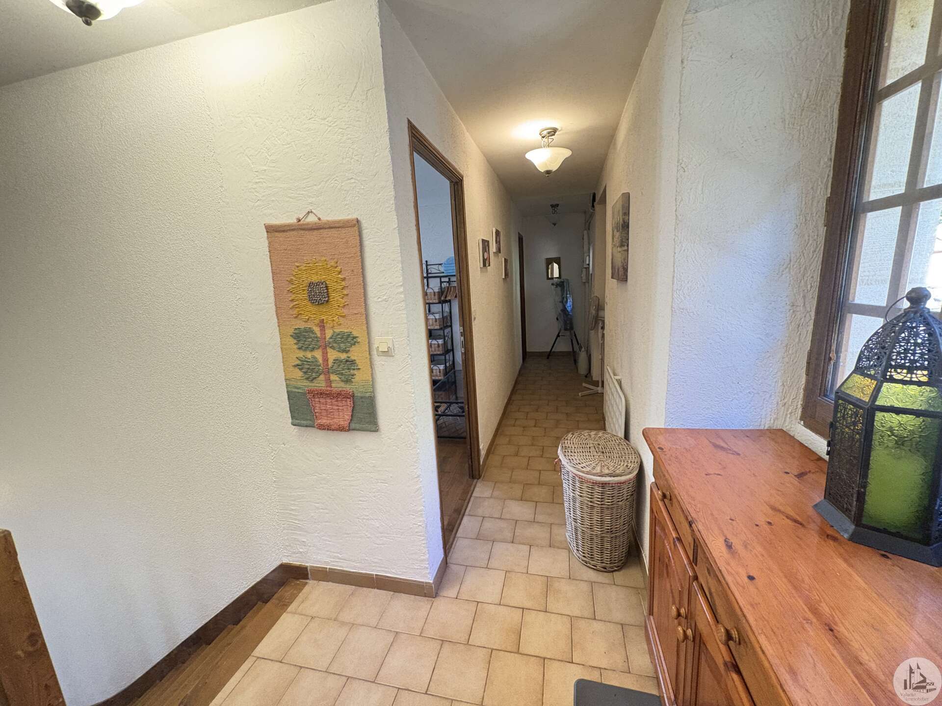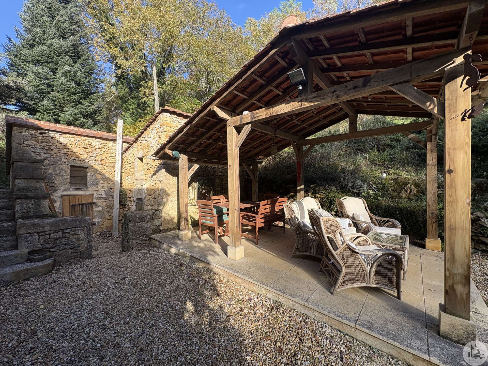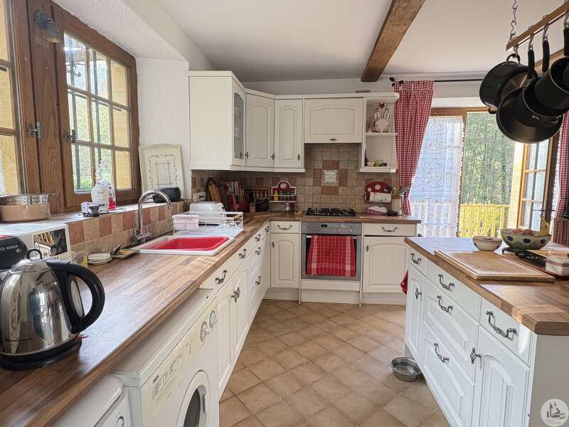 Maison en pierre de 86 m2 avec dépendances sur un terrain de 2429 m2. L'habitation se compose; Au rez de chaussée, d'une cuisine équipée/salle à manger et un salon avec poêle à bois. A l'étage, d'un palier avec deux chambres et deux salles d'eau chacune avec un toilette ainsi qu'un bureau. Les dépendances se composent, d'une cave en sous sol ainsi qu'un abri de jardin avec appentis et pièces de stockage. Le chauffage se fait par des radiateurs électriques. Les huisseries sont en double vitrage bois. A l'extérieur plusieurs terrasses donnent accès à un jardin arboré avec parking. Assainissement individuel conforme.