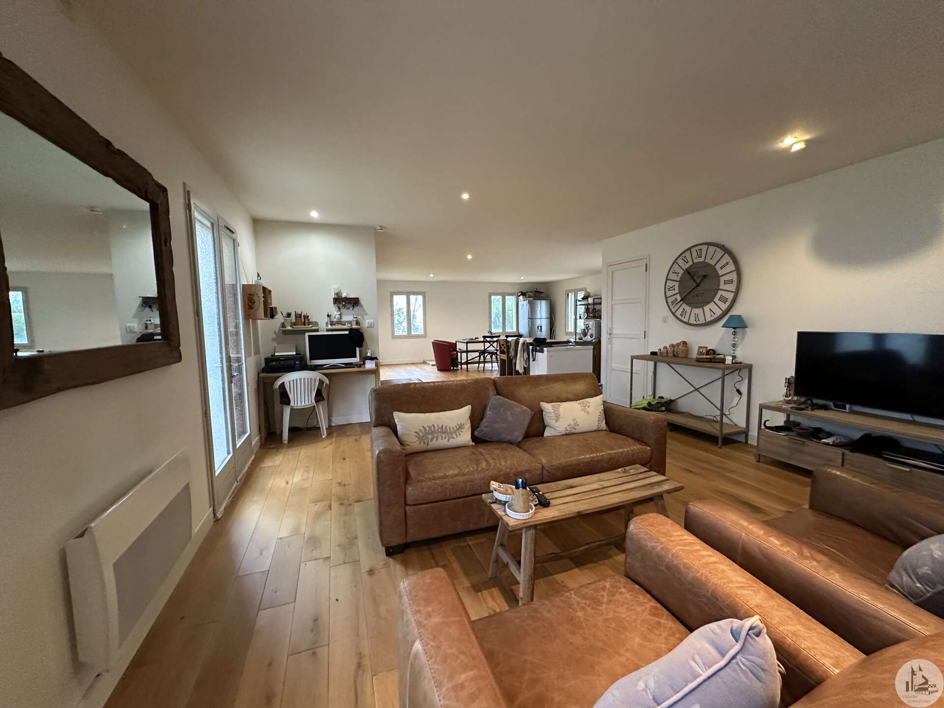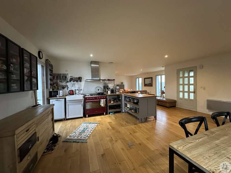 Cette maison de plain-pied, au calme, au bout d'une impasse, avec une très belle vue comprend : Une pièce de vie (70m2), vaste et chaleureuse, avec parquet au sol, s’articule autour d’une cuisine ouverte équipée (piano de cuisine au gaz et électrique, lave-vaisselle), emplacement pour rajoute un poêle à bois. Une première petite chambre (7m2) avec sa salle de douches attenante (3,5m2). Une seconde chambre, plus spacieuse (14,5m2). Un espace de rangement avec coin buanderie donne accès à une seconde salle de douches avec WC (2,8m2). À l’extérieur, un garage non attenant vous donne de l’espace supplémentaire (environ 15m2) et une pièce avec cumulus et bouteilles de gaz, tandis que le terrain attenant entoure la maison avec une belle vue sur les environs. Le tout à proximité immédiate des commodités : commerces, services, vie locale. PRIX NÉGOCIABLE ! DIVERS : - chauffage électrique - menuiseries double vitrage - cumulus neuf