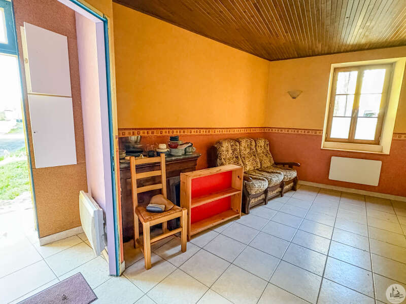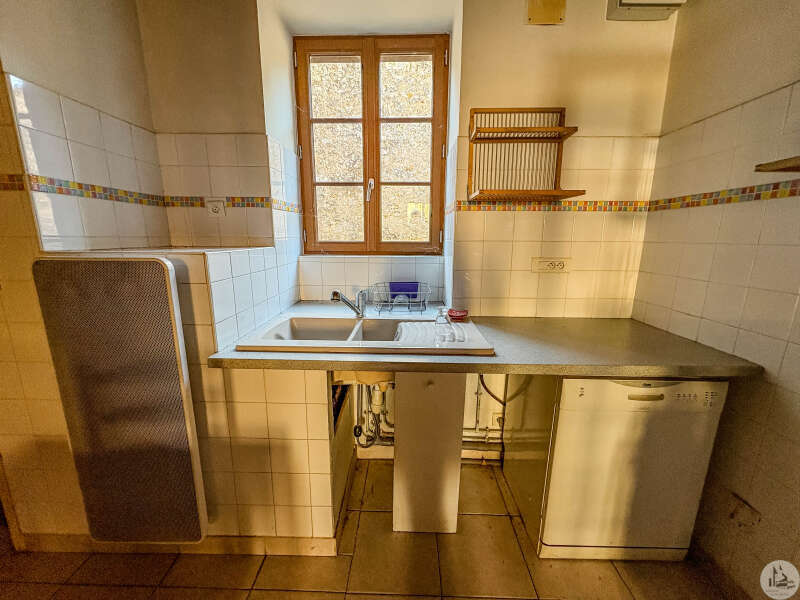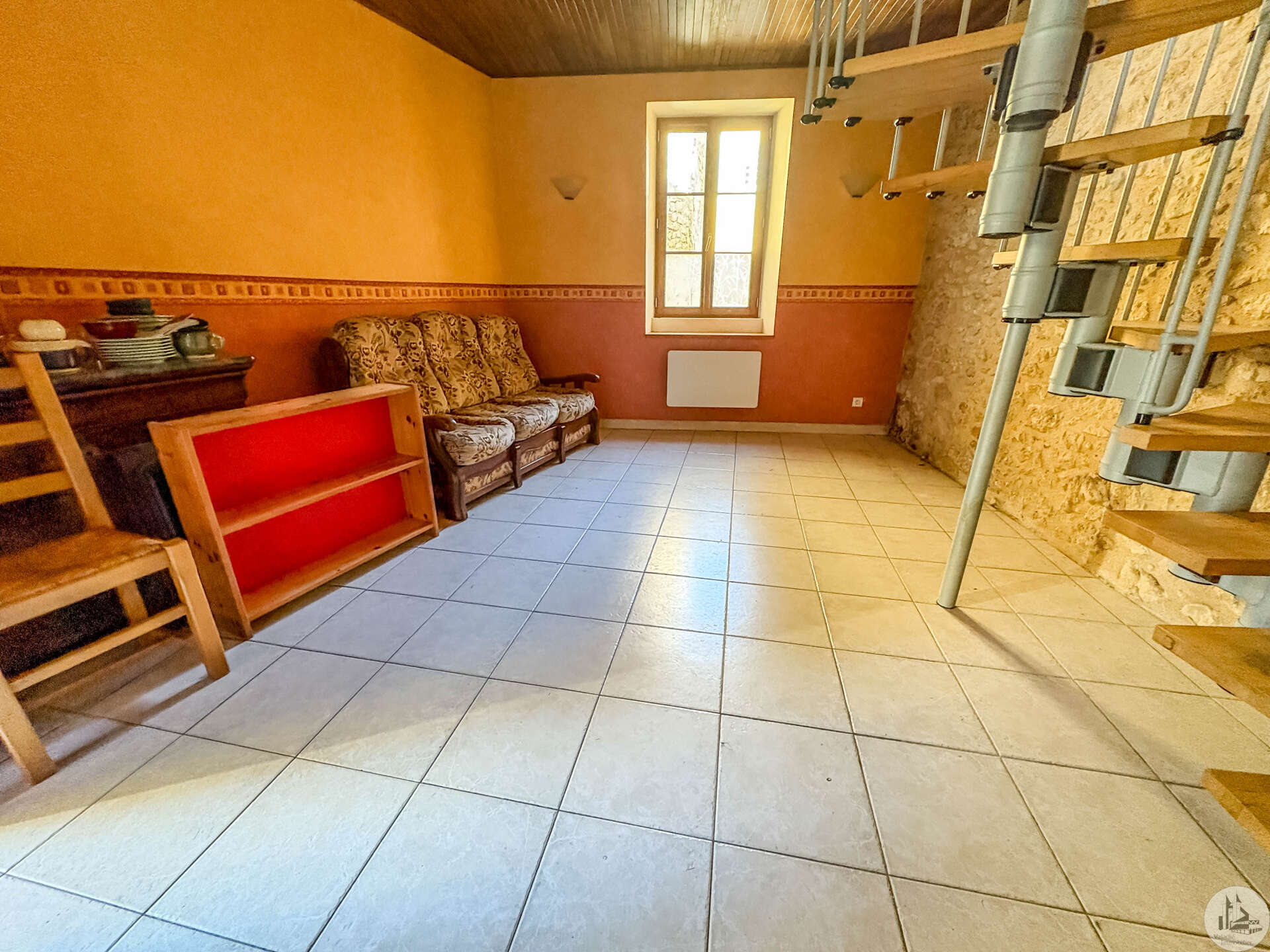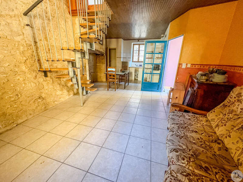 Maison de village en pierre de 54 m2 composée au rez de chaussée d'une pièce de 28 m2 avec cuisine ouverte sur salon, à l'étage deux chambres de 12 et 9 m2 avec salle d'eau.
