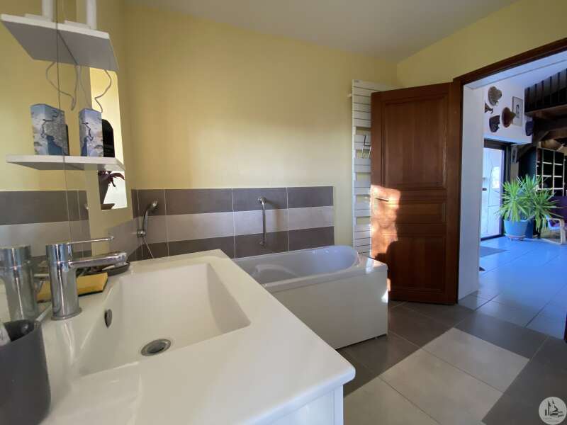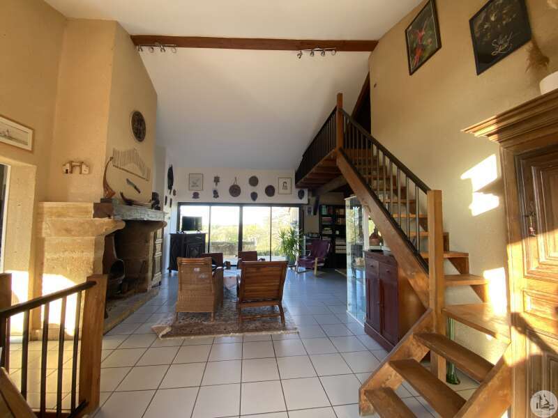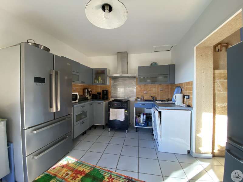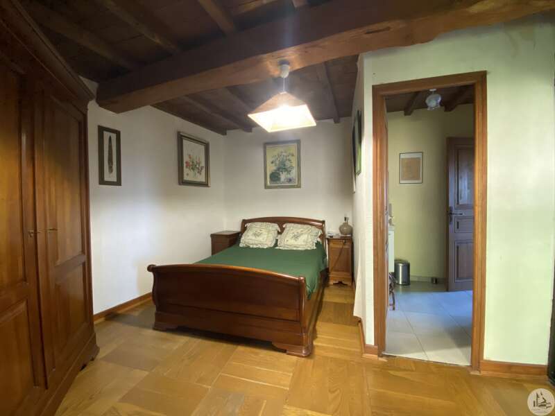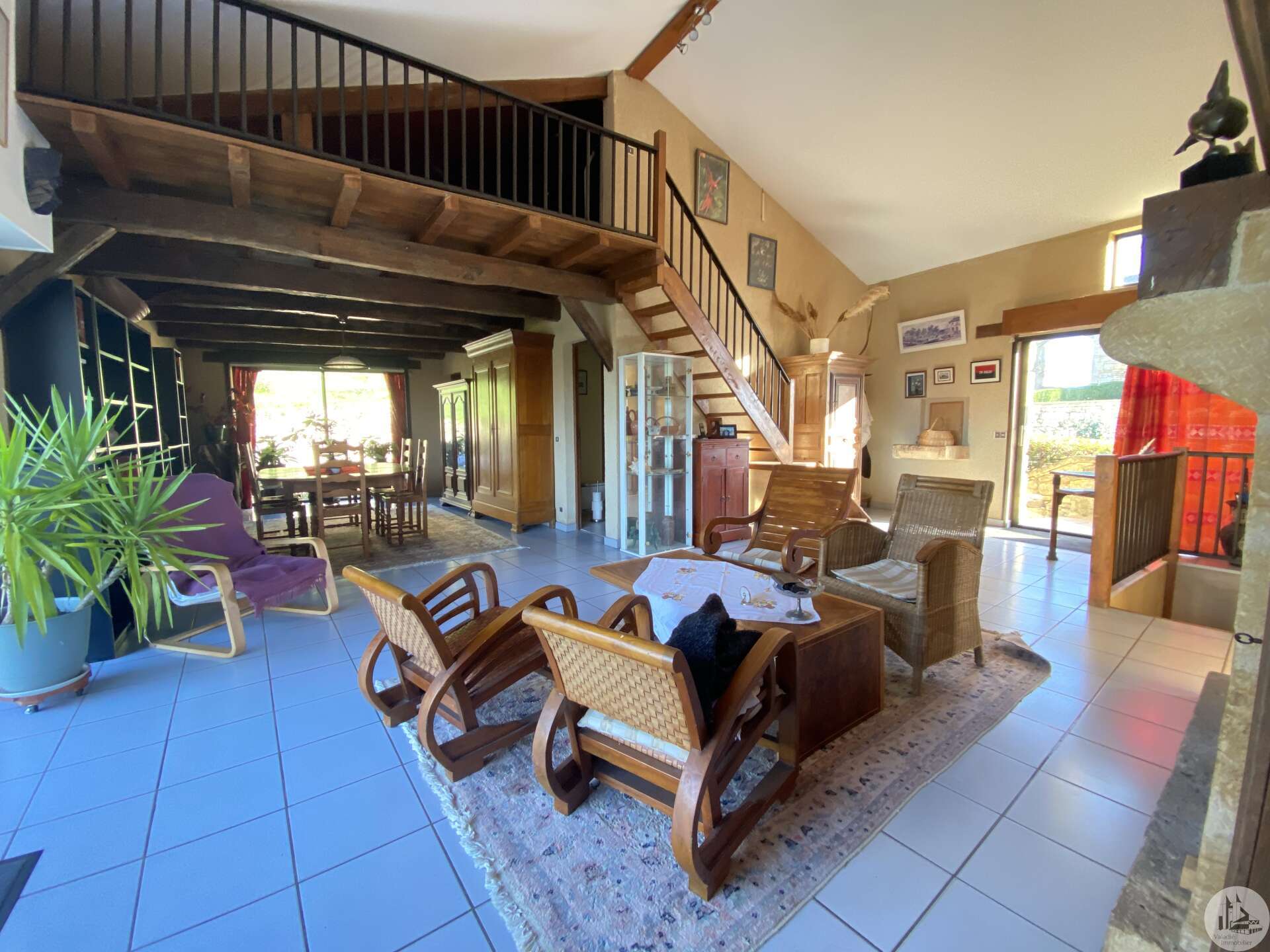 Confortable maison en pierre rénovée comprenant au rez-de-chaussée : salon/séjour (51,8 m2) avec cheminée et accès sur terrasse / jardin à l'arrière, cuisine aménagée (11,2 m2), 2 chambres (17 et 14,4 m2), salle de bains - 7,4 m2 - (avec vasque, baignoire et douche), toilettes. En rez-de-jardin (accessible par escalier intérieur depuis le séjour ou depuis le jardin) : couloir (19 m2), une chambre (10,2 m2), un bureau (11,2 m2), une buanderie (4,15 m2), une salle d'eau - 3,9 m2 - (lavabo, douche et w.c), placard (3,2 m2), chaufferie (11 m2), cave. L'aménagement des 2 niveaux pourrait permettre de rendre indépendant le rez-de-jardin sans difficulté. Chauffage par pompe à chaleur alimentant un plancher chauffant au rez-de-chaussée et des radiateurs à l'étage. Menuiseries en double vitrage aluminium. Assainissement collectif. Local à usage de rangement (en sous-sol) Jardin arboré et bordé de haies avec un puits.