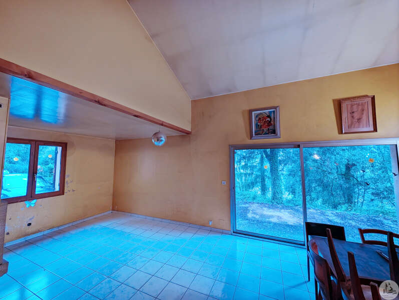 Entrée de 5 m², cuisine de 11 m², accès cellier de 4.45 m² et garage de 20 m², salon/salle à manger de 40 m² plafond cathédrale , cheminée insert, mezzanine d'environ 15.80 m²(bureau ou chambre d'appoint), 3 chambres ( 13.28 m², 11.75 m², 12 m²) une salle d'eau de 6.60 m², 1 WC. Garage attenant de 20 m² ( Accès cellier et cuisine) Abri/appenti voitures d'environ 30 m²