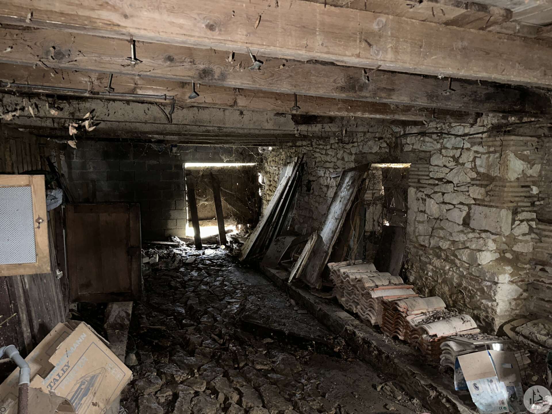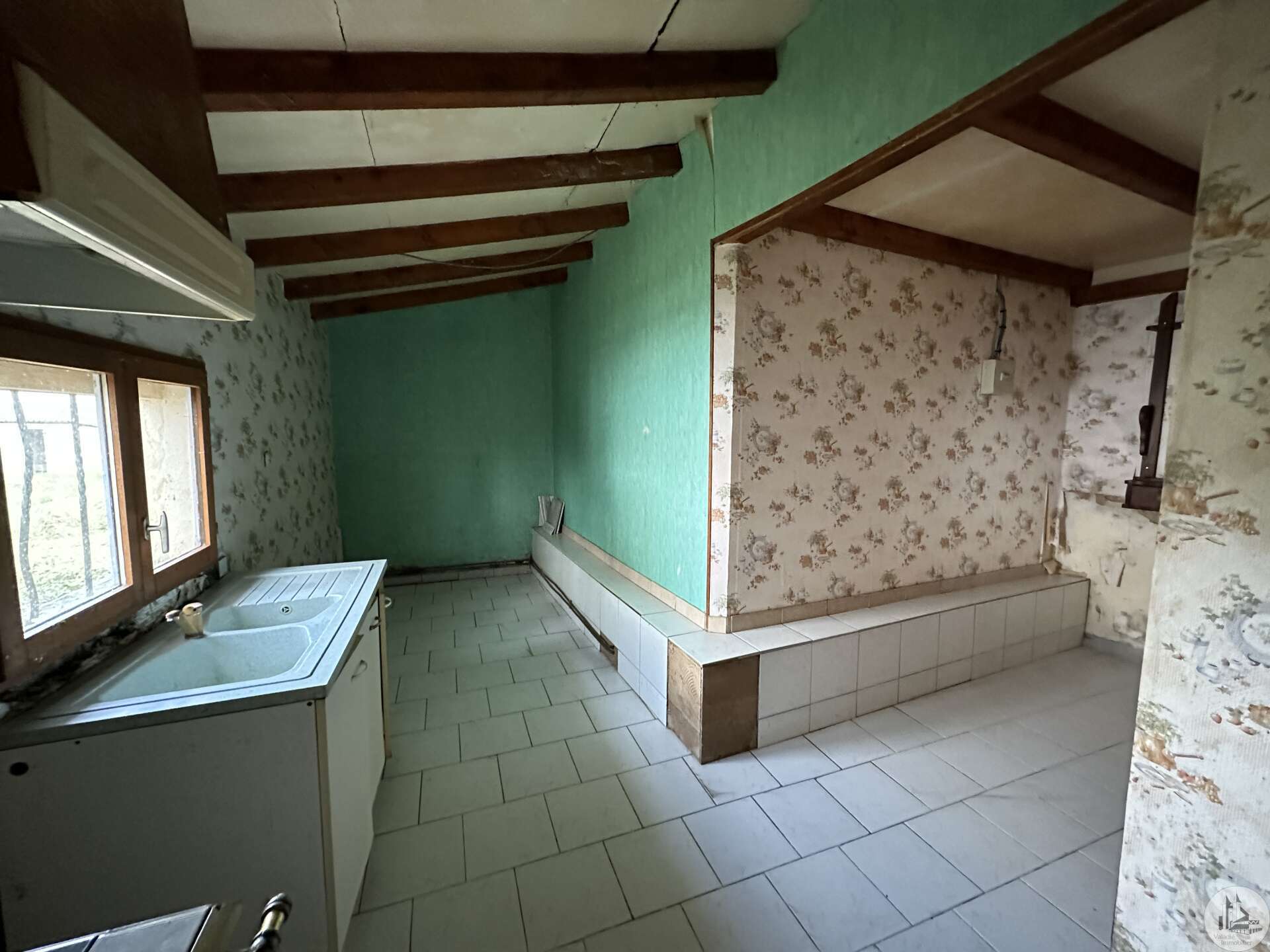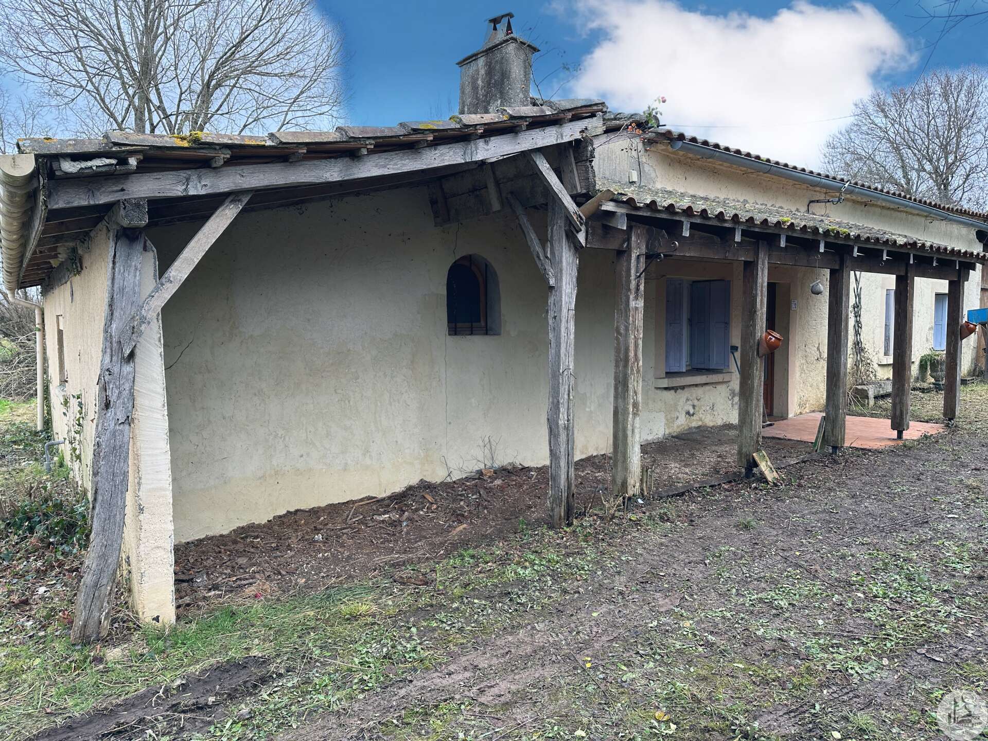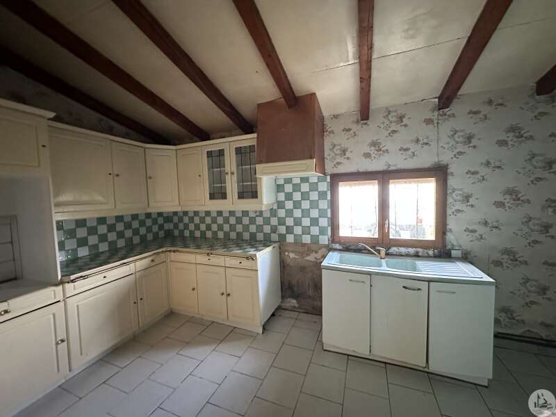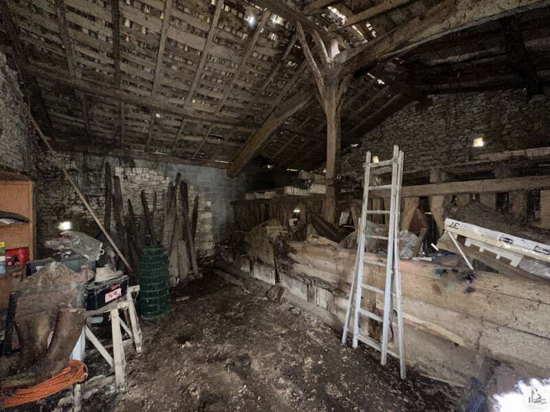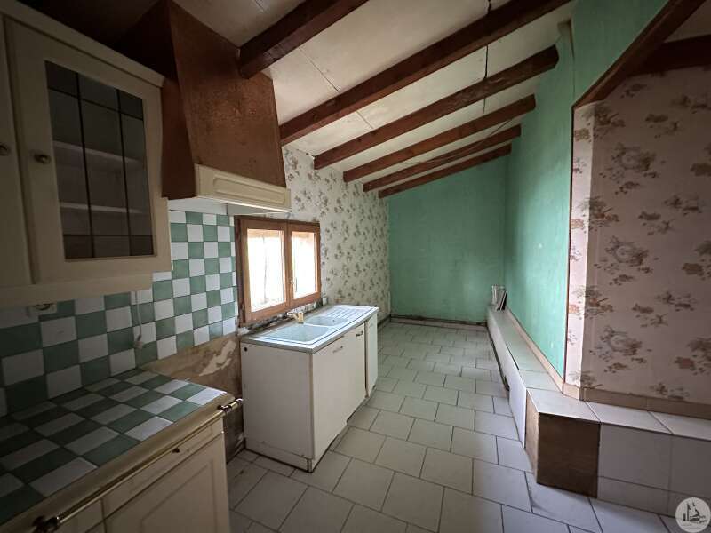 Maison d'habitation comprenant : - pièce de vie avec poêle à bois (28,3m2), - cuisine (20,5m2), - salle de douches (6,3m2), - couloir (3,6m2), - 2 chambres (10,5 et 10,7m2), - wc indépendants. Grange attenante, puits, terrasse couverte, cabanon en parpaings, terrain arboré non clos. Divers : - menuiseries double vitrage PVC - chauffage = poêle à bois dans le salon - isolation soufflée dans les combles (2011) - assainissement individuel de type fosse toutes eaux (de 2010)
