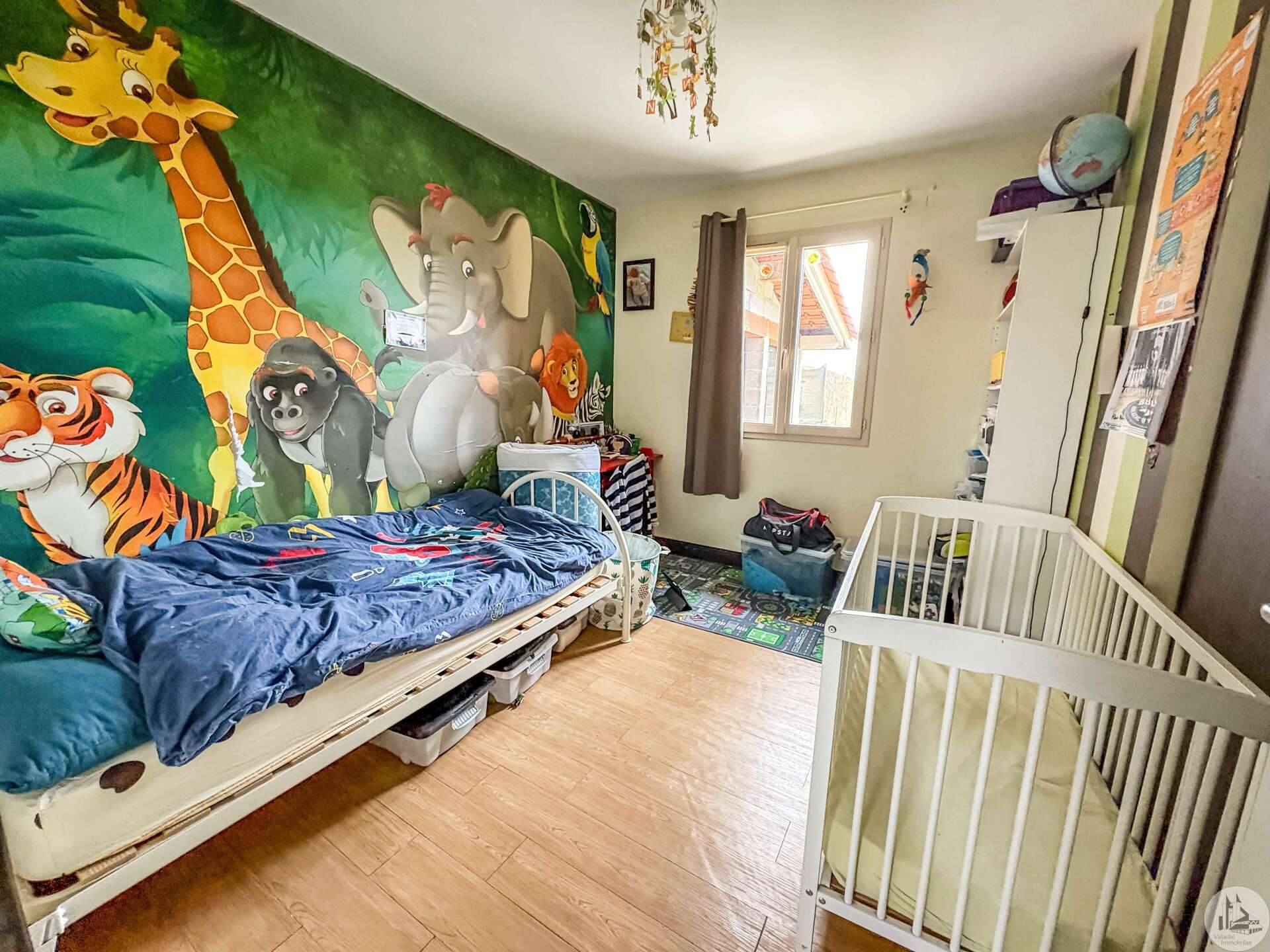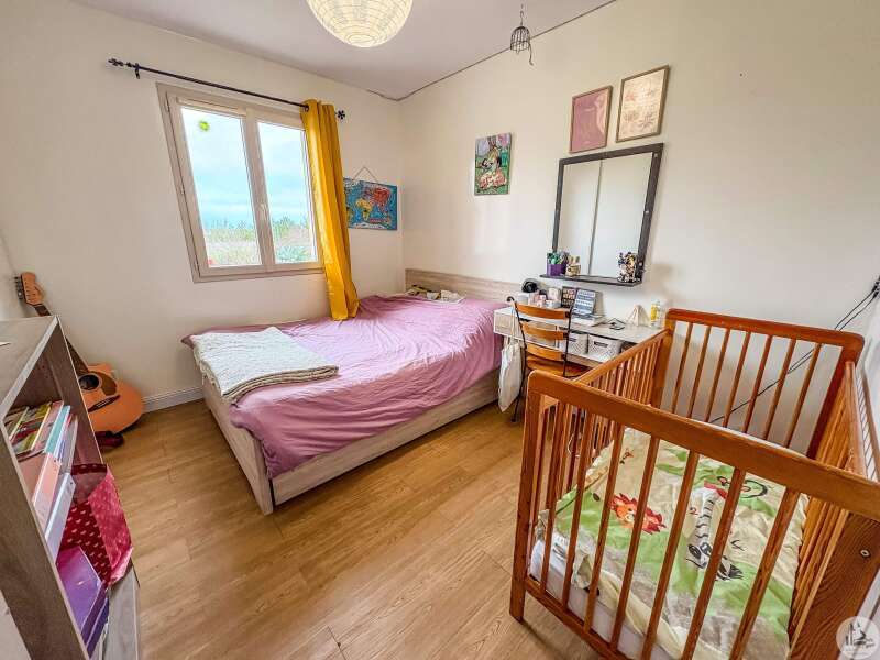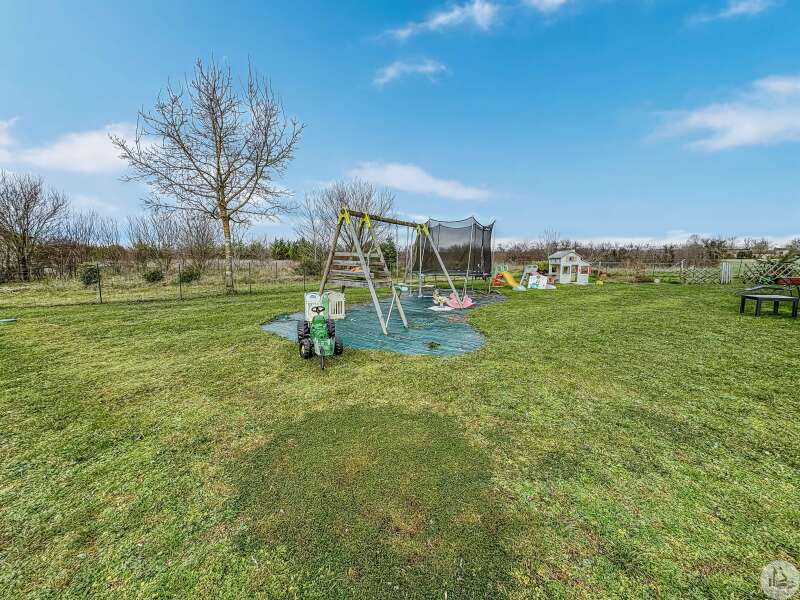Une pièce principale d'environ 40 m2 avec salon/salle à manger équipée d’un insert donnant sur une cuisine ouverte, un cellier, trois chambres, une salle d'eau, toilettes, une véranda d'environ 28 m2 et un garage sur terrain de 1073 m2.