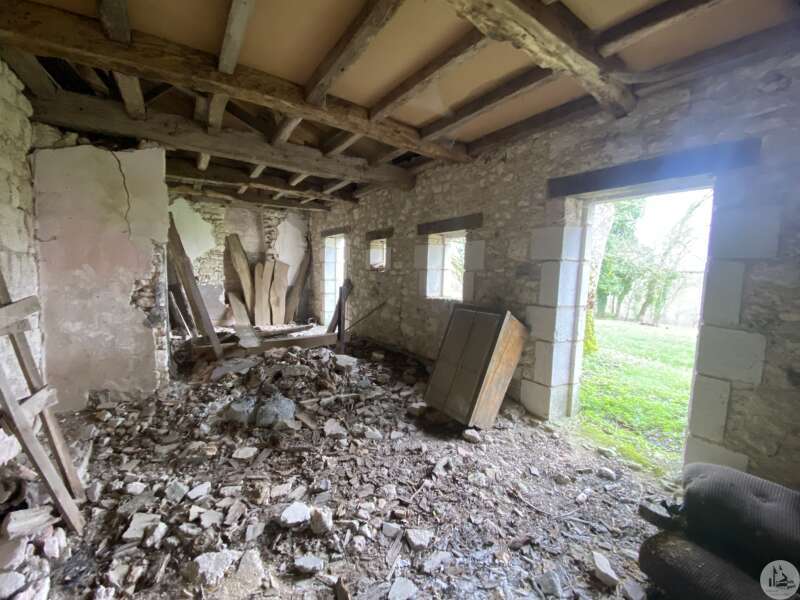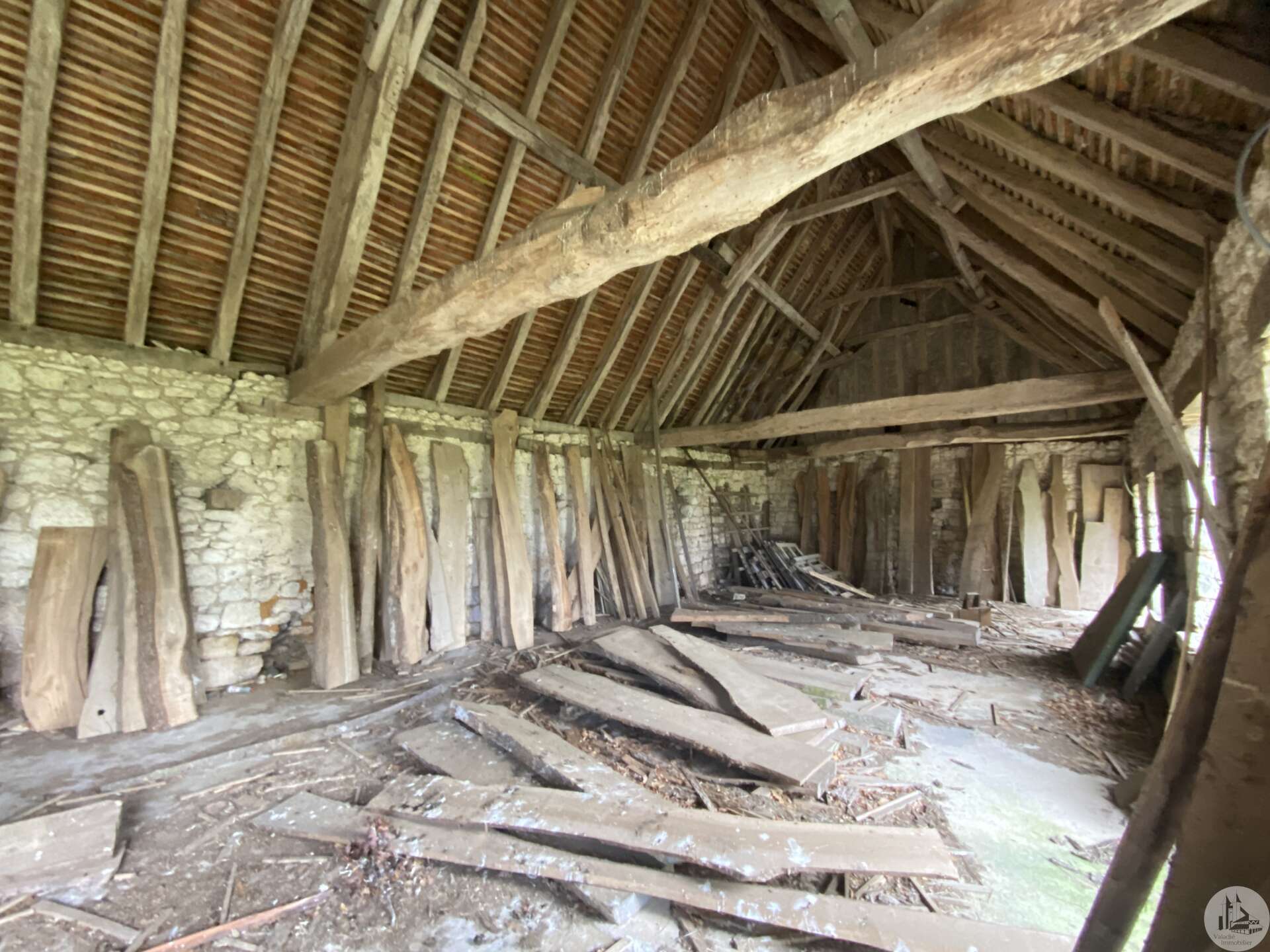 Une belle grange en pierre d'une surface au sol de 175 m2 environ. Une première partie de 107 m2 environ au sol (6,6 m X 16,2m), sol cimenté, un ancien évier. Une pièce de 36,8 m2 environ, terre battue au sol. Une pièce de 32 m2 environ avec une cheminée, sol cimentée, ancien évier. Un étage est possible sur la plupart de la surface. Grange en zone constructible. Terrain de 1,2. hectares environ.