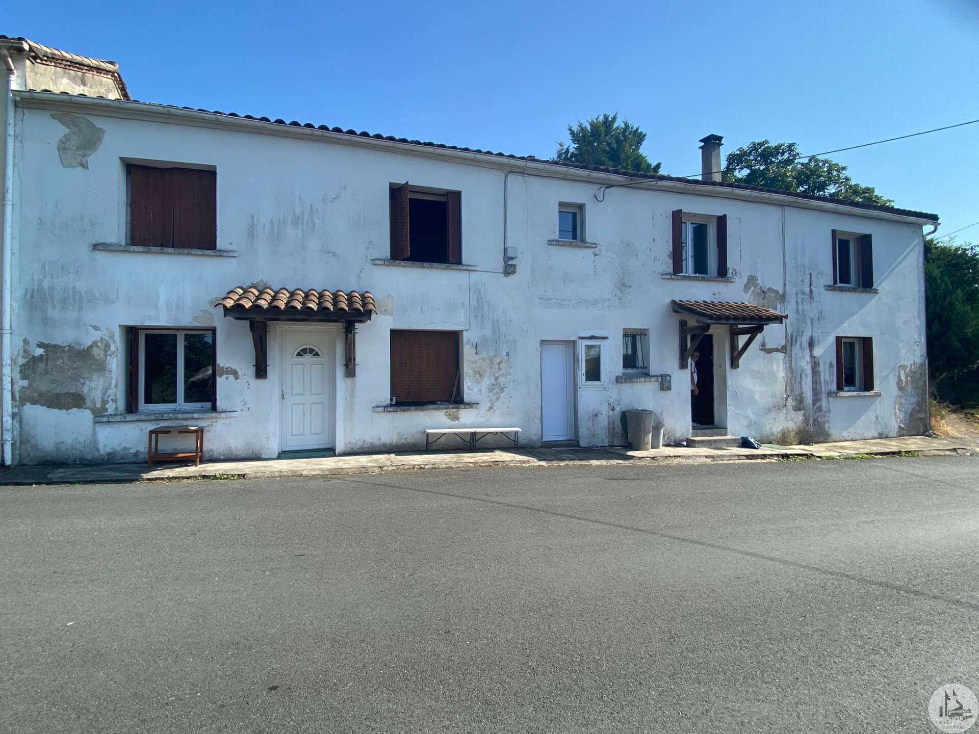 À vendre, maison de village de 180 m², divisée en deux logements distincts avec entrées indépendantes. Le premier logement se compose, au rez-de-chaussée, d'une cuisine et d'une salle à manger. À l'étage, on trouve deux chambres, des toilettes et une salle d'eau. Le second logement comprend, au rez-de-chaussée, un salon et une cuisine. À l'étage, deux chambres et des toilettes. Les deux logements sont équipés de fenêtres en PVC double vitrage, d'un chauffage au bois et d'un cumulus électrique pour l'eau chaude. La propriété inclut également un cellier avec un puits et est reliée au tout-à-l'égout.