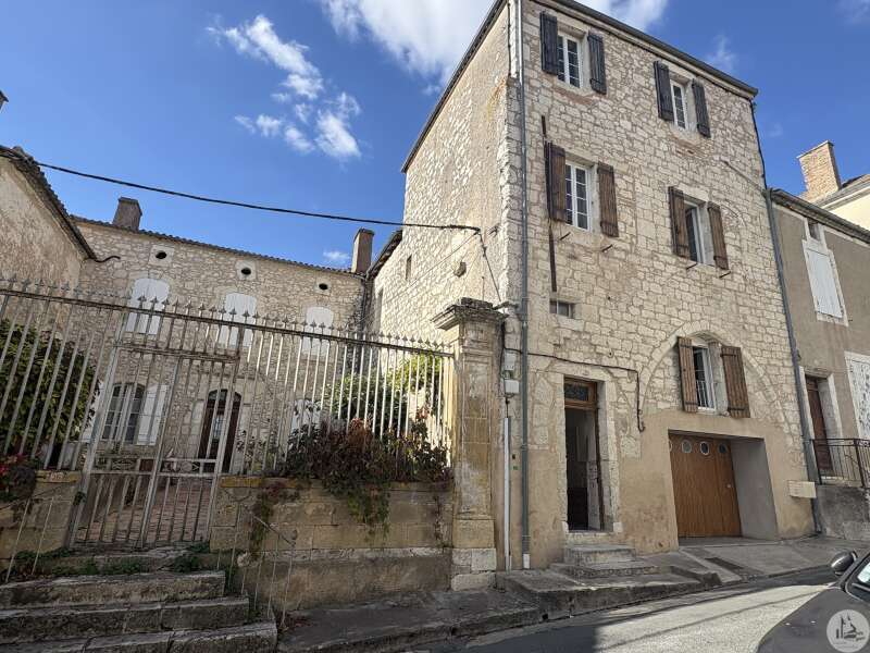 Zeer mooie ligging in het hart van Monflanquin voor dit charmante stenen huis van circa 160 m2, drie slaapkamers en garage.