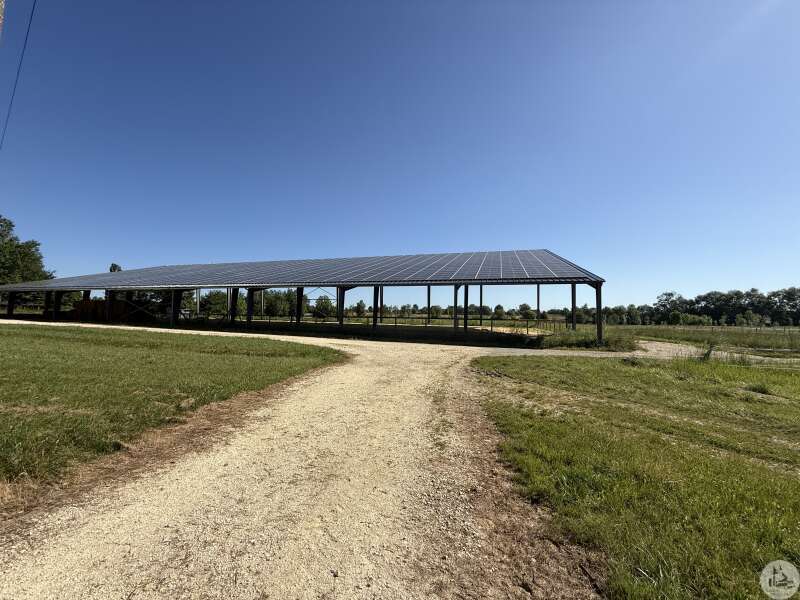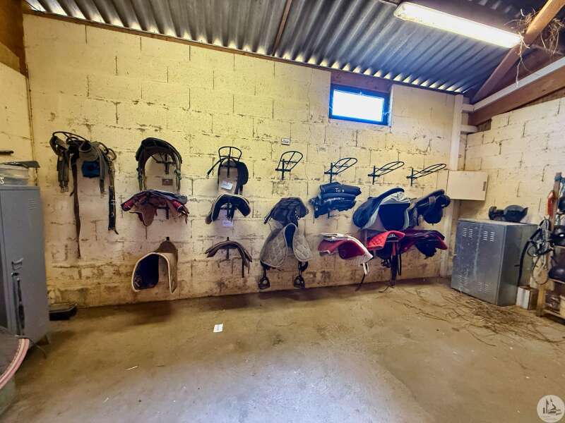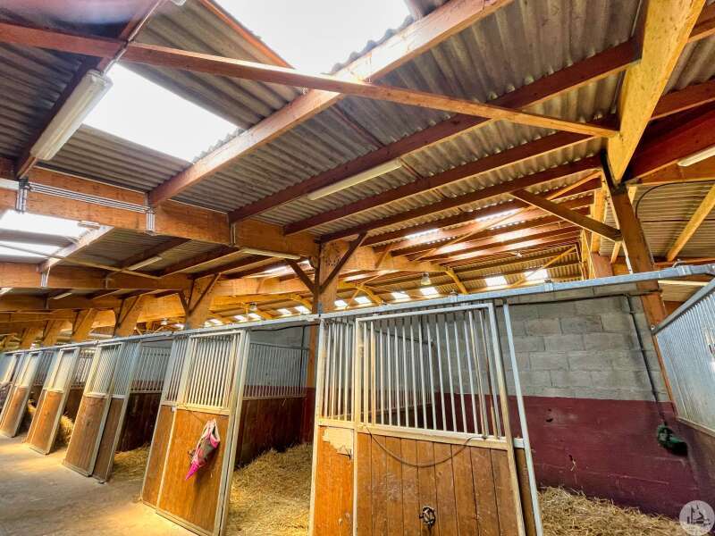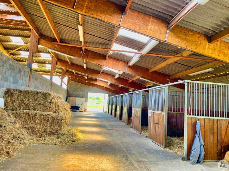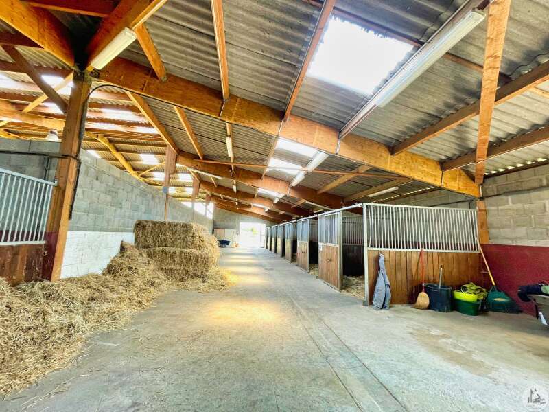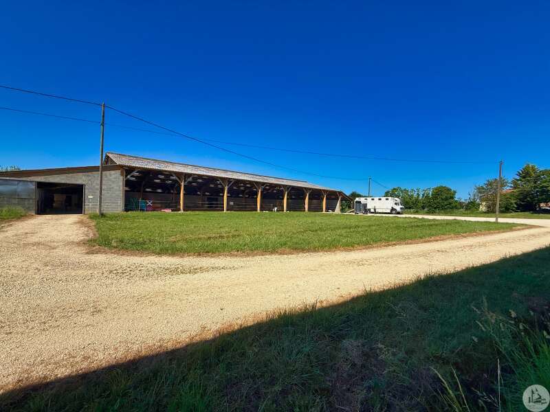 We volgen een lange route om dit paardencomplex te vinden, omgeven door velden en omheinde weilanden, met hier en daar wat waterpartijen. Deze structuur bestaat uit een Périgord-huis, een schuur en faciliteiten voor paardrijden. U bent van harte welkom om les te geven, te fokken of privéstallen te huren. Daar vindt u: -Een huis van 95 m², bestaande uit drie slaapkamers van 15 m², 12 m² en 12 m², een woonkamer met open keuken van 54 m² met een houtkachel en een badkamer van 4 m². De zolder kan worden omgebouwd. In de kelder bevinden zich de stookolieketel "Géminox" en de warmwatertank. Dubbelwandige aluminiumisolatie. Twee terrassen. Het dak is in 2025 vernieuwd en er zit nog steeds tien jaar garantie op. -Een studio van 35 m² bestaat uit een woonkamer, een open keuken van 30 m² en een doucheruimte van 4,73 m². -Een Clubhuis van 73 m² met erkers doet dienst als ontvangstruimte of klantenontvangst, met een bar, douches, toiletten en een privékantoor van 18 m². -Een garage of werkplaats van 28 m² kan eenvoudig worden omgebouwd. Er zit een raam in. -Een schuur van ca. 80 m² wordt gebruikt voor de opslag van voer/stro. Voor de beoefening van het paardrijden vinden we: -Een longeerring met een diameter van 18 meter -Een volledig met zonnepanelen overdekte, omheinde zandbak van 70x20 m en een opslagruimte. -Het gebouw bestaat uit een manege van 42x20 m met een zandbodem (vereist weinig watergift) met binnenstallen van 25 boxen van 3x3 m, allemaal uitgerust met automatische verversingsposten. Het frame is gemaakt van verlijmd gelamineerd hout. Mogelijkheid om zoveel boxen opnieuw in te richten als nodig is, terwijl er een centrale gang beschikbaar blijft voor de hoefsmederij, voorzien van een afvoergoot. Schuifgevels (mogelijkheid tot zwanenhals). U kunt deze attractie betreden zonder naar buiten te gaan. Twee paardendoucheruimtes van 4x4 m. Twee zadelkamers van 8,88 m² en 8,35 m². Twee kamers van 4 m², waarvan één voorzien is van een elektrisch rolluik, die gebruikt kan worden als opslagplaats voor zaden. Het terrein is verdeeld in paddocks en weilanden, omheind met linten van 2 cm, waarvan sommige voorzien zijn van water. Mogelijkheid tot aankoop van tractorachtige apparatuur......