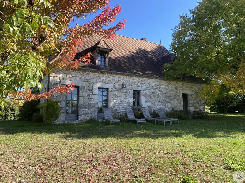 Gerestaureerd huis in Périgord-stijl met circa 140 m² woonoppervlakte in een rustige, bosrijke omgeving met prachtig uitzicht op het platteland. Op de begane grond: - Een woon-/eetkamer van 55,8 m² met tegelvloer, balkenplafond en twee openslaande deuren naar de tuin. - Een ingerichte keuken van 11 m² met tegelvloer en één openslaande deur naar de tuin. - Een badkamer met wastafel, ligbad en douche. - Een wasruimte en stookruimte van 5 m². - Een apart toilet van 1,7 m². Boven: - Een overloop van 20 m² met balkenplafond, opbergkasten en een dakraam. - Twee zolderslaapkamers van 20,2 en 19,6 m² - Een apart toilet van 1,7 m² - Dubbele beglazing (houten kozijnen) - Centrale verwarming op olie Buiten: - Een perceel grond van 8.764 m²