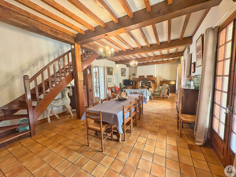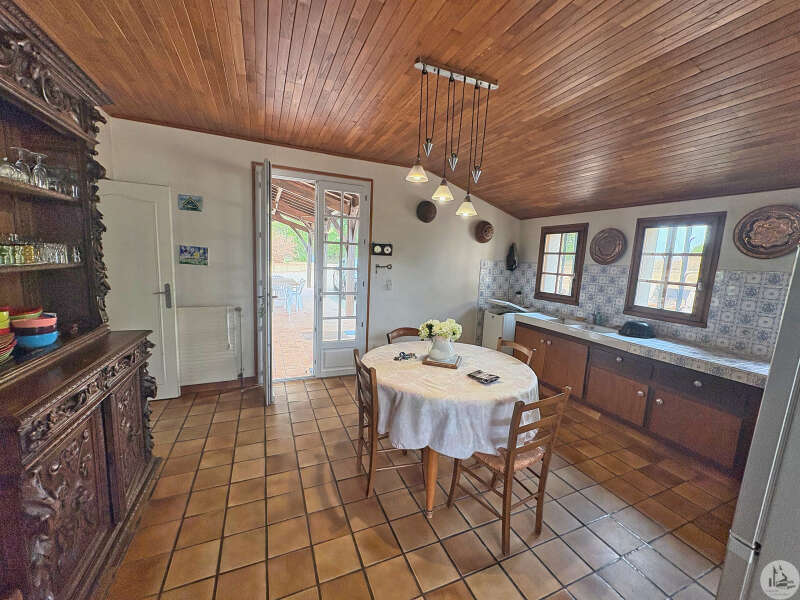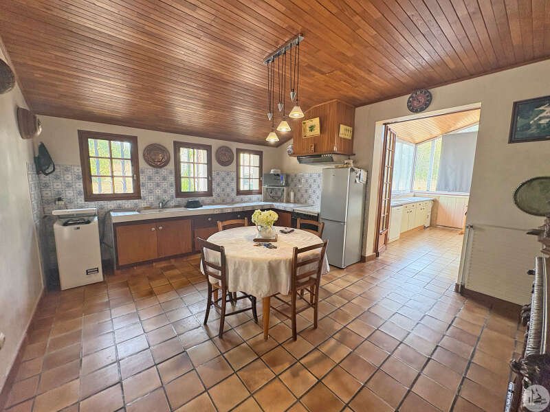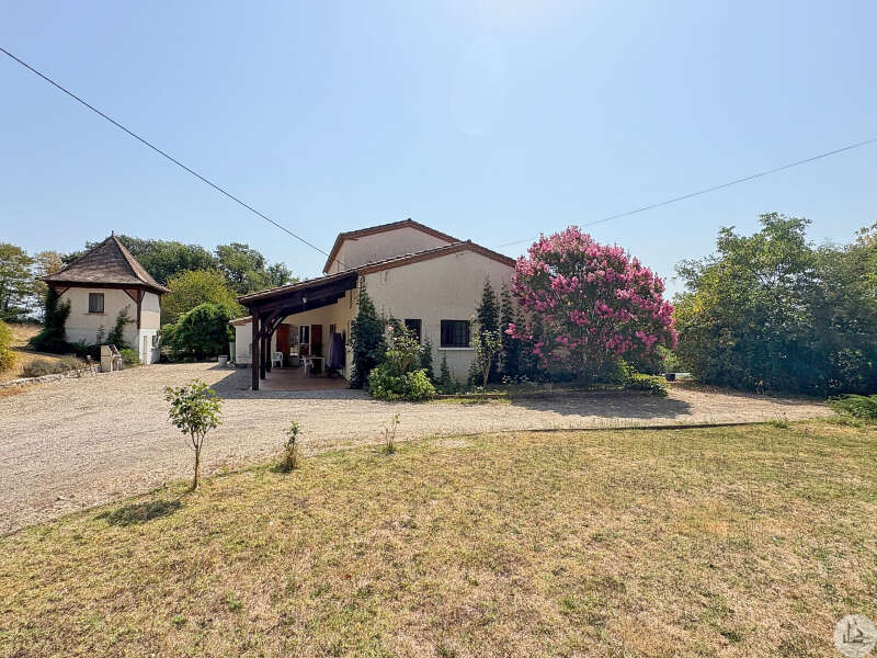 Woning gebouwd in 1978, circa 170 m² (1.760 sq ft) met bijgebouwen op een perceel van 9.784 m² (9.784 sq ft). De woning bestaat uit: Op de begane grond bevinden zich een woon-/eetkamer met houtkachel, een keuken met bijkeuken, een slaapkamer, een overloop naar een badkamer met dubbele wastafel en toilet, een tweede apart toilet met wastafel en tot slot een berging (die als vijfde slaapkamer kan worden gebruikt). Boven biedt een overloop toegang tot drie slaapkamers en een badkamer met toilet. De bijgebouwen bestaan uit: Een duiventil met twee verdiepingen, een aanbouw en een schuur. Buiten de woning bieden twee beschutte terrassen toegang tot een binnenplaats en vervolgens tot een aangelegde tuin met een chloorbehandeld zwembad van 10 x 5 meter, beveiligd door een hek en een rolluik, evenals de technische ruimte. De kozijnen zijn voorzien van dubbel glas. Het sanitair systeem bestaat uit een functionerende septictank. Het verwarmingssysteem is elektrisch.