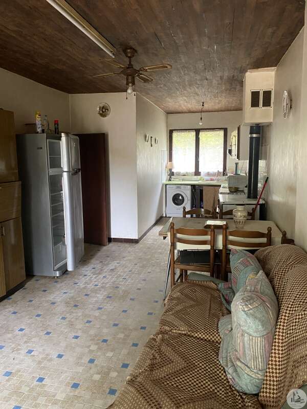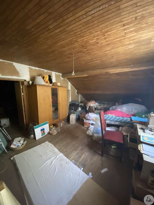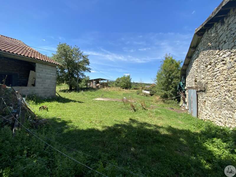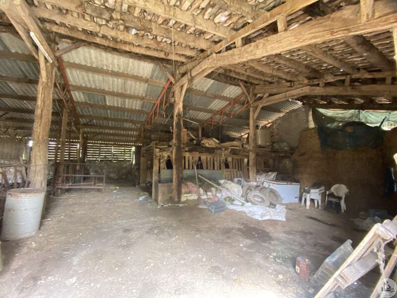 Een voormalige boerderij met een woonhuis, een schuur en twee metalen zonneschermen. Een woonhuis gebouwd in 1967, met een woonoppervlakte van circa 67 m², bestaande uit: - Een woonkamer van circa 18,2 m², betegelde vloer, openslaande deuren, een plafond met lambrisering en gepleisterde muren. - Een keuken van circa 6 m², betegelde vloer en een raam. De keuken is voorzien van een spoelbak, boven- en onderkastjes, een gasfornuis en een afzuigkap. - Een hal van circa 7,1 m², betegelde vloer, gepleisterde muren en een plafond met lambrisering. Een toegangsdeur. - Een doucheruimte van circa 3,6 m², betegelde vloer, betegelde muren en een raam. Een bad, wastafel en bidet. - Een apart toilet van circa 1,8 m² (140 sq ft), betegelde wanden, tegelvloer en een raam. - Een slaapkamer van circa 10,4 m², tegelvloer en een ladder naar de zolder. - Een slaapkamer van circa 9,5 m², houten vloer, gestuukte wanden, behangen wanden en één raam. - Een slaapkamer van circa 10 m², houten vloer, twee ramen, behangen wanden en een plafond met houten lambrisering. - Een verbouwde zolder met twee kamers van circa 22,3 m² en 26,5 m², houten vloer en een ongeïsoleerd dak. Alle ramen en deuren hebben enkel glas. Het huis heeft geen verwarming. Een vrijstaande stenen schuur van 15,7 m x 19 m, met een aangestampte leemvloer. Het dak heeft een asbesthoudend afschot (naar verwachting) en een afschot van tegels. Aangrenzend aan de schuur bevindt zich een overkapping van 7 x 15 meter op de grond, met een nieuwe dakbedekking. Een overkapping van hout en metaal voor de opslag van landbouwmachines en een werkplaats. Een metalen overkapping voor de opslag van hooi.