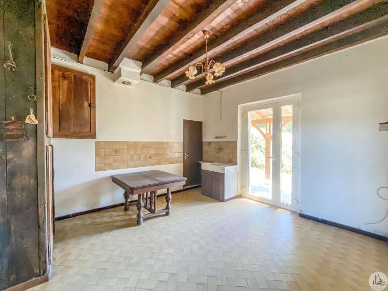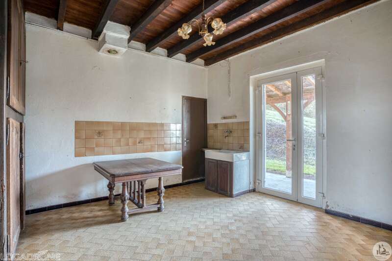 Voormalige stenen boerderij bestaande uit een woonhuis, gedeeltelijk onderkelderd, en bestaande uit: een veranda (21,5 m²), doucheruimte (4,9 m²), toilet (2,6 m²), hal, keuken (29,9 m²) met houtkachel, een bijkeuken (15,6 m²) met toegang tot een overdekt terras (veranda), eetkamer (23,4 m²), hal (2,9 m²), vier slaapkamers (15,2; 15,6; 15,7 en 20,9 m²), een kamer (6,1 m²) die gebruikt kan worden als kleedkamer, kantoor of omgebouwd kan worden tot een tweede doucheruimte. Zolder die verbouwd kan worden. Het huis zou baat hebben bij verbetering, modernisering en renovatie. De rustige ligging en het vrije uitzicht moedigen u echter aan om dit te doen (zonder spijt). Centrale verwarming op olie. Ramen met dubbele beglazing (PVC of aluminium). De daken van het huis en de schuur zijn in 2012 vernieuwd. Stenen schuur (circa 100 m²) en een garage. Perceel van circa 6,8 hectare met een waterput, ideaal voor paarden of voor rustzoekers.