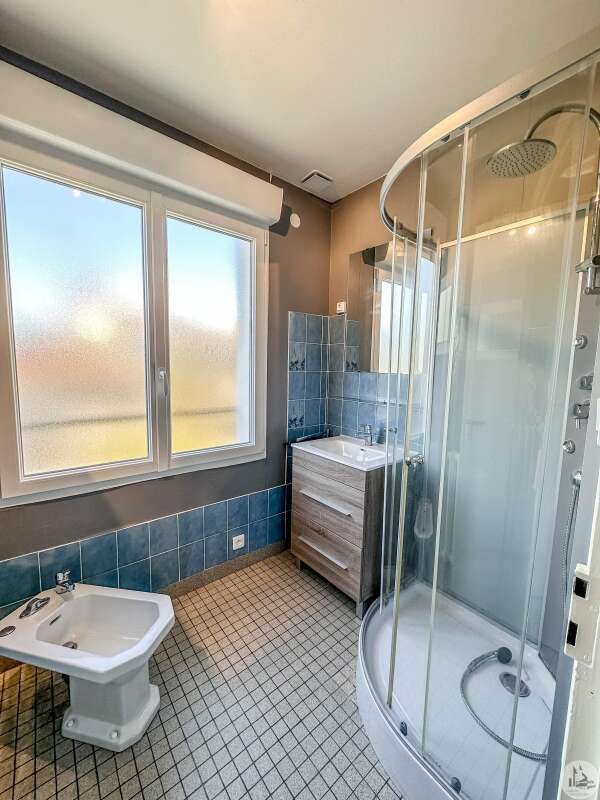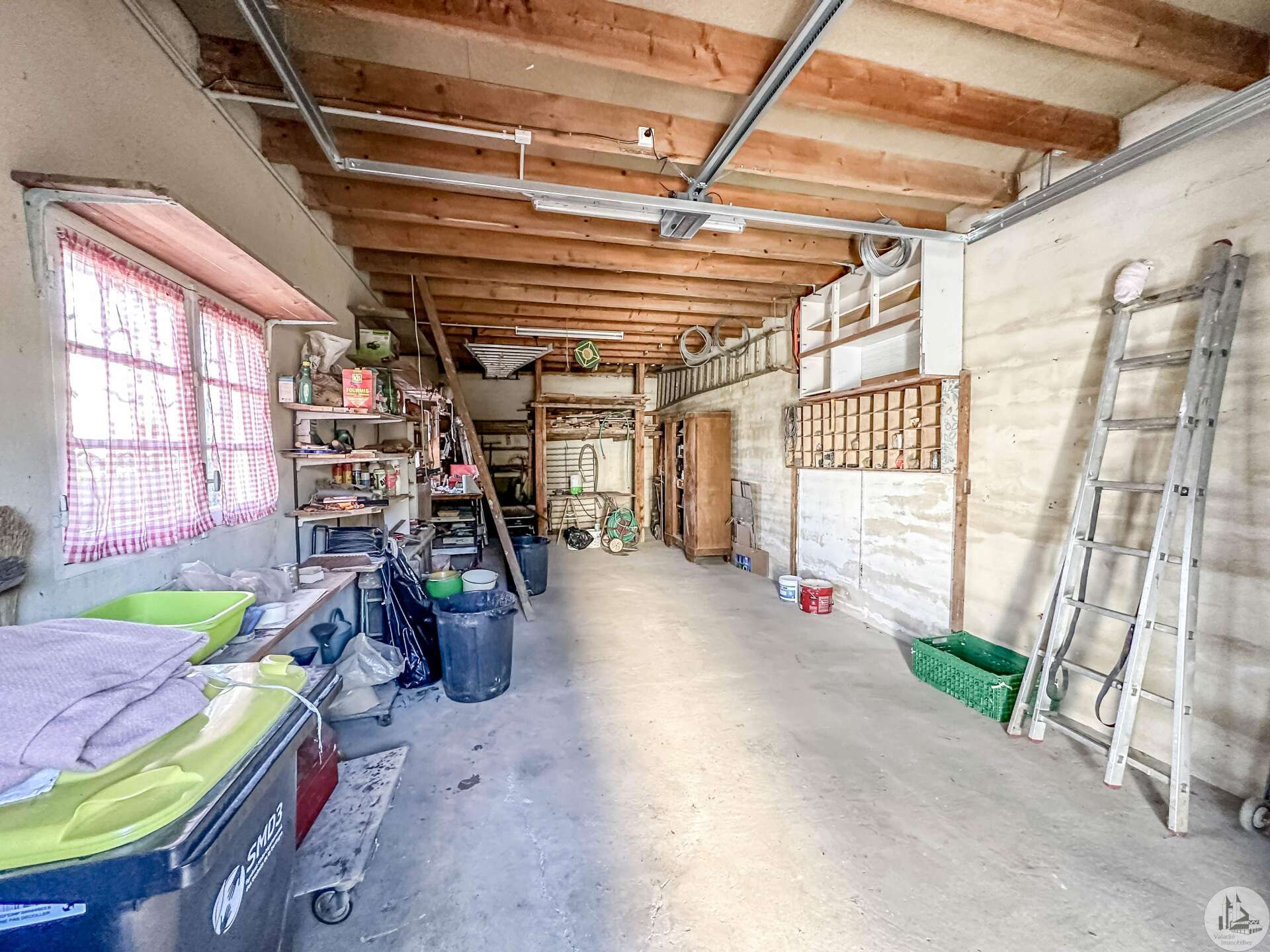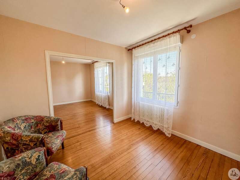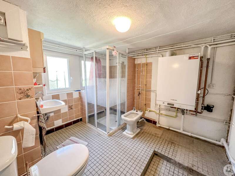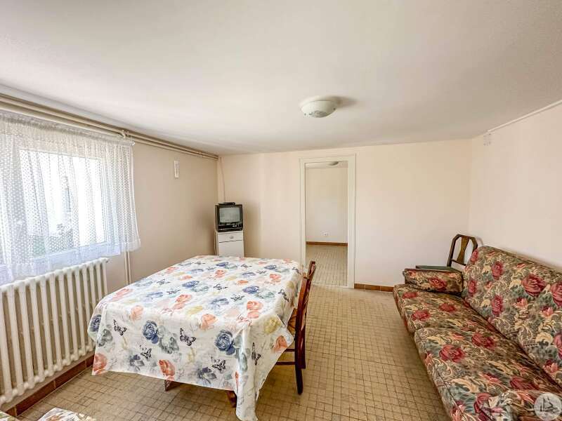 Woonhuis bestaande uit: - compenseren met kasten, - ingerichte keuken (gaskookplaat, oven, ruimte voorzien voor een vaatwasser (9,5m2), - woon-/eetkamer (15 + 9,8m2), parketvloer, - twee slaapkamers (circa 11,3m2 en 10m2), verglaasde parketvloeren, - doucheruimte met bidet, wastafel, spadouche (3,35m2), 3 jaar geleden vernieuwd, - onafhankelijke toiletten. In de kelder: - keuken (14m2), - woonkamer (11,5m2), - slaapkamer (9,3m2), - doucheruimte met toilet, wastafel, bidet, boiler, cumulus (9,3m2), - oude garage (15,5m2) hoogte = 1,99m, - Hal met kasten onder de trap. Onafhankelijke garage met nieuwe poort, aangrenzende tuin, waterput (alleen voor de tuin, pomp in de garage). Gemengd : - FIBER aangesloten - elektrische rolluiken boven