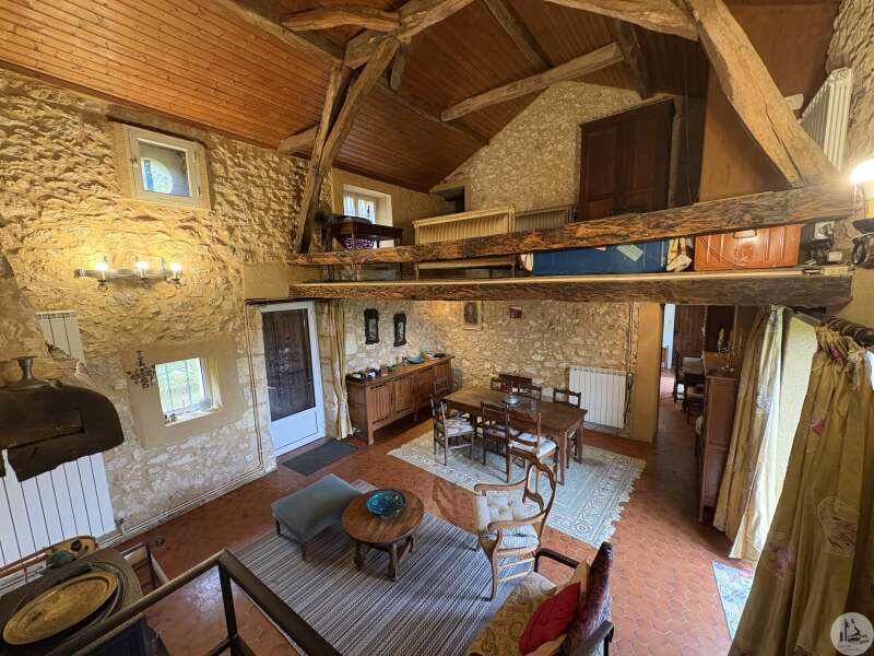 Stenen woning met een hoofdgebouw, een gîte en bijgebouwen op een perceel van 136.765 m². De hoofdwoning in boerderijstijl van circa 150 m² bestaat uit: Op de begane grond bevinden zich een keuken, een eetkamer met houtkachel, een woonkamer, een slaapkamer en een badkamer met douche en toilet. Boven is er een overloop die leidt naar twee slaapkamers en een mezzanine. In het verlengde van het hoofdgebouw bevindt zich een gîte, bestaande uit: Op de begane grond bevindt zich een woonkamer met een open keuken naar de woon-/eetkamer en een badkamer met douche en toilet. Boven is er een slaapkamer. De bijgebouwen bestaan uit: Een duiventil met een was-/bijkeuken, twee bergingen, een aparte werkplaats en een aanbouw met een carport en berging. Buiten leiden diverse terrassen naar een bosrijk park, weilanden en bossen. De kozijnen zijn voorzien van dubbel PVC-glas.
