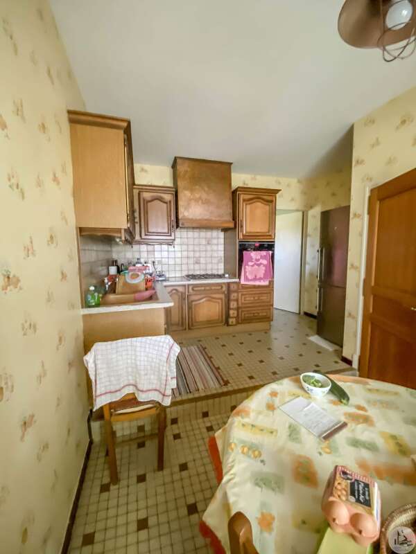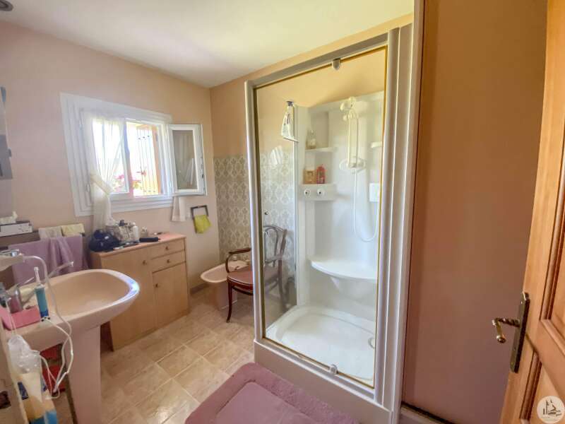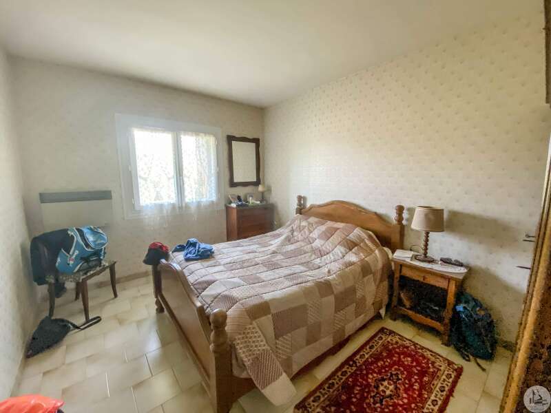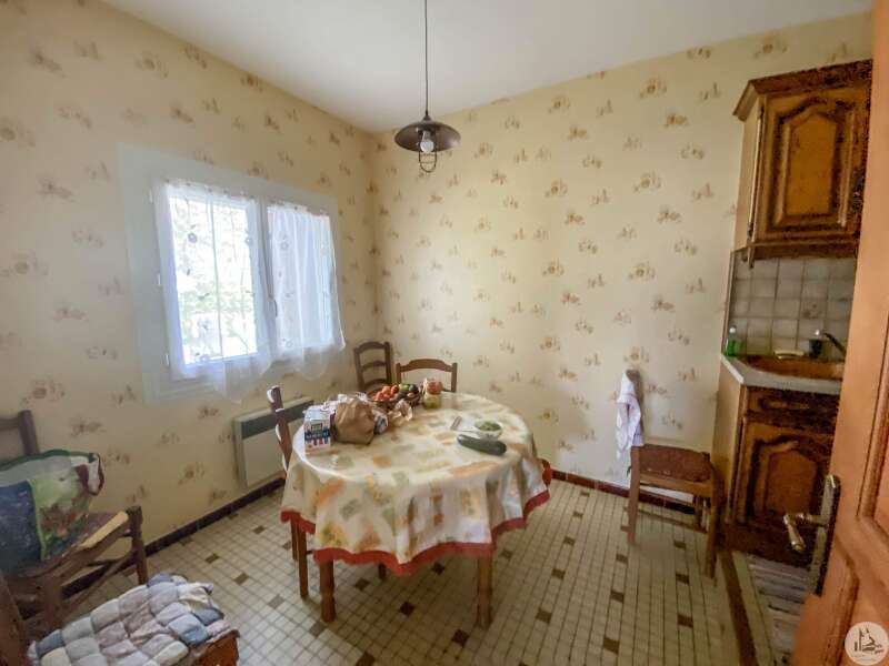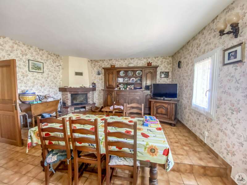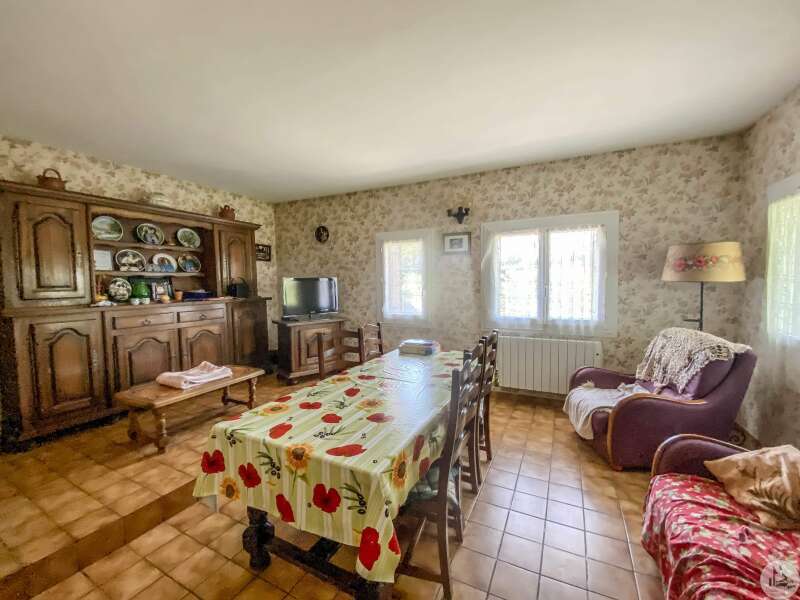 Woonhuis inclusief: - een entree (5,3m2), - links een ingerichte keuken - oven en kookplaten (11,5m2), - een bijkeuken/wasruimte met cumulus en elektriciteitsmeter (6,2m2), - aan de rechterkant een woon-/eetkamer met inserthaard (27m2), - gang (12m2), - 3 slaapkamers met tegelvloer van 16m2, 16m2 aan de achterzijde (voormalige garage) met toegang tot de zolder en 11,8m2. - doucheruimte met wastafel, douche en kasten, apart toilet. Er is een bebost, half omheind perceel, een waterput, een afgesloten schuilplaats, een onafhankelijke garage met een betonvloer van 50m2.