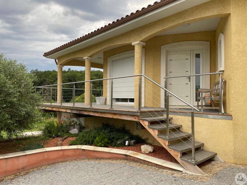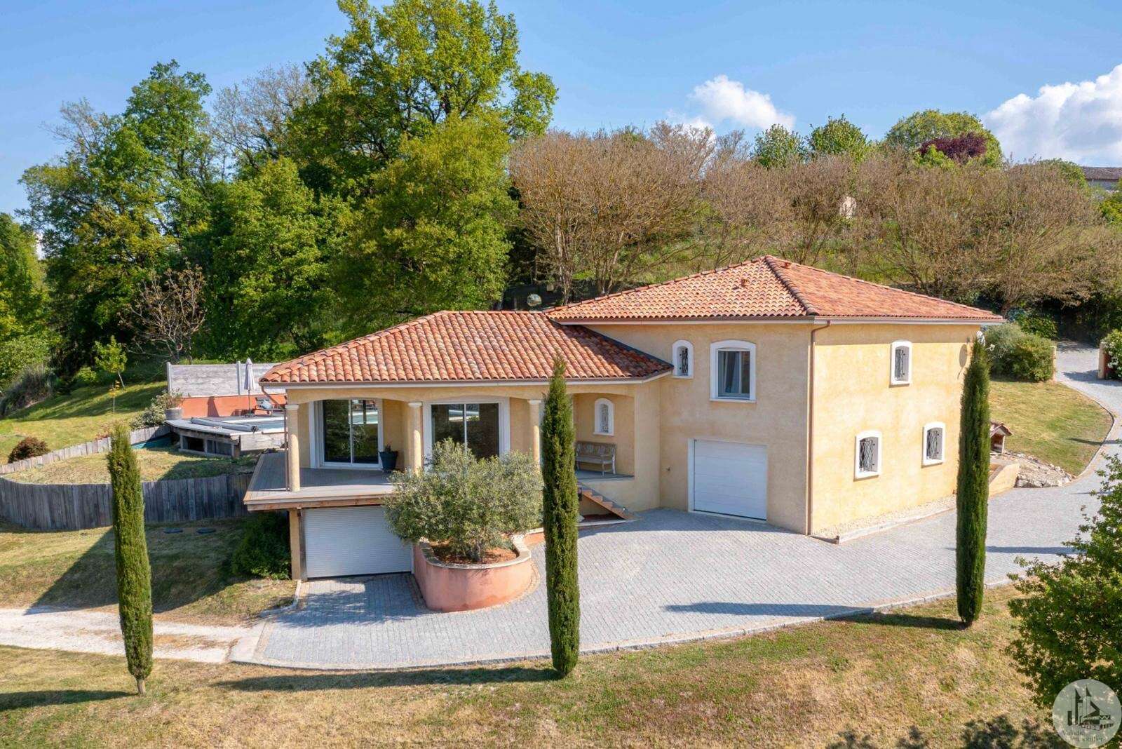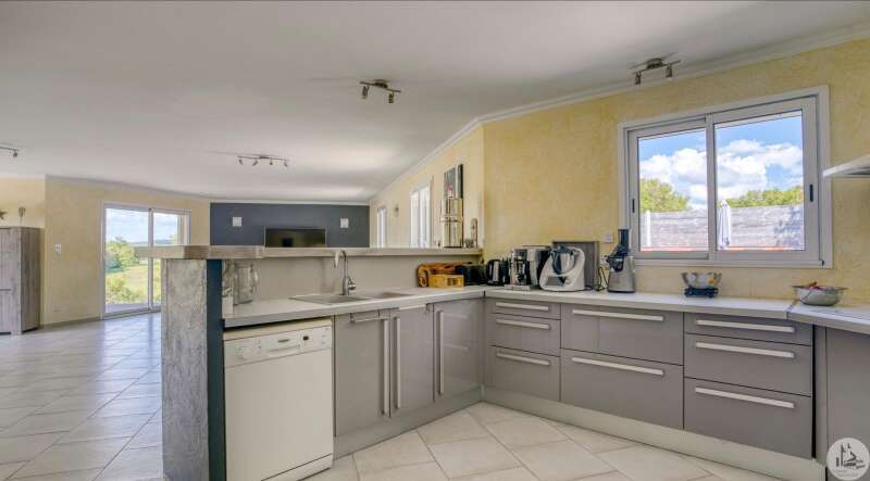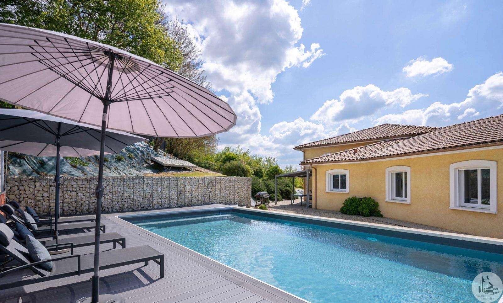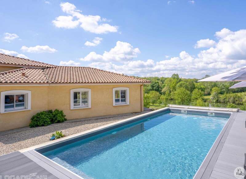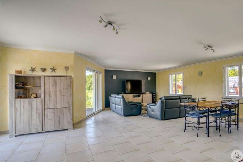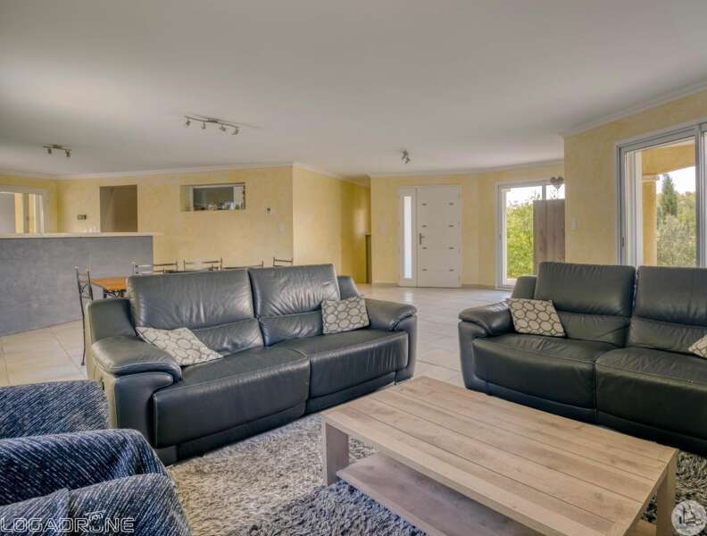 Recent gebouwde woning uit 2007 van 163 m2 op aangelegde, afgesloten grond van 3056 m2. Het interieur bestaat uit; een hoofdkamer van 77 m2 met woonkamer, eetkamer en open keuken. Een master suite met badkamer, twee slaapkamers van 13 en 11 m2, kleedkamer, aparte badkamer en apart toilet. Een kelder van 90 m2 bestaande uit een wasruimte van 20 m2 en een garage van 70 m2 met elektrisch sluitende deur. Dubbele beglazing en elektrische stuurwielen. Buiten; twee terrassen, een zoutzwembad van 11m*5m en elektrisch afsluitbare poort. Individueel sanitair systeem. Vloerverwarming. Warmtepomp.