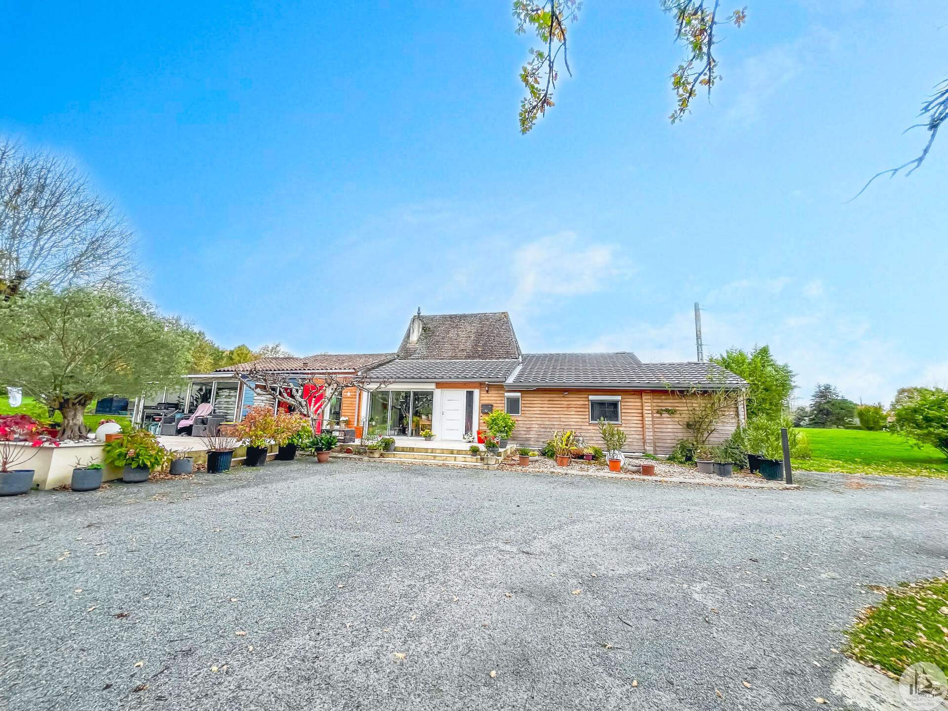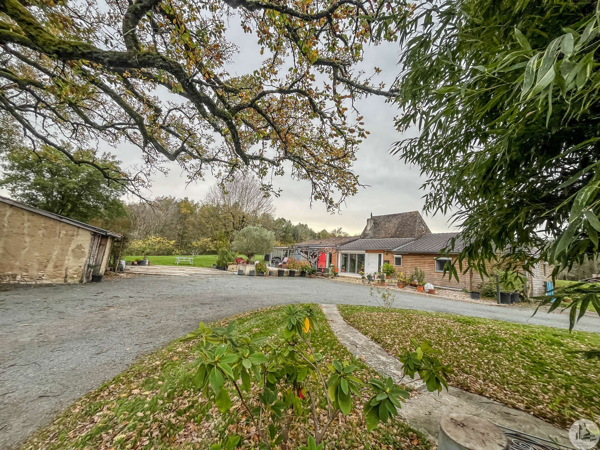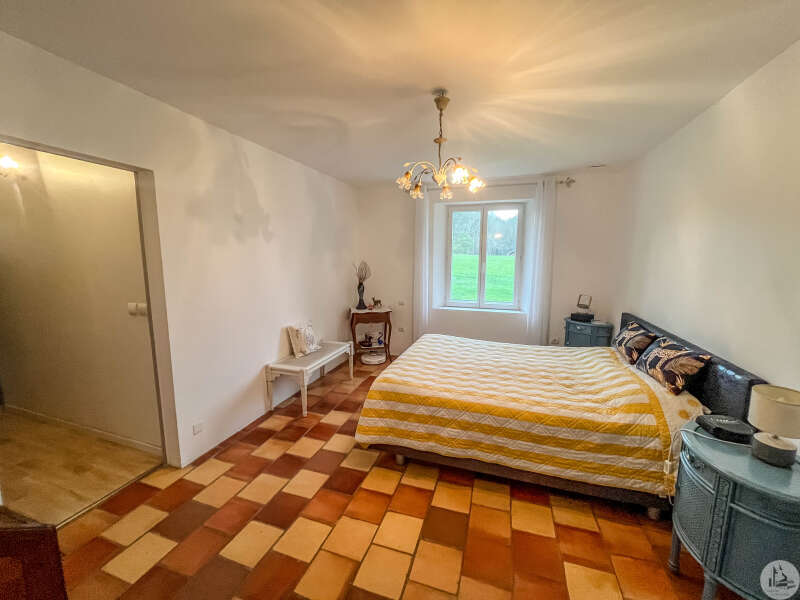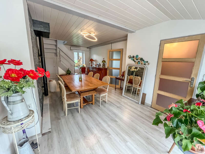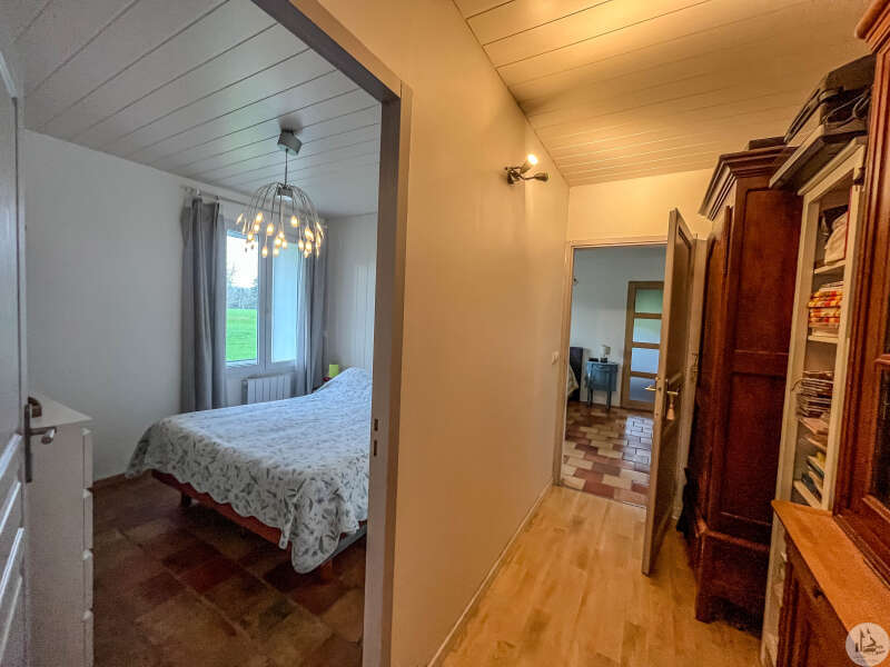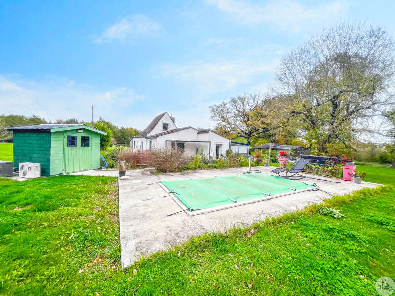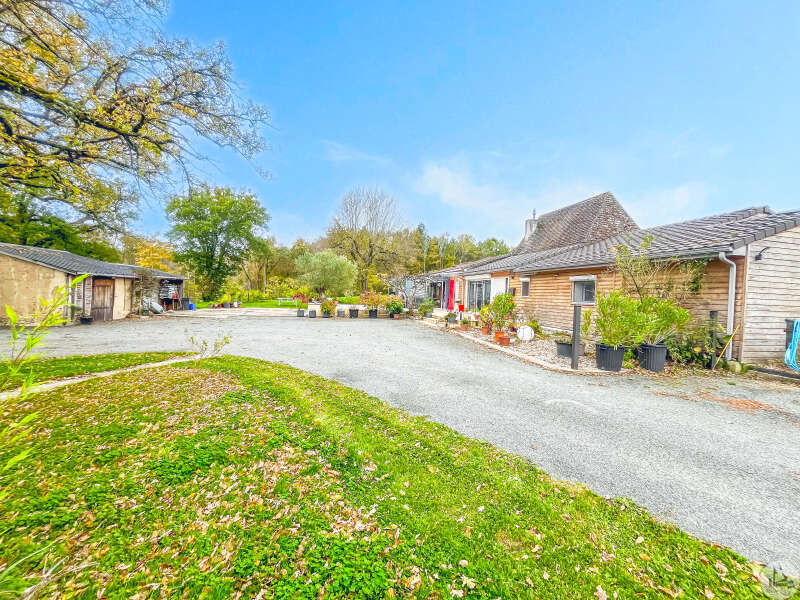 Een traditioneel huis in Périgord-stijl, gerenoveerd in de jaren 80 en voorzien van een houten uitbouw in 2020. Het huis bestaat uit: een veranda (15,14 m²), een hal (4,8 m²), een ingerichte keuken (34,7 m²) met kookeiland, fornuis en afzuigkap, een bijkeuken (4,09 m²), een woon-/eetkamer (24,5 m²), een hal, drie slaapkamers (8,8 m², 14,5 m² en 20 m²), waarvan één met een schuin plafond, één met een en-suite badkamer met douche (dubbele wastafel, bidet, wandcloset, inloopdouche), een kleedkamer (11,4 m²) en een apart toilet. Er is een terras aan de voor- en zijkant. Het huis is voorzien van omkeerbare airconditioning (twee units), een pelletkachel (met twee ventilatieopeningen voor warmteverdeling) en een elektrische convectorkachel in de badkamer. PVC-ramen met dubbele beglazing (hout in één kamer) Huis voorzien van bronwater (geen waterleiding) Bijgebouwen: 2 garages (31 m² en 23 m²), 2 schuurtjes (10,5 m² en 8,5 m²) Woning met een verwarmd chloorzwembad (9,5 m²) met massagestralen. Mogelijkheid tot aankoop van 6.235 m² extra grond met een meer.