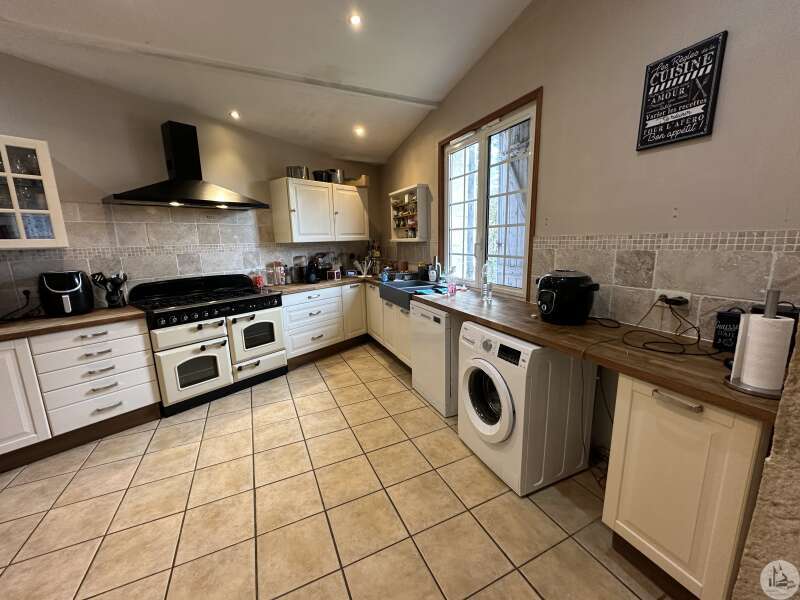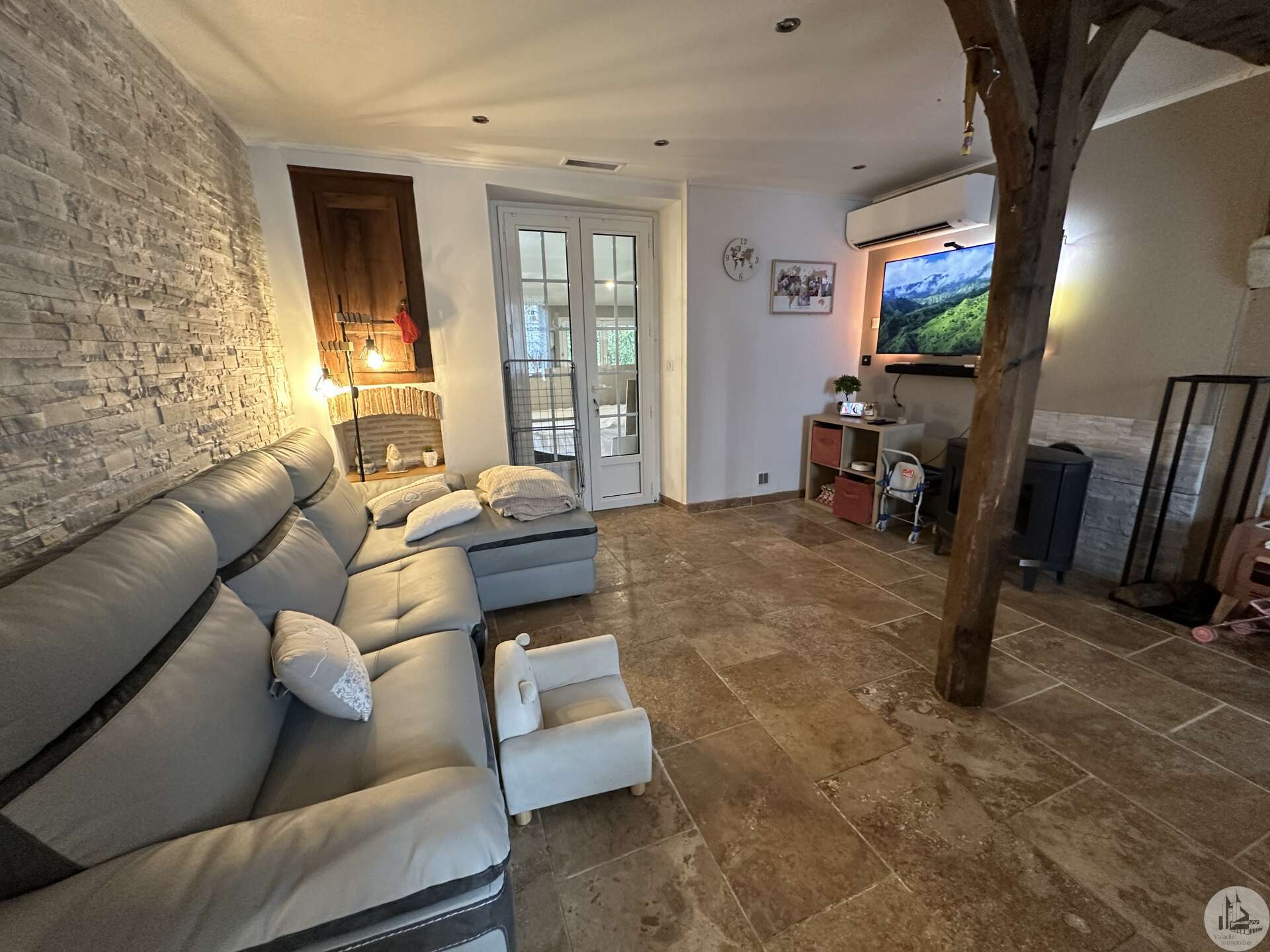 Charmante, gelijkvloerse stenen woning met een woonoppervlakte van circa 105 m², op een omheind perceel van 755 m². Ontdek de authentieke charme van deze prachtige, gelijkvloerse stenen woning, die comfort, licht en hoogwaardige afwerking biedt. De woning bestaat uit een hal van circa 4 m² die uitkomt op een gezellige woon-/eetkamer van 26 m² met zichtbare balken, travertinvloeren en een houtkachel die een warme sfeer creëert. De volledig uitgeruste keuken, met voldoende opbergruimte, een fornuis, een afzuigkap en een vaatwasser, biedt direct toegang tot de tuin. Een lichte veranda van circa 9 m², momenteel in gebruik als kantoor/slaapkamer, met originele stenen spoelbak, biedt toegang tot een terras en een aangrenzende bijkeuken/voorraadkast. Het slaapgedeelte is bereikbaar via een hal en bestaat uit: Een badkamer (bad, wastafel, handdoekradiator – ca. 5 m²), Een apart toilet, Een slaapkamer met uitzicht op de tuin (ca. 9,33 m², laminaatvloer), Een slaapkamer met inbouwkasten (ca. 9,5 m², laminaatvloer), Een master suite (ca. 9,5 m²) met een kleedkamer (ca. 4 m²) en een en-suite badkamer met douche en toilet (ca. 5 m²). De technische voorzieningen omvatten dubbele beglazing, een houtkachel, omkeerbare airconditioning in de woonkamer en aansluiting op het riool. Buiten geniet u van een prachtige, volledig omheinde tuin van ca. 755 m², aangenaam en onderhoudsvriendelijk, ideaal voor zomerse maaltijden of om in te spelen.