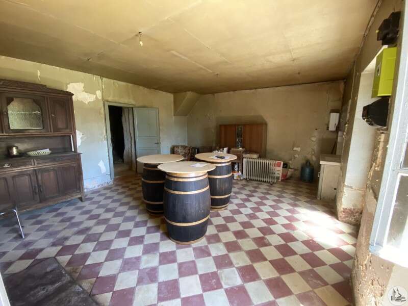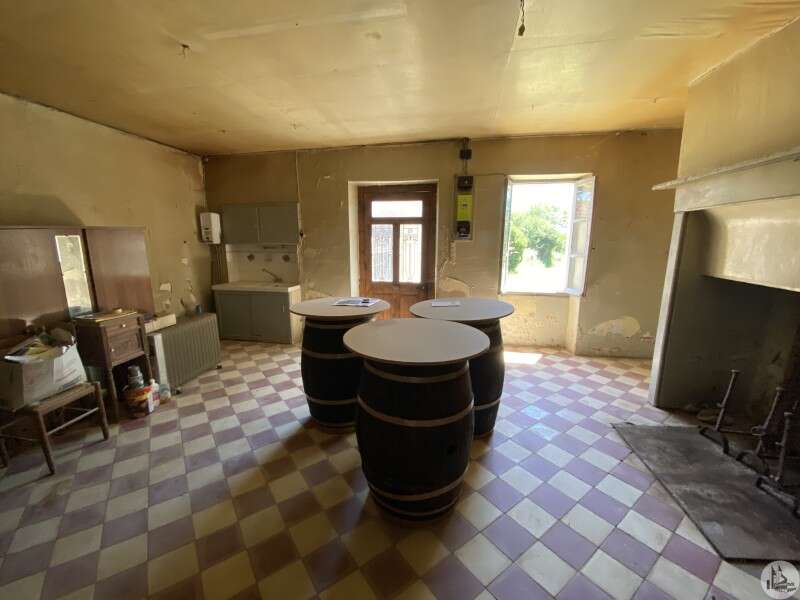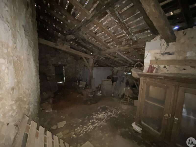 Een stenen woonhuis dat volledig moet worden gerestaureerd, inclusief: - een ingang naar een keuken van ca. 30 m2. met een oude schouw, een gootsteen, oude tegelvloer. - een kamer van 23,3 m2 ca. vloer die moet worden vernieuwd - een slaapkamer van ca. 15,6 m2, houten vloer. - een kamer van 17,2 m2 ca. met een toegangsdeur naar buiten, een oude schouw. Deze vier kamers staan op een rij. - Een inrichtbare kelder van ca. 32,8 m2. en een in te richten aanbouw achter de keuken van ca. 18,8 m2. - Zolder van ca. 98 m2, houten vloer, plafondhoogte 1,6 m. Geen verwarming. Geen sanitaire voorzieningen. Houten schrijnwerk met enkele beglazing. Dak om te herzien. Water en elektriciteit. Afhankelijkheden: - een stenen hangar open naar de voorzijde van ca. 57 m2, klei op de grond. - Een tabaksdroger van 120 m2 op de grond ong., Geslagen aarde op de grond en bekleding te herzien, frame en tegels in goede staat. - stenen stallen. Let op: de schuur die grenst aan de woning (op de foto's) bestaat niet meer. Land van 3508 m2 rondom.