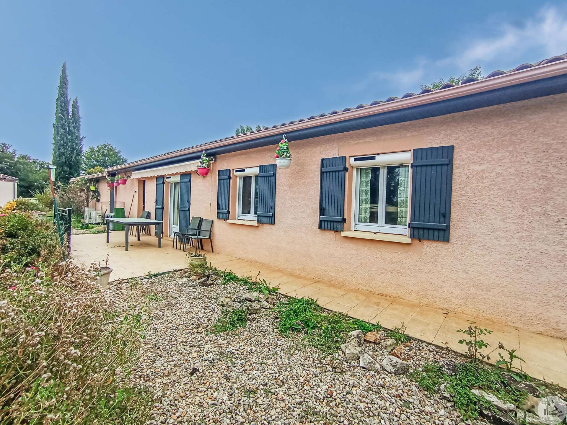 Een gelijkvloerse woning gebouwd in 1989 en gerenoveerd tot in de jaren 2000, met een woonoppervlakte van circa 93 m2 inclusief: - Entree in een kamer met keuken/woon-/eetkamer van circa 45 m2, tegelvloer, openslaande deuren naar de tuin. Een keuken voorzien van hoge en lage kasten, afzuigkap, spoelbak. - Een woonkamer van circa 18,9 m2, tegelvloer, erker. - Een kelder van circa 11,7 m2, tevens dienst doend als zwembadkamer. - Een distributiegang van circa 3,4 m2, tegelvloer - Een badkamer van circa 3,4 m2, tegelvloer, aardewerk wanden, een inloopdouche, een wastafel, een VMC, een raam. - Een slaapkamer van circa 8,4 m2, linoleumvloer, kastenwand. - Een separaat toilet van circa 1,5 m2, tegelvloer, vmc. - Een slaapkamer van circa 10,5 m2, linoleumvloer, kastenwand. Informatie-elementen: - PVC schrijnwerk met dubbele beglazing en rolluiken. - Verwarming door omkeerbare airconditioning + elektrische radiatoren. - Sanitair middels septic tank. - Zolderisolatie met glaswol. Buiten: - Een dubbele garage van 40m2, betonnen vloer. - Een chloorzwembad met een koepel van 10x5m (verwarmd door een warmtepomp). De voering en filtratie zijn in 2024 vervangen. - Tuin van circa 2140m2