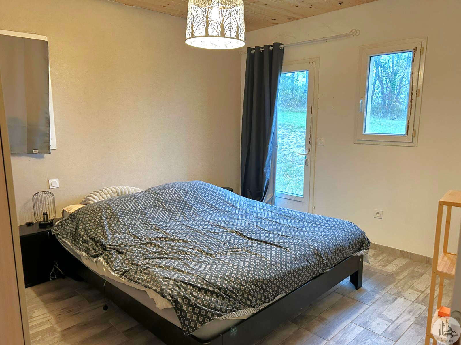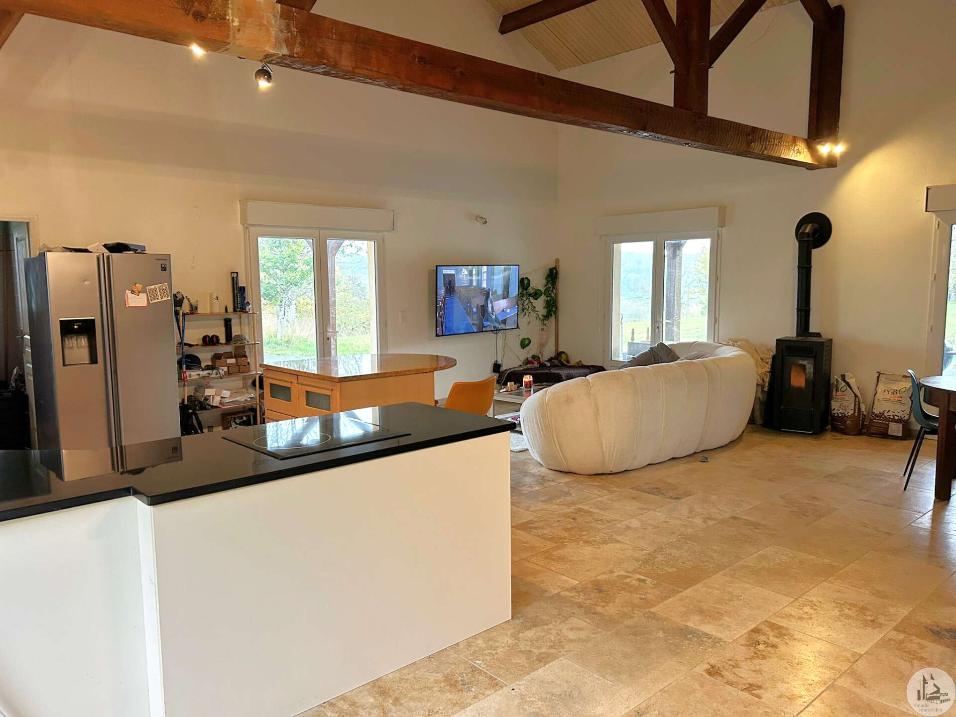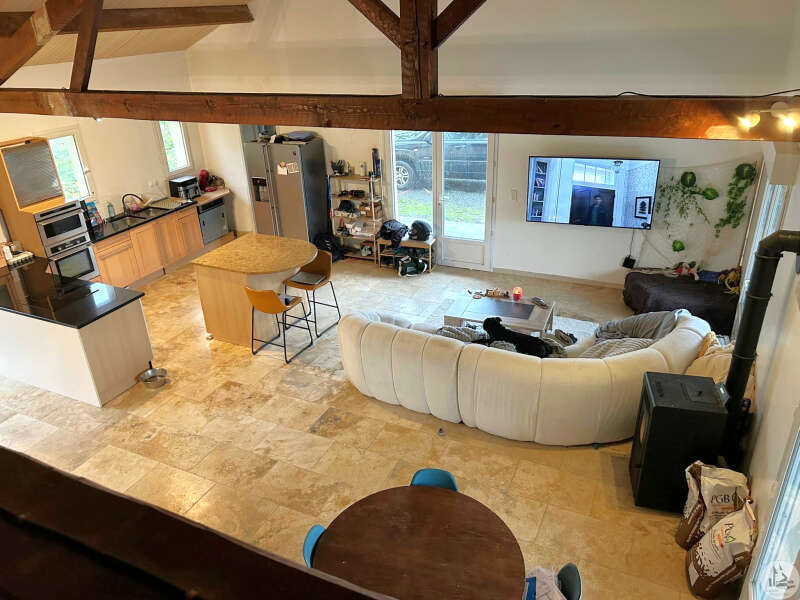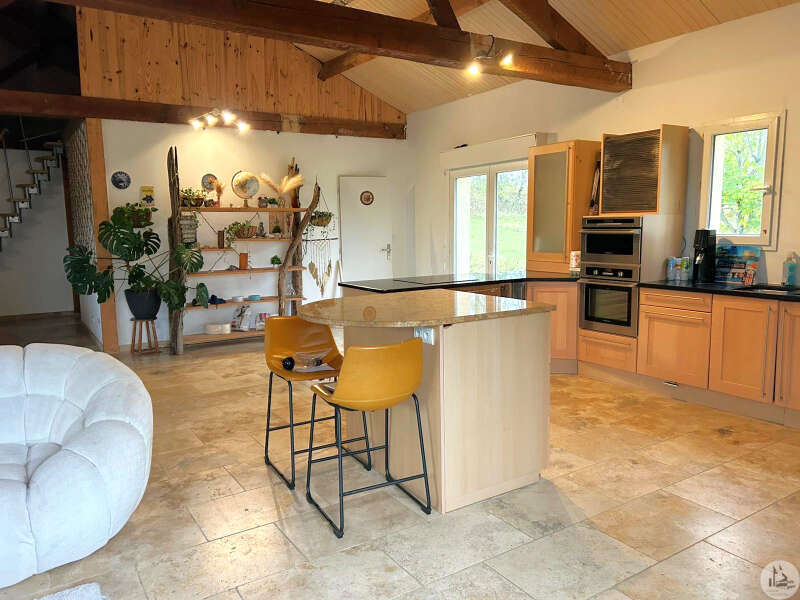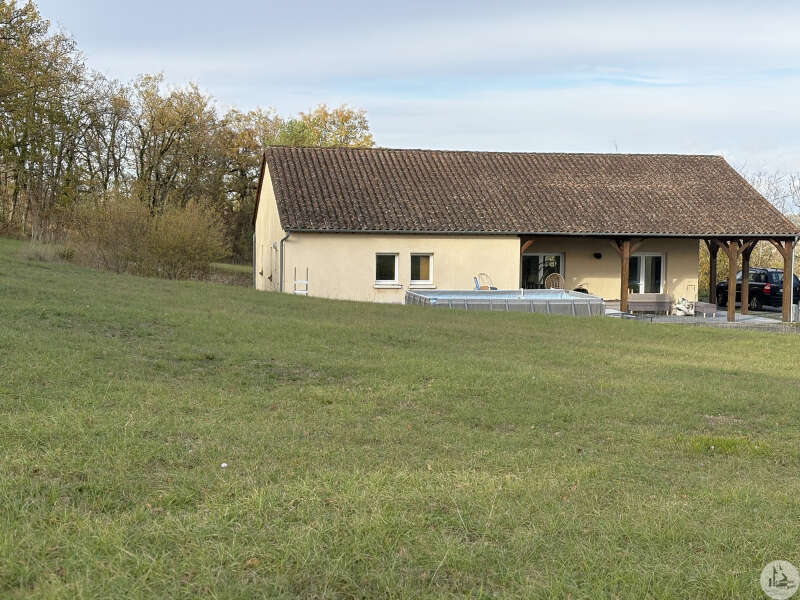 Traditioneel huis gebouwd in 2000 op een perceel van 10.170 m². Het huis, met een woonoppervlakte van circa 145 m², omvat: Op de begane grond, circa 130 m², met een woonkamer van circa 65 m² met een open ingerichte keuken/woon-/eetkamer met een hoog plafond, vier slaapkamers, een badkamer met inloopdouche en dubbele wastafel, een wasruimte en twee toiletten. Boven, een mezzanine van 67 m² (vloeroppervlakte). Buiten leidt een overdekt betegeld terras van circa 41 m² naar een binnenplaats met parkeergelegenheid en vervolgens naar een weide met een vijver. Elektrische verwarming in de slaapkamers en een pelletkachel in de woonkamer. De ramen en deuren zijn van PVC met dubbele beglazing.