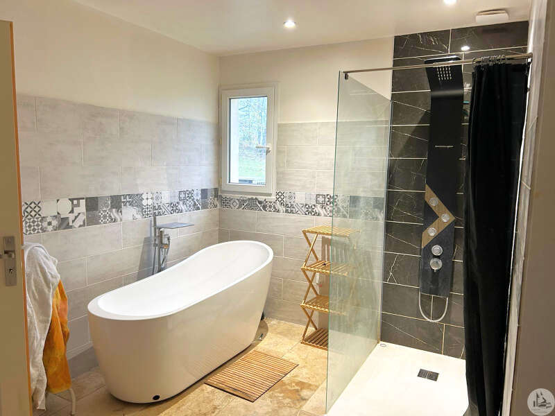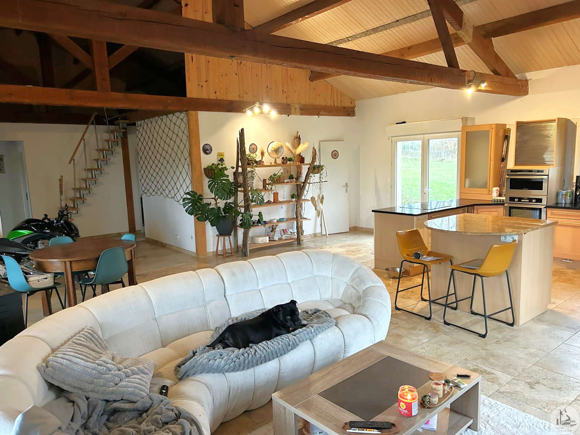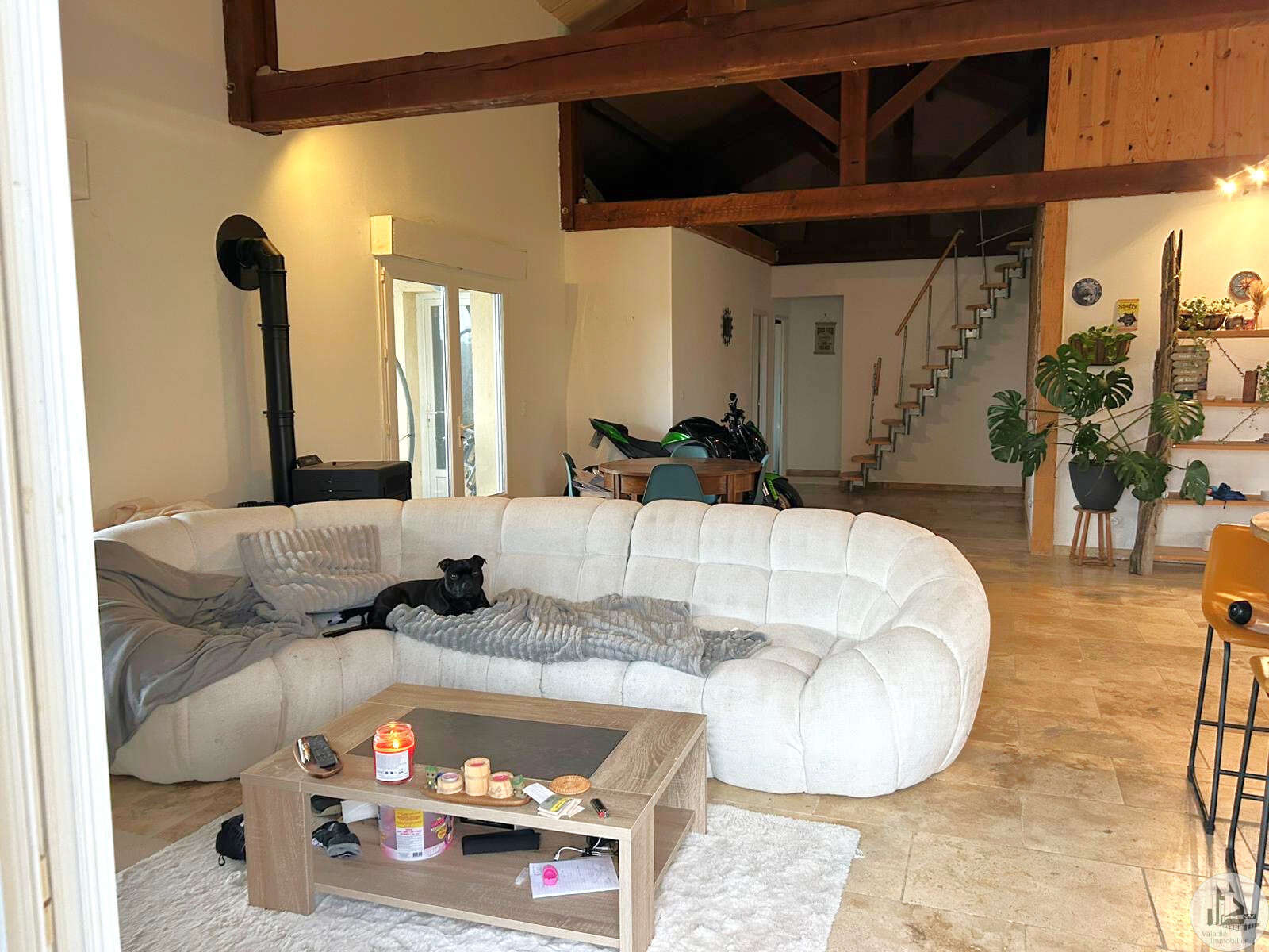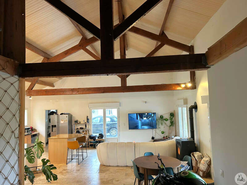 Traditioneel huis gebouwd in 2000 op een perceel van 10.170 m². Het huis, met een woonoppervlakte van circa 145 m², omvat: Op de begane grond, circa 130 m², met een woonkamer van circa 65 m² met een open ingerichte keuken/woon-/eetkamer met een hoog plafond, vier slaapkamers, een badkamer met inloopdouche en dubbele wastafel, een wasruimte en twee toiletten. Boven, een mezzanine van 67 m² (vloeroppervlakte). Buiten leidt een overdekt betegeld terras van circa 41 m² naar een binnenplaats met parkeergelegenheid en vervolgens naar een weide met een vijver. Elektrische verwarming in de slaapkamers en een pelletkachel in de woonkamer. De ramen en deuren zijn van PVC met dubbele beglazing.