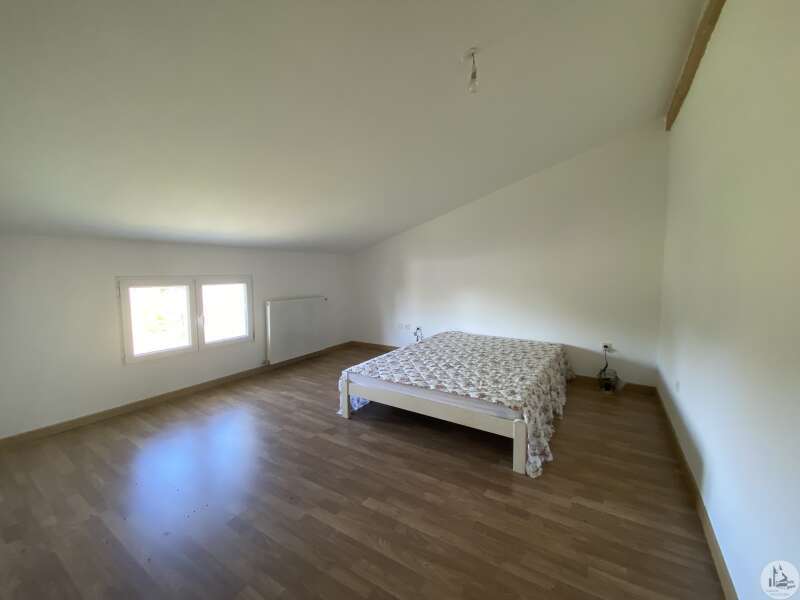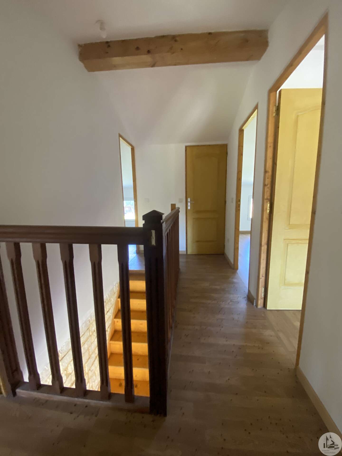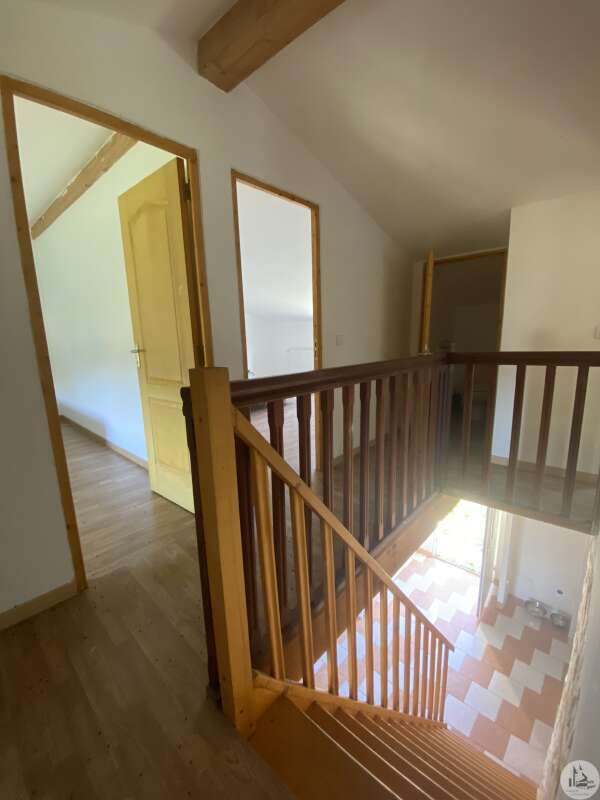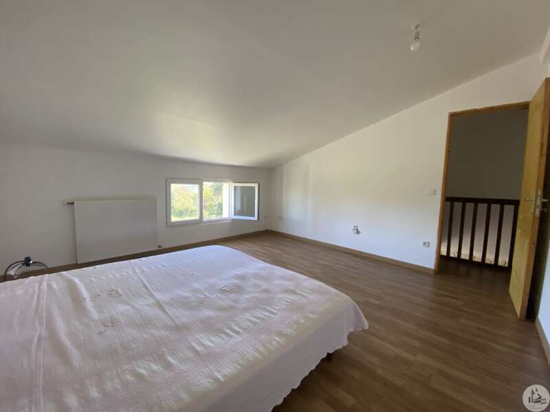Recent gebouwde woning (ongeveer 13 jaar oud) inclusief: - op de begane grond: ingerichte keuken/woonkamer (44,5 m2), wasplaats/stookruimte (6 m2), slaapkamer of kantoor (12,2 m2), doucheruimte van ongeveer 4,5 m2 (2 wastafels, douche en bad), een aparte wc. - Boven: overloop, 4 slaapkamers (11,7; 10,7; 11,1 en 10,2 m2), een toilet, een ruimte die kan worden omgebouwd tot doucheruimte of kleedkamer (2,6 m2) - de evacuaties en aankomsten zijn onder de vloer aanwezig. PVC ramen met dubbele beglazing. Gasverwarming (begraven tank) Tuin van meer dan 1000 m2.