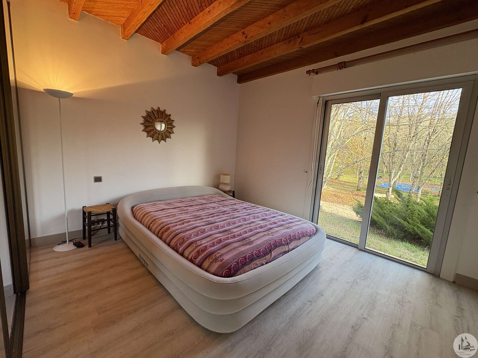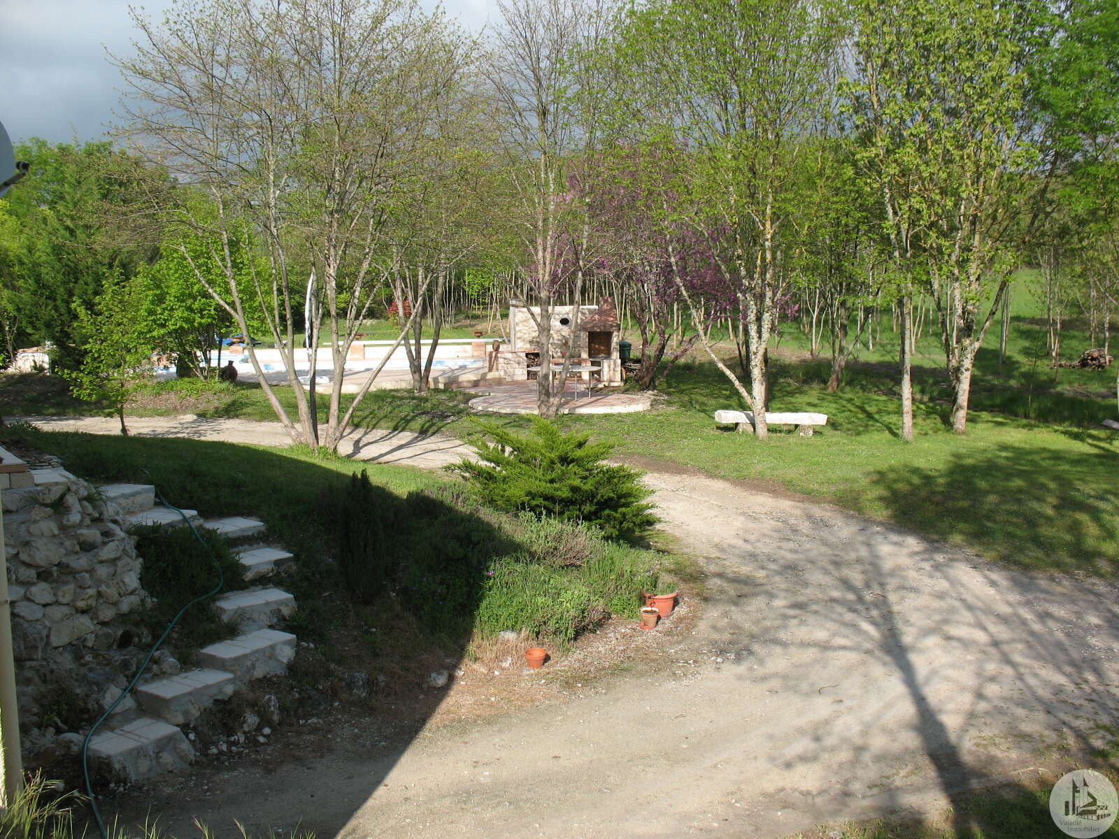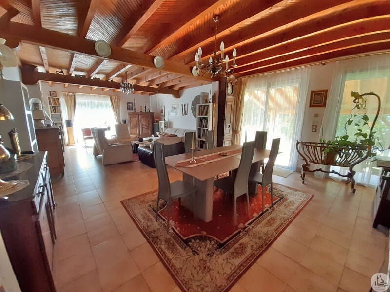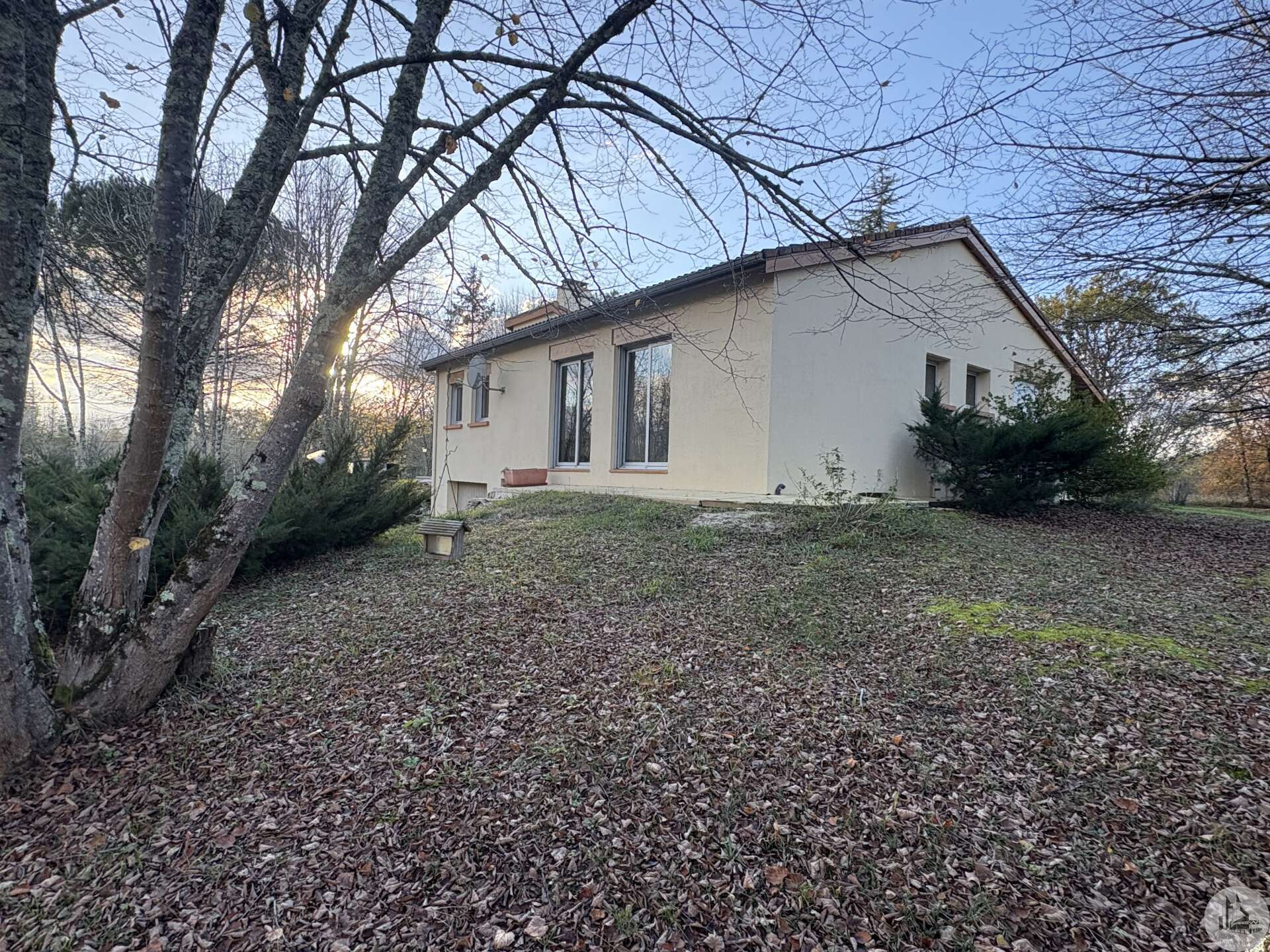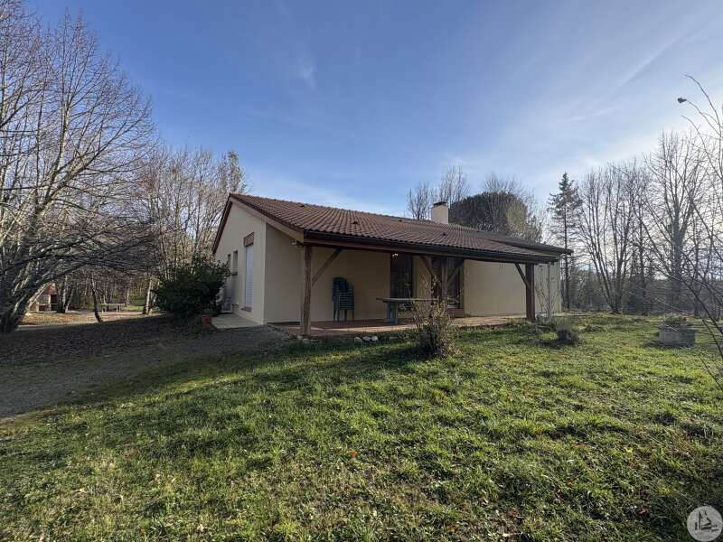 Souterrainwoning, gebouwd in de jaren 80, met zwembad, op een perceel van 45.718 m². De woning, circa 128 m², bestaat uit: Een woon-/eetkamer met open haard, een ingerichte keuken met kookeiland, drie slaapkamers en twee badkamers, elk met een toilet. De kelder, van dezelfde grootte, bestaat uit: Een dubbele garage, een stookruimte, een werkplaats en twee bergingen. Buiten bieden diverse gedeeltelijk overdekte terrassen toegang tot een binnenplaats met parkeergelegenheid en een bosrijk park met een chloorzwembad van 11 x 4,5 meter met een pompruimte. De woning wordt omgeven door weilanden en bossen. De ramen en deuren zijn van aluminium met dubbele beglazing. Er zijn verschillende verwarmingsopties beschikbaar: - Vloerverwarming op olie - Warmtepomp - Omkeerbare airconditioning - Bron