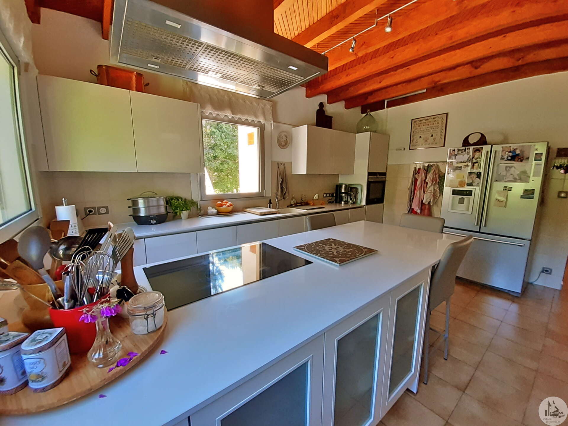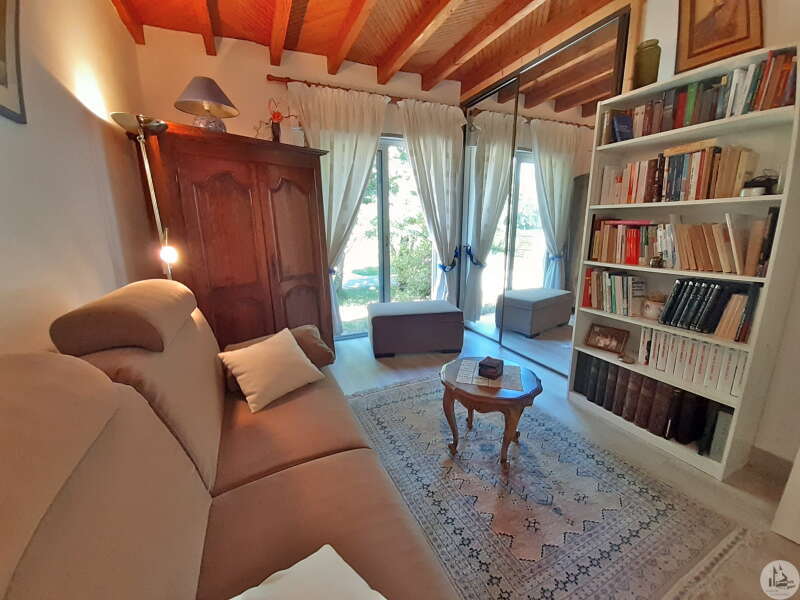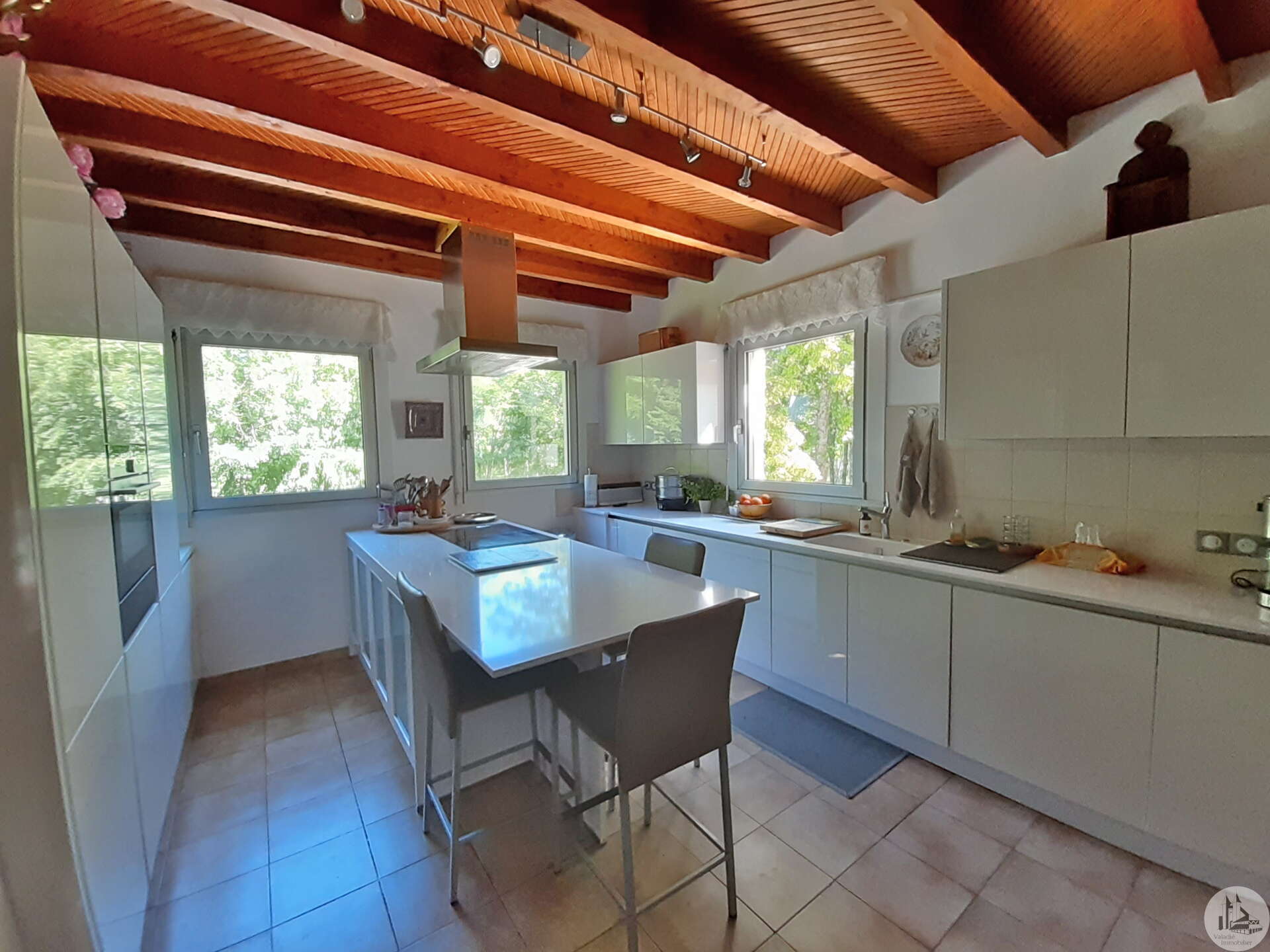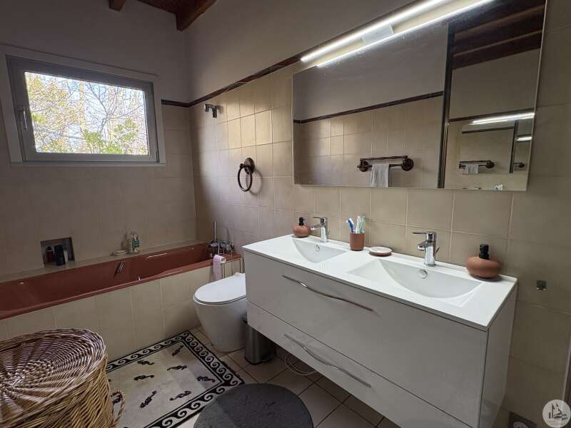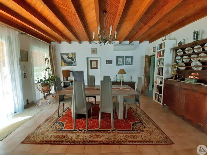Souterrainwoning, gebouwd in de jaren 80, met zwembad, op een perceel van 45.718 m². De woning, circa 128 m², bestaat uit: Een woon-/eetkamer met open haard, een ingerichte keuken met kookeiland, drie slaapkamers en twee badkamers, elk met een toilet. De kelder, van dezelfde grootte, bestaat uit: Een dubbele garage, een stookruimte, een werkplaats en twee bergingen. Buiten bieden diverse gedeeltelijk overdekte terrassen toegang tot een binnenplaats met parkeergelegenheid en een bosrijk park met een chloorzwembad van 11 x 4,5 meter met een pompruimte. De woning wordt omgeven door weilanden en bossen. De ramen en deuren zijn van aluminium met dubbele beglazing. Er zijn verschillende verwarmingsopties beschikbaar: - Vloerverwarming op olie - Warmtepomp - Omkeerbare airconditioning - Bron
