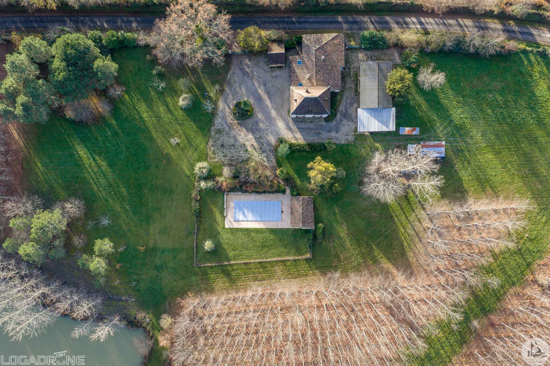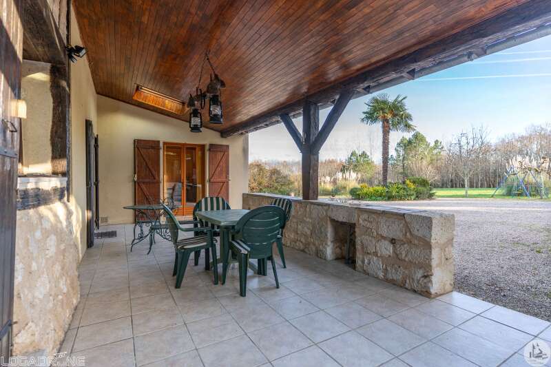 Huis met een woonoppervlakte van 190 m², bestaande uit een overdekt terras van 24 m² dat toegang geeft tot een hal, een keuken van 24 m² en een bijkeuken van 14 m². Op de begane grond bevinden zich tevens drie slaapkamers (11 m², 10 m² en 9 m²), een doucheruimte van 6 m² en een apart toilet. Bovenverdieping: een hal die toegang geeft tot drie slaapkamers (13 m², 12 m² en 10 m²) en een doucheruimte van 7 m². Buiten: een stenen duiventil in gebruik als werkplaats. Een schuur van circa 30 m², een garage van circa 20 m² en een carport van 90 m². Een zwembad van 11 x 5 m met een poolhouse inclusief douche en toilet. Omheind terrein van 31.495 m² met een meer.