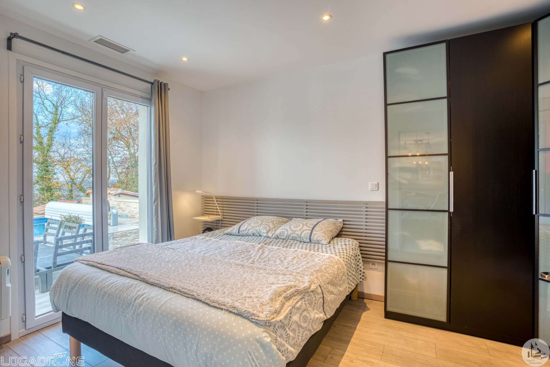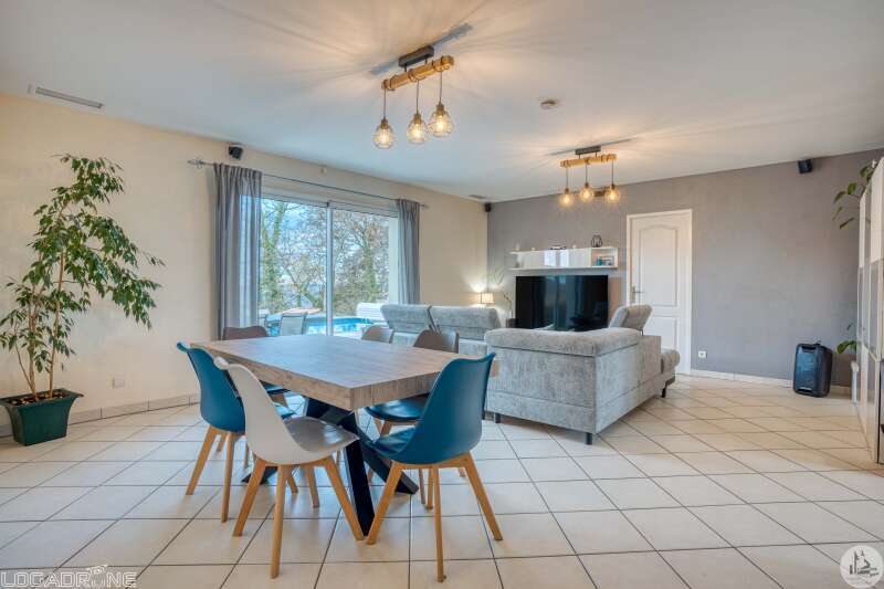 Ontdek het comfort van gelijkvloers wonen in deze lichte woning van bijna 112 m², perfect ontworpen voor het gezinsleven. Bij binnenkomst leidt een hal met inbouwkast naar een prachtige, lichte woonkamer van ruim 31 m², dankzij de grote erker die toegang biedt tot het terras. De volledig uitgeruste keuken van circa 11 m² loopt naadloos over in de woonkamer en creëert zo een uitnodigende en functionele ruimte. Een wasruimte van 3 m² en een kantoor van 5,5 m² completeren dit eerste gedeelte. De master suite van 14,8 m², met eigen badkamer, biedt een ware oase van rust. Vanuit het slaapgedeelte bereikt u drie comfortabele slaapkamers, allen met inbouwkasten, evenals een gezinsbadkamer en een apart toilet. Buiten kunt u op het 32 m² grote terras, beschut door een zonnescherm, optimaal genieten van het uitzicht op het verwarmde, chloorbehandelde zwembad, dat beveiligd is met een rolluik. Voor extra comfort profiteert u van een vrijstaande garage van 35 m² met aanbouw, een tuinschuur, een elektrische poort en een betegelde binnenplaats voor gemakkelijk parkeren. Het volledig omheinde terrein van 1.890 m² omvat tevens een mooie jeu de boules-baan, perfect om te ontspannen met familie en vrienden. Een complete woning, perfect onderhouden en klaar om uw speciale momenten te verwelkomen.