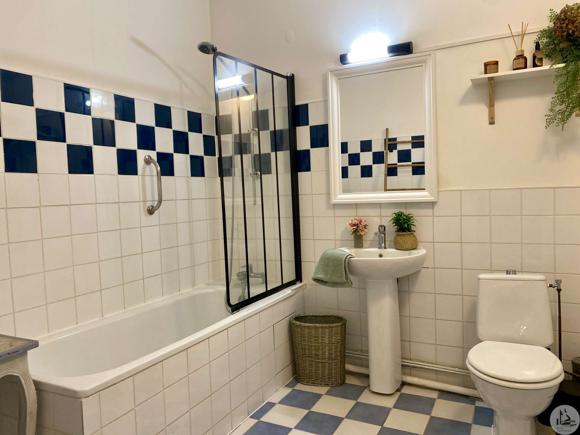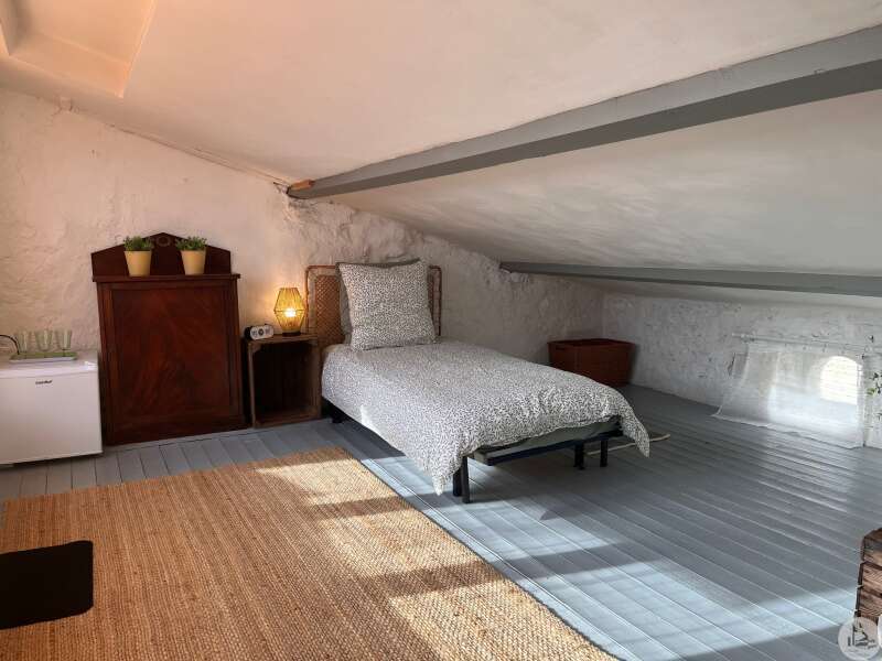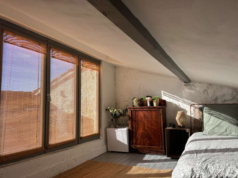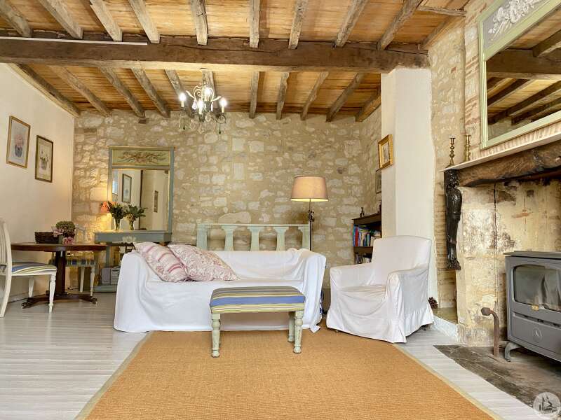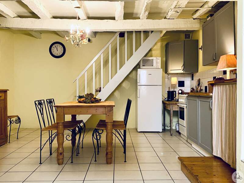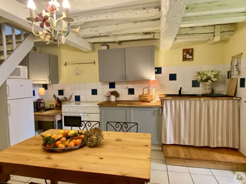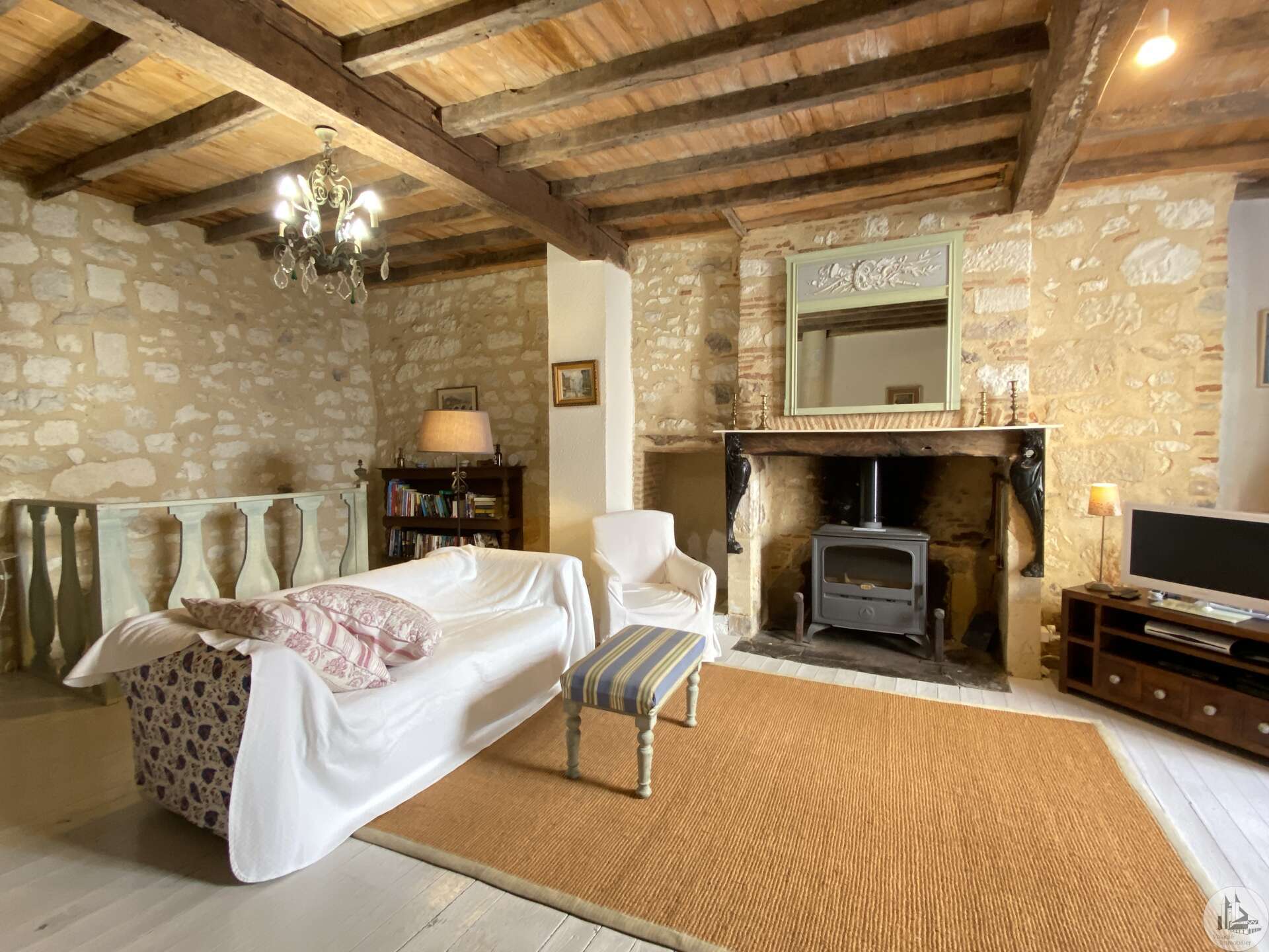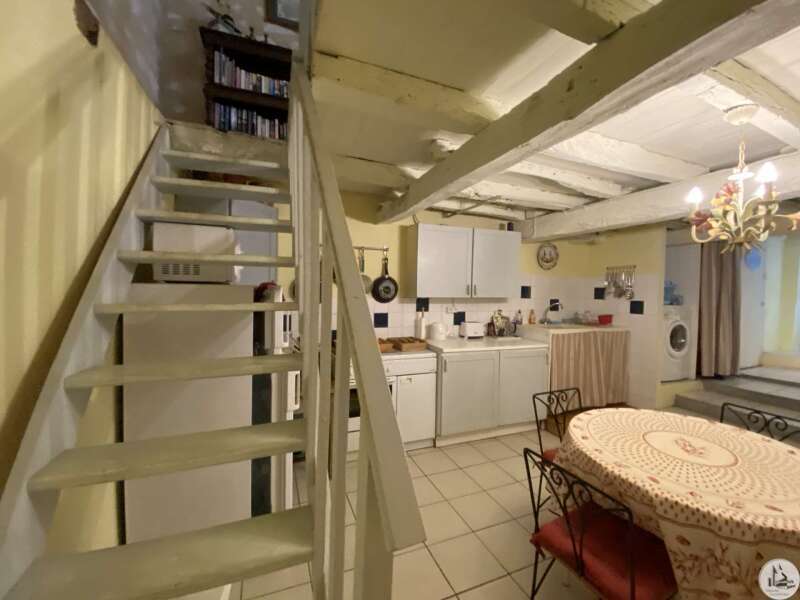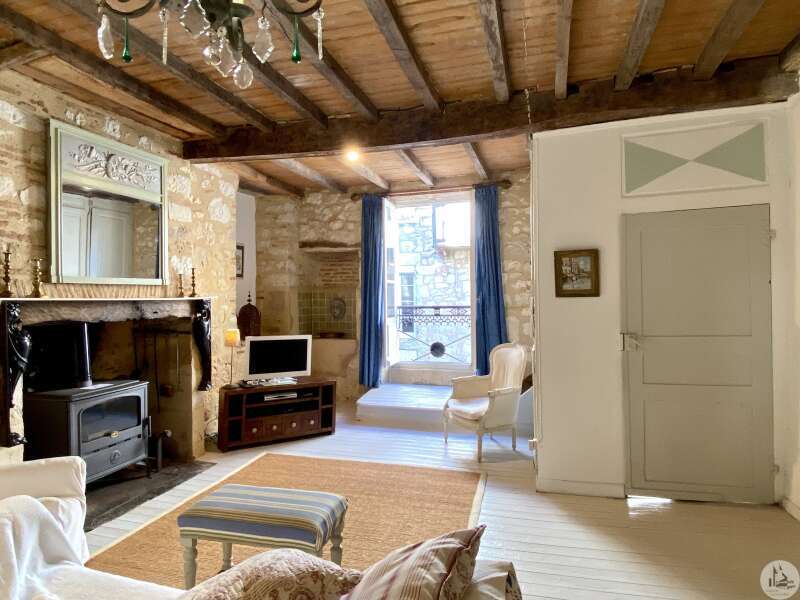 Deze charmante 13e-eeuwse dorpswoning, gelegen in het hart van de heuvelachtige vesting Monflanquin, is een van de mooiste dorpen van Frankrijk. -Begane grond- De stenen woning biedt op de begane grond een eenvoudige keuken, een gastentoilet en een trap naar de woonkamer op de eerste verdieping. -Eerste verdieping- Entree, gevolgd door een tweede trap naar de woonkamer met originele houten vloer, open haard met houtkachel, zichtbare stenen muren en balken. Een Frans balkon en een houten inbouwkast maken het geheel compleet. -Tweede verdieping- Op de eerste verdieping bevindt zich een ruime slaapkamer met zeegras vloerbedekking, zichtbare stenen muren en balken, en een en-suite badkamer met ligbad/douche, wastafel en toilet. Er is ook een handdoekdroger aanwezig. - 3e verdieping - Trap vanuit de slaapkamer naar de bovenverdieping Op de bovenste verdieping bevindt zich een zolderkamer met een schuin mansardeplafond, die als extra slaapkamer kan dienen. Via deze ruimte is er toegang tot het dakterras met uitzicht over het landschap. --De woning wordt gemeubileerd verkocht-- Dakterras van ca. 15 m² --Gratis en gemakkelijk parkeren in de buurt. Let op: Er zijn drie steile trappen in de woning. De verwarming wordt verzorgd door een houtkachel in de woonkamer, de badkamer heeft een handdoekdroger. Er is geen centrale verwarming. De ramen zijn enkelglas. De tweede slaapkamer op de bovenste verdieping is eigenlijk een 'extra' slaapkamer voor incidenteel gebruik of voor een kind, aangezien het mansardeplafond laag en schuin is. De toegang tot het dakterras is ook via deze kamer, door een lage deur. De onroerendgoedbelasting (taxe foncière) voor het jaar bedraagt 476 euro. Het huis is aangesloten op de riolering en het waterleidingnet (tout à l'égout). Het huis is circa 89 m² groot en is verdeeld over 4 verdiepingen: Begane grond: Keuken - entree Voordeur (witte deur links) en vervolgens naar de 1e verdieping 1e verdieping: woonkamer met houtkachel 2e verdieping: Slaapkamer met badkamer 3e verdieping: Kleine slaapkamer (voor incidenteel gebruik), open ruimte met toegang tot het dakterras Monflanquin, een prachtig middeleeuws dorp op een heuveltop uit 1256, staat bekend als "een van de mooiste dorpen van Frankrijk" en biedt een adembenemend uitzicht over het glooiende landschap. Veel onafhankelijke restaurants, cafés en boetiekjes bevinden zich op loopafstand van de woning, evenals de wekelijkse boerenmarkt. De rivierstad Villeneuve-sur-Lot ligt op 18 km afstand en Bergerac, Dordogne en de luchthaven daarvan liggen op ongeveer 40 minuten rijden met vluchten naar het Verenigd Koninkrijk, België en Nederland. Agen ligt op 40 minuten afstand. De grote steden Bordeaux en Toulouse liggen op minder dan 2 uur rijden. Een perfecte pied-à-terre, ideaal voor een eerste aankoop of als fantastische vakantiewoning.