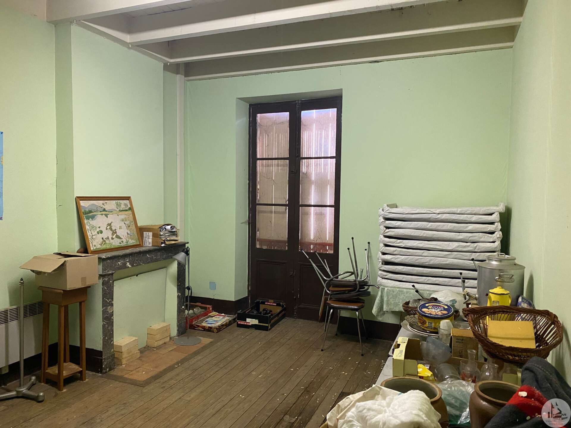 Oude dorpswoning, rijtjeshuis, als volgt ingedeeld: - Begane grond: grote, diepe, open ruimte (76 m²) met keuken en toilet. Deze ruimte heeft een etalage en kan eenvoudig weer als winkel worden gebruikt. - Eerste verdieping (twee trappen: één in de hoofdruimte en een aparte trap die toegang biedt tot de eerste verdieping vanuit een achterliggende steeg): Overloop (21 m²), hal (8,25 m²), drie kamers zonder ramen (6,8, 11,1 en 12,9 m²), een trappenhuis (naar de zolder) en een toilet. Renovatiewerkzaamheden vereist.