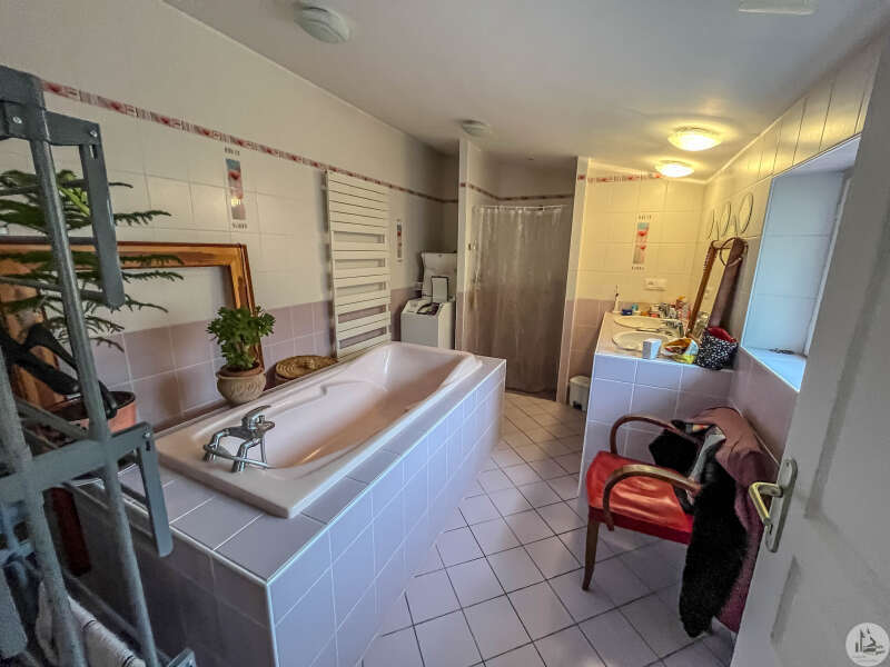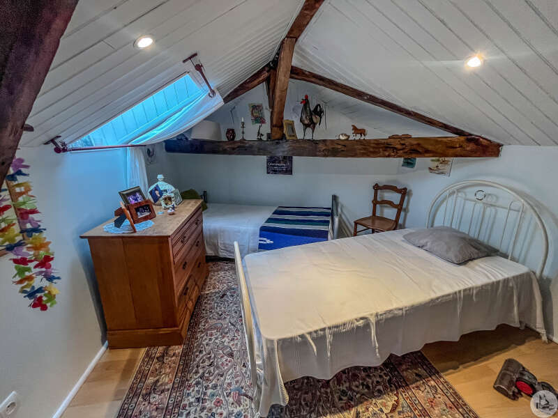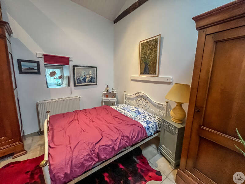 Gerestaureerd en zorgvuldig onderhouden stenen huis, bestaande uit een ingerichte keuken die uitkomt op de woonkamer, een hal, twee slaapkamers (waarvan één met een inbouwkast), een kleedkamer of kantoor (bereikbaar vanuit een van de slaapkamers), een badkamer (dubbele wastafel, douche, bad) en een toilet. Terras (met pergola) en betegelde binnenplaats. PVC-dubbelglas (met uitzondering van de aluminium openslaande deuren). Verwarming via airconditioning (lucht-water warmtepomp). Mechanische ventilatie. Houtkachel. Plus 3 kW zonnepanelen. Omheinde tuin met een verwarmd chloorzwembad (9 x 4,5 m). Drie parkeerplaatsen.
