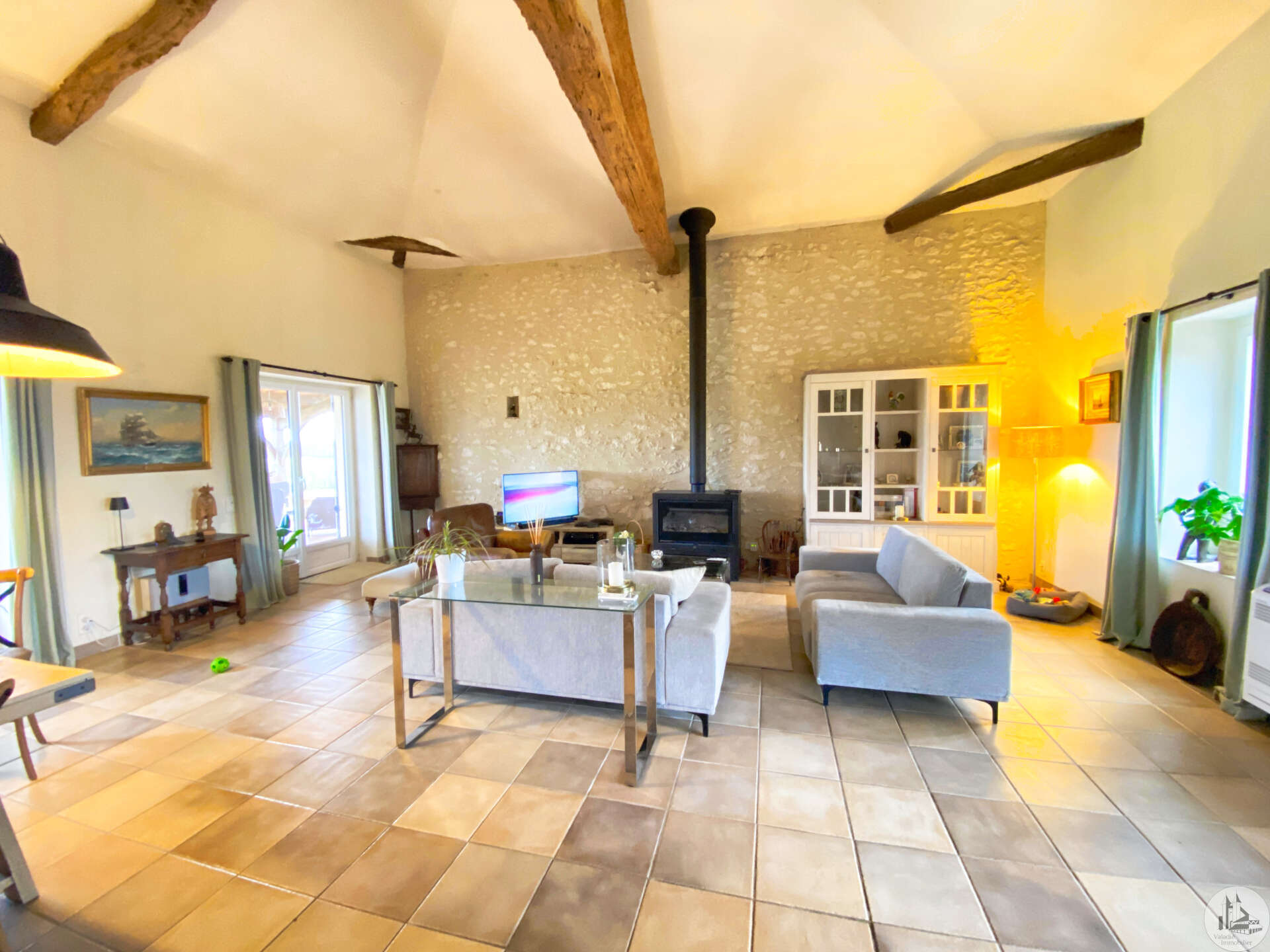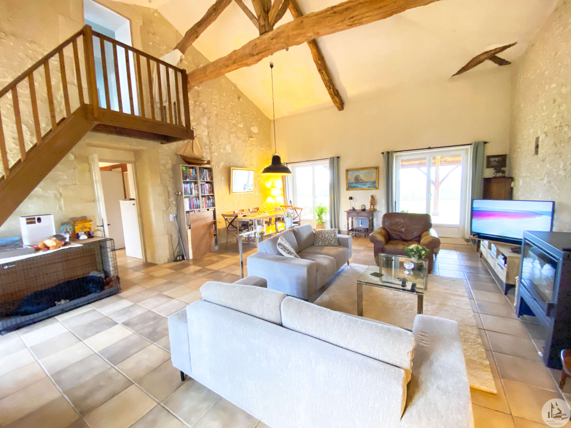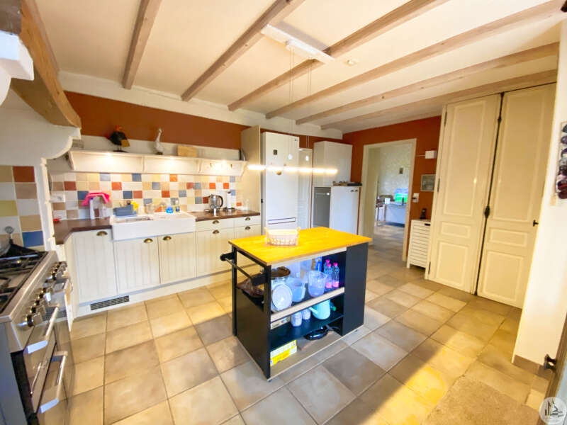 Een woning van circa 112 m² woonoppervlak, die de mogelijkheid biedt tot gelijkvloers wonen, comfortabel en zeer licht, bestaande uit: Op de begane grond: - Een entree die toegang geeft tot een keuken van circa 18,6 m², met tegelvloer, voorzien van boven- en onderkasten en wandkasten, en uitgerust met een fornuis, afzuigkap, spoelbak en vaatwasser. - Een woonkamer van circa 43,5 m², met tegelvloer en een plafondhoogte van circa 4,8 m; een houtkachel is in 2023 geplaatst en twee openslaande deuren geven toegang tot een overdekt terras van circa 50 m². - Een doucheruimte van circa 6,7 m², met tegelvloer en -wanden, wastafelmeubel, handdoekradiator, inloopdouche, hangend toilet en mechanische ventilatie. - Een slaapkamer van circa 9,7 m², met tegelvloer en een lange kledingkast. Bovenverdieping: - Een overloop/kantoor van circa 5,8 m², parketvloer, een dakraam. - Een slaapkamer van circa 10,4 m², houten vloer, een dakraam. - Een slaapkamer van circa 13,7 m² met een aangrenzende doucheruimte van circa 3,6 m² (douchecabine, wastafel). Aanvullende informatie: - Onroerendezaakbelasting € 1.783 (2025) - Verwarming via een warmtepomp met radiatoren. - PVC-ramen met dubbel glas en houten luiken, geplaatst in 2023. - Dak vernieuwd in 2020 - Septische installatie voldoet niet aan de voorschriften. - Zonnepanelen voor eigen energieverbruik. Een bewoonbare aanbouw van circa 20 m² (vloeroppervlak), gebouwd in 1998, bestaande uit: - Een entree die toegang geeft tot een woonkamer met kitchenette en tegelvloer. - Een doucheruimte van circa 2,7 m² met betegelde vloer en wanden, toilet, douche en wastafel. - Opbergkasten onder de trap. - Een slaapkamer op de mezzanine. (Verwarming via warmtepomp, dubbelglas houten ramen). Buiten: - Een polyester zwembad (8m x 4,5m) gebouwd in 2022, chloorbehandeld, met een vlakke bodem van 1,5 m diep. Terras van travertin rondom het zwembad. Elektrische afdekking. - Een carport voor twee auto's, een aangrenzende berging van circa 6,3 m² en de ruimte voor de zwembadapparatuur. - Een schuur/garage van circa 17,5 m² met betonnen vloer. - Een waterput met pomp voor het besproeien van de tuin. - Circa 3000 m² grond met parkeergelegenheid en een toegangspoort.